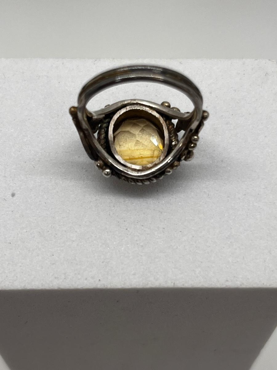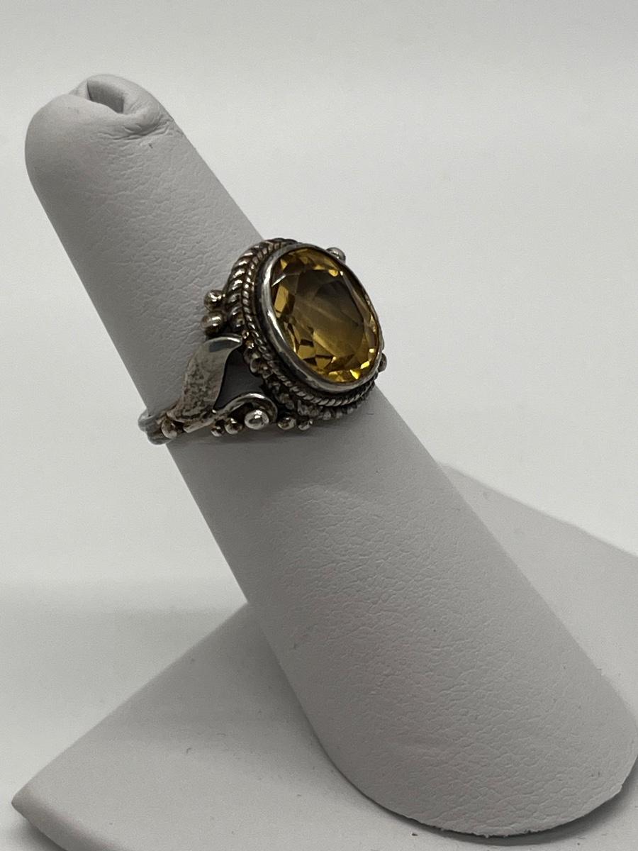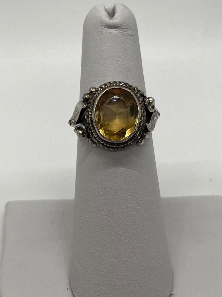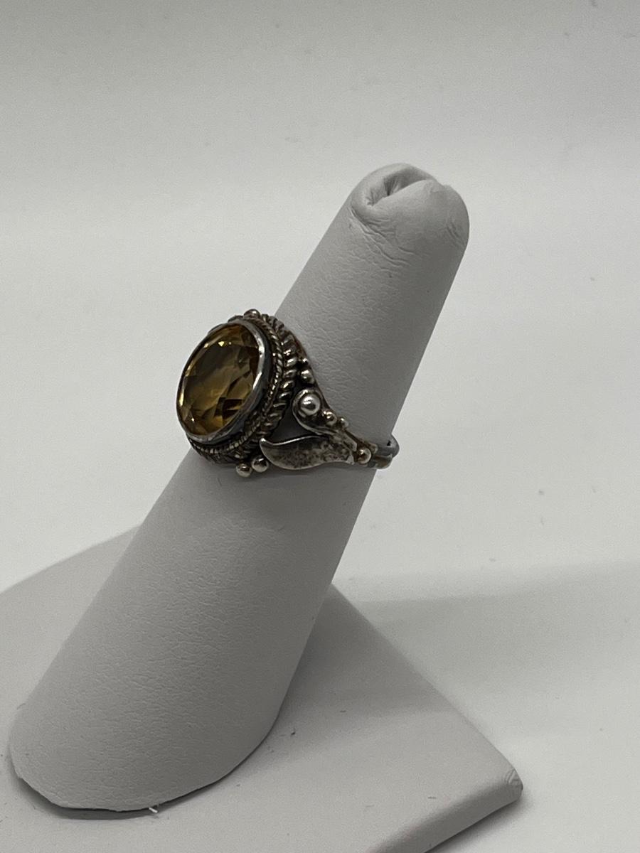 LOT 199J: Sterling Silver and Faceted Oval Citrine Vintage Size 5 Ring