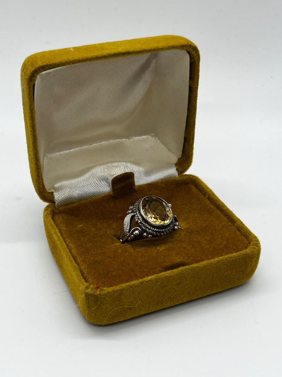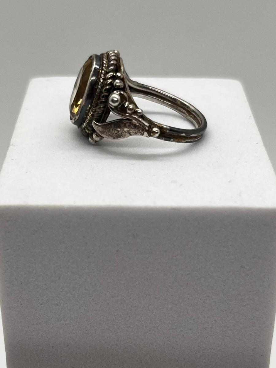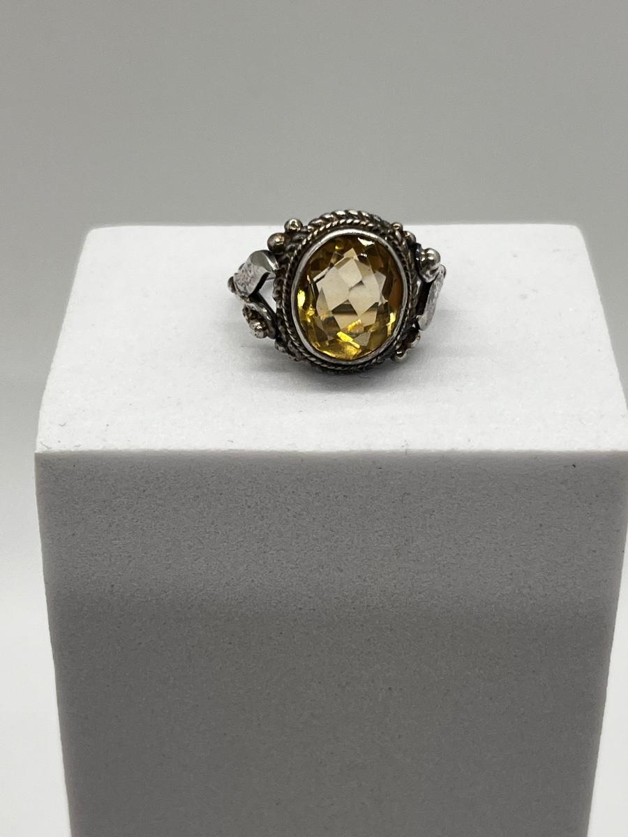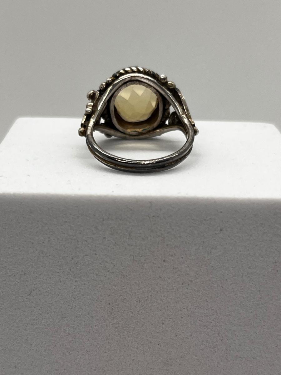 LOT 199J: Sterling Silver and Faceted Oval Citrine Vintage Size 5 Ring