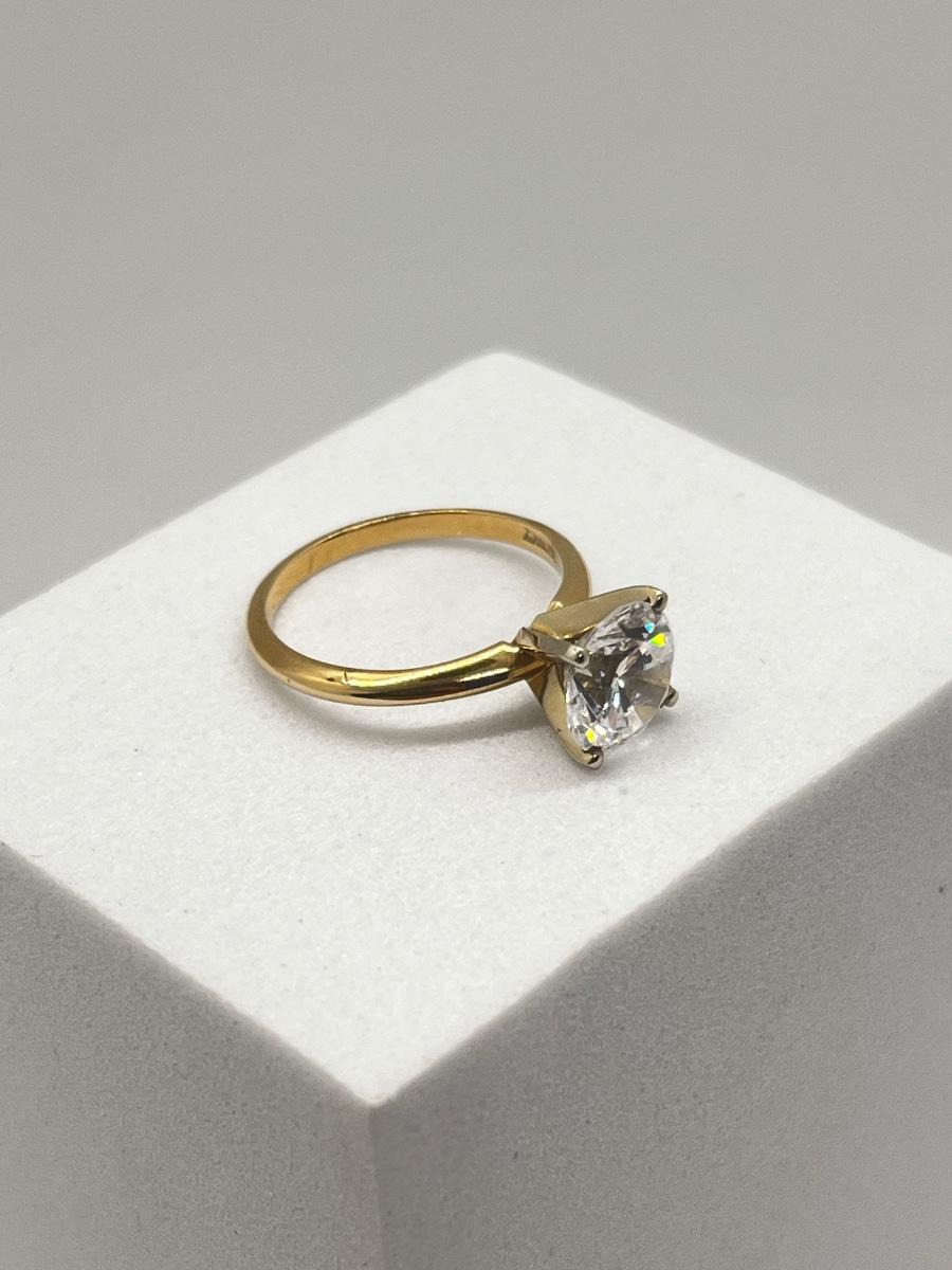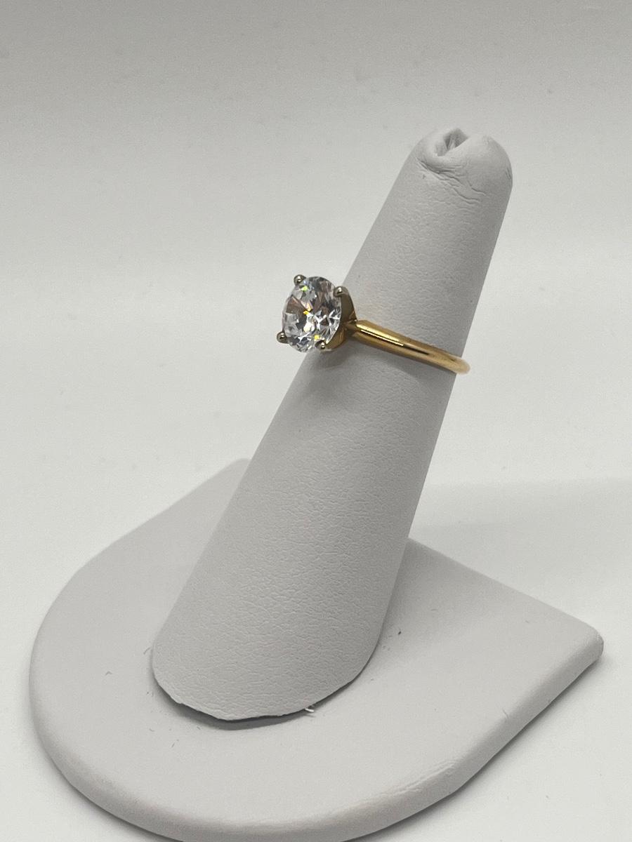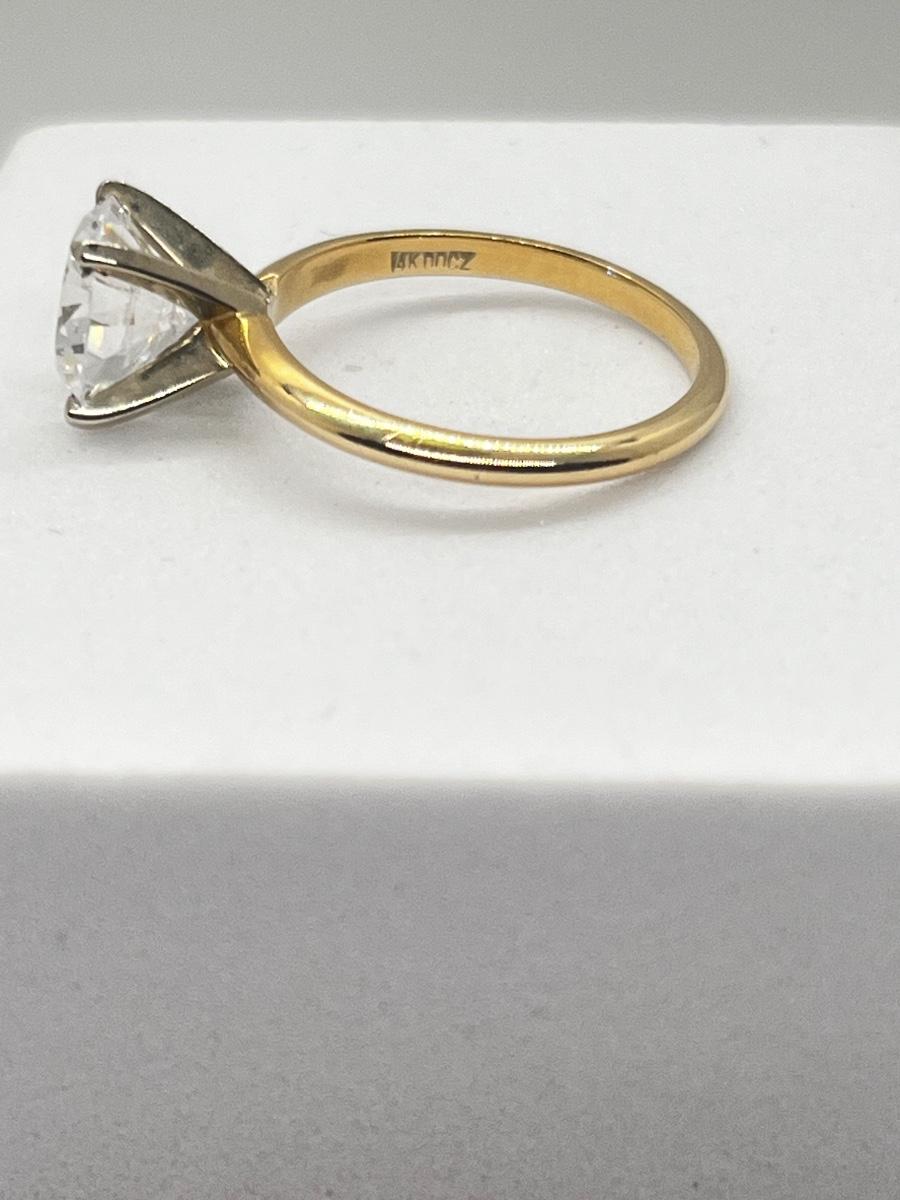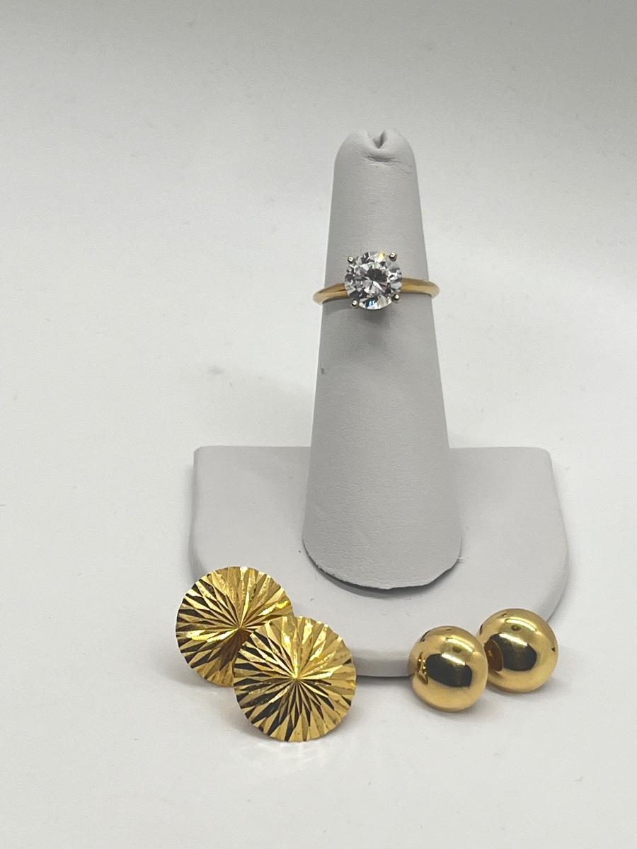 LOT 205J: 14K Diamonique Cubic Zirconia Size 5 Ring + Two Pairs 14K Post Earrings