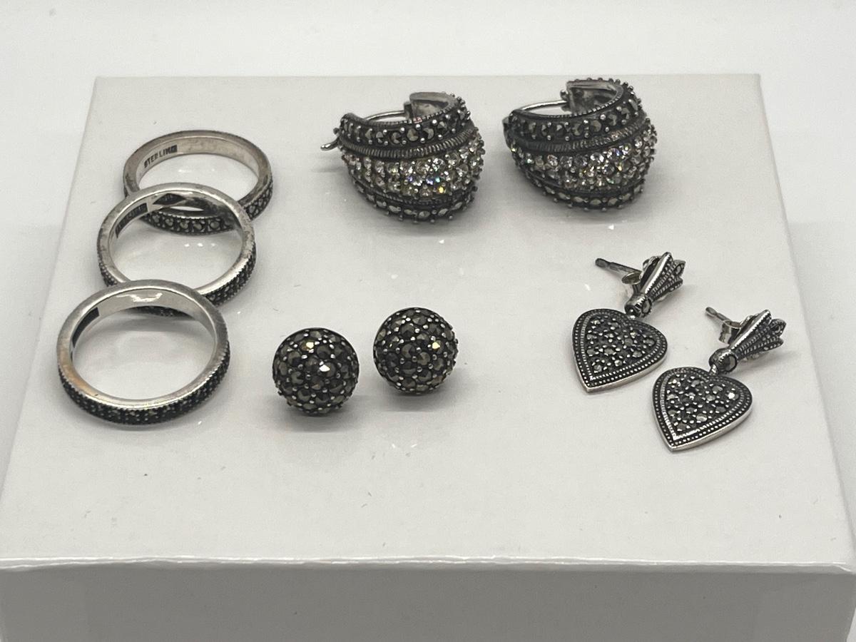 LOT 206J: Sterling Silver and Marcasite Vintage Jewelry Collection