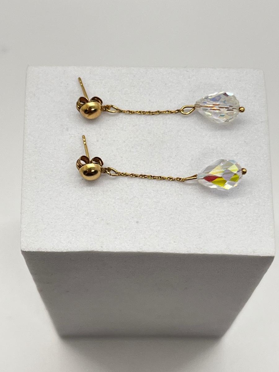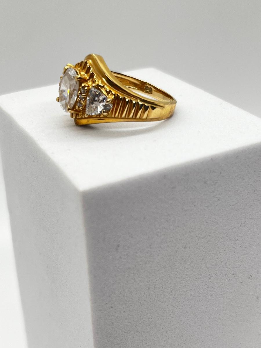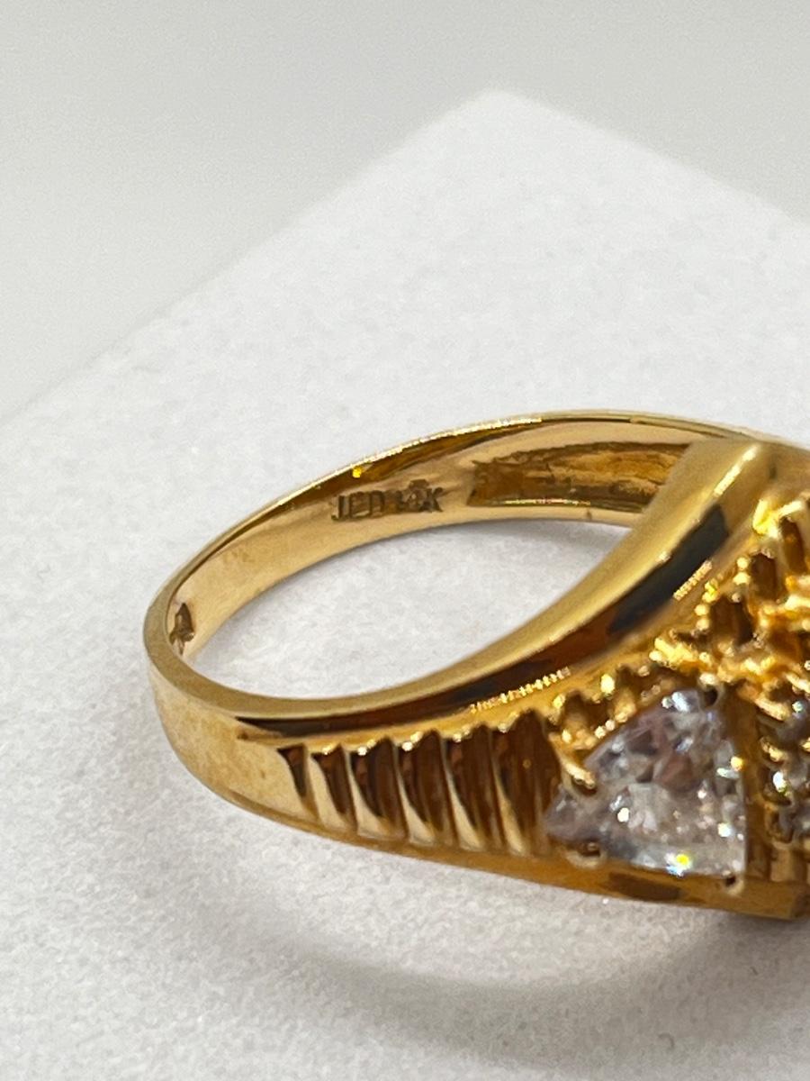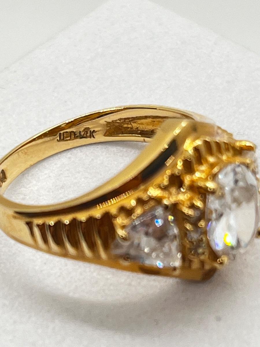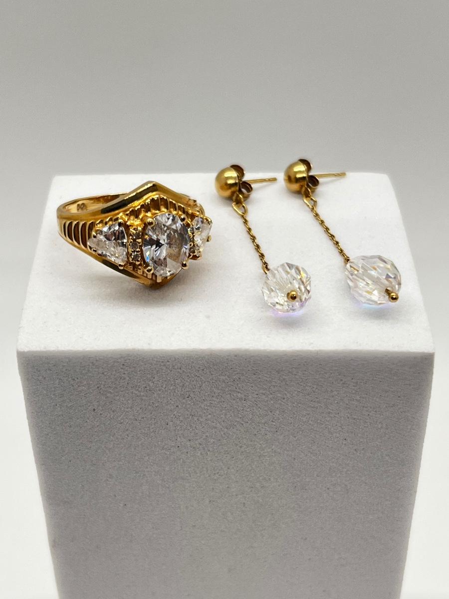 LOT 211J: 14K Diamonique Cubic Zirconia Size 6 Ring + 14K Crystal Dangle Earrings