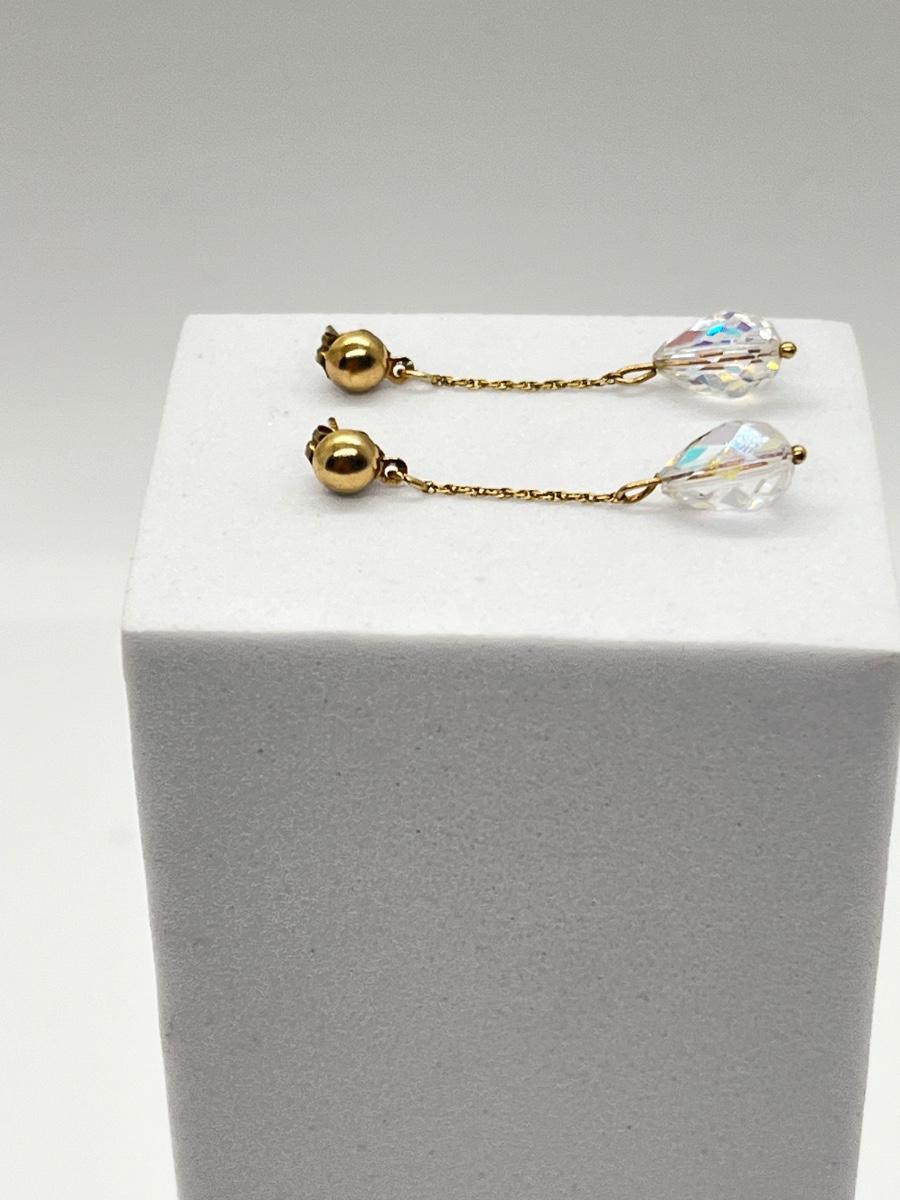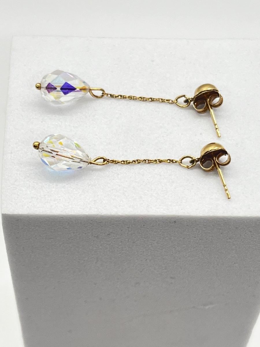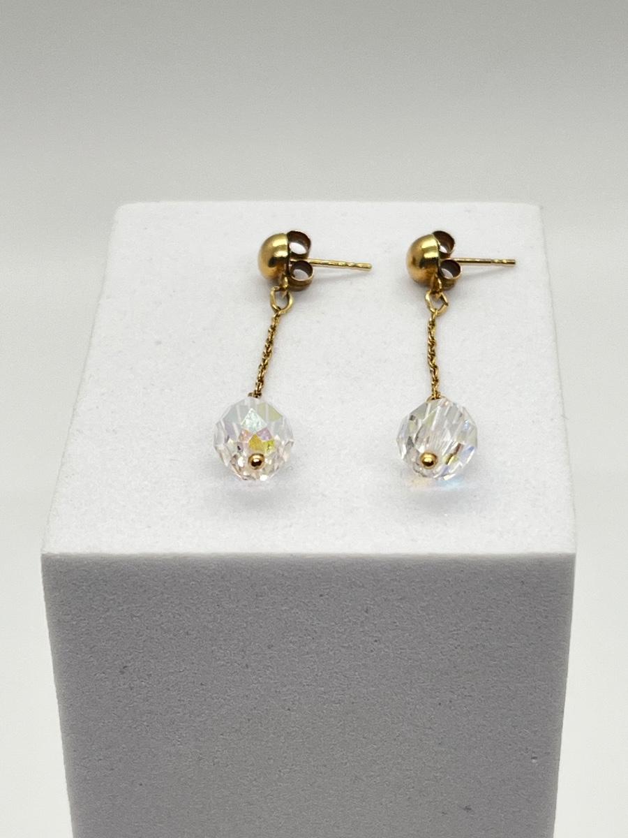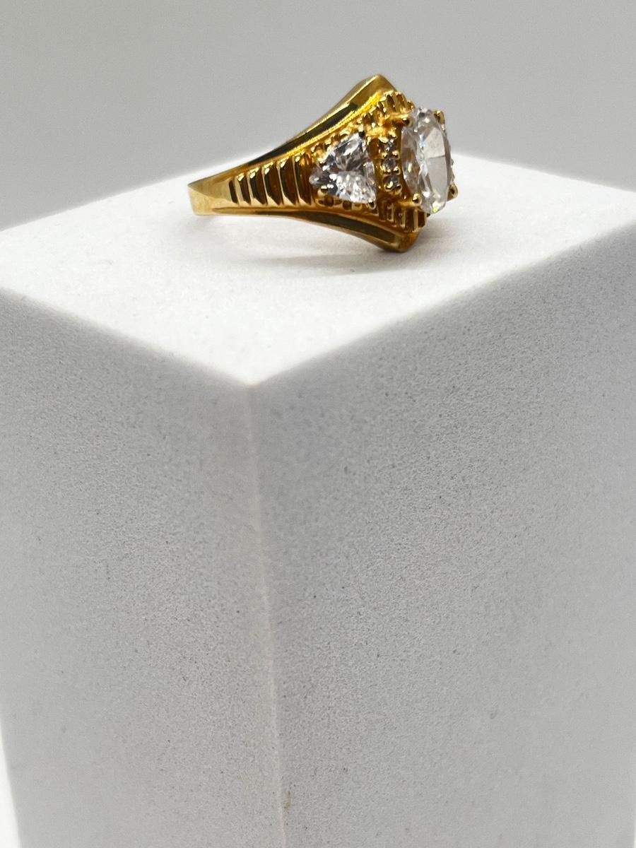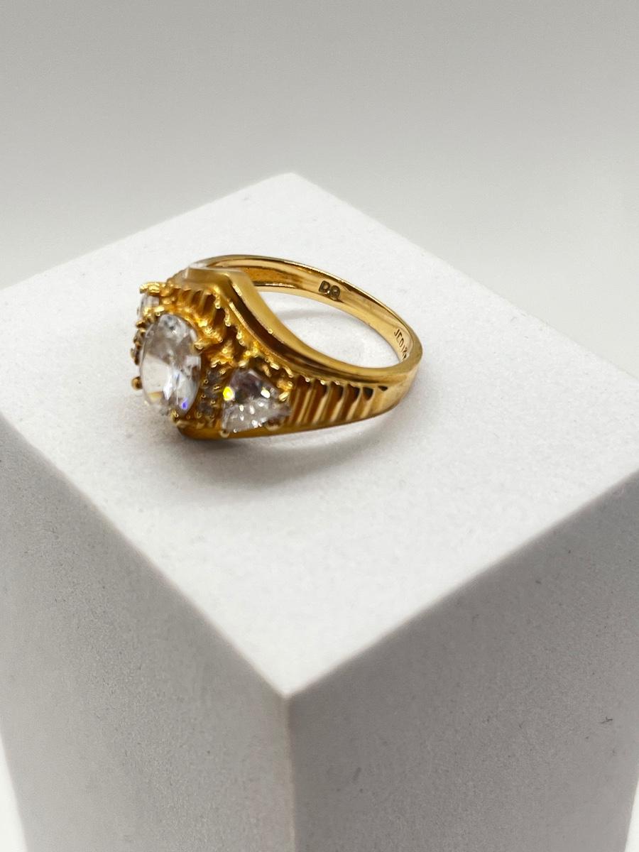 LOT 211J: 14K Diamonique Cubic Zirconia Size 6 Ring + 14K Crystal Dangle Earrings