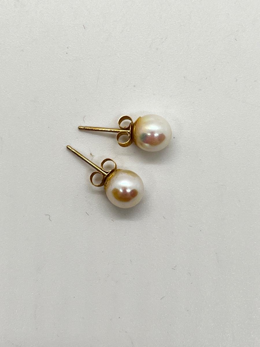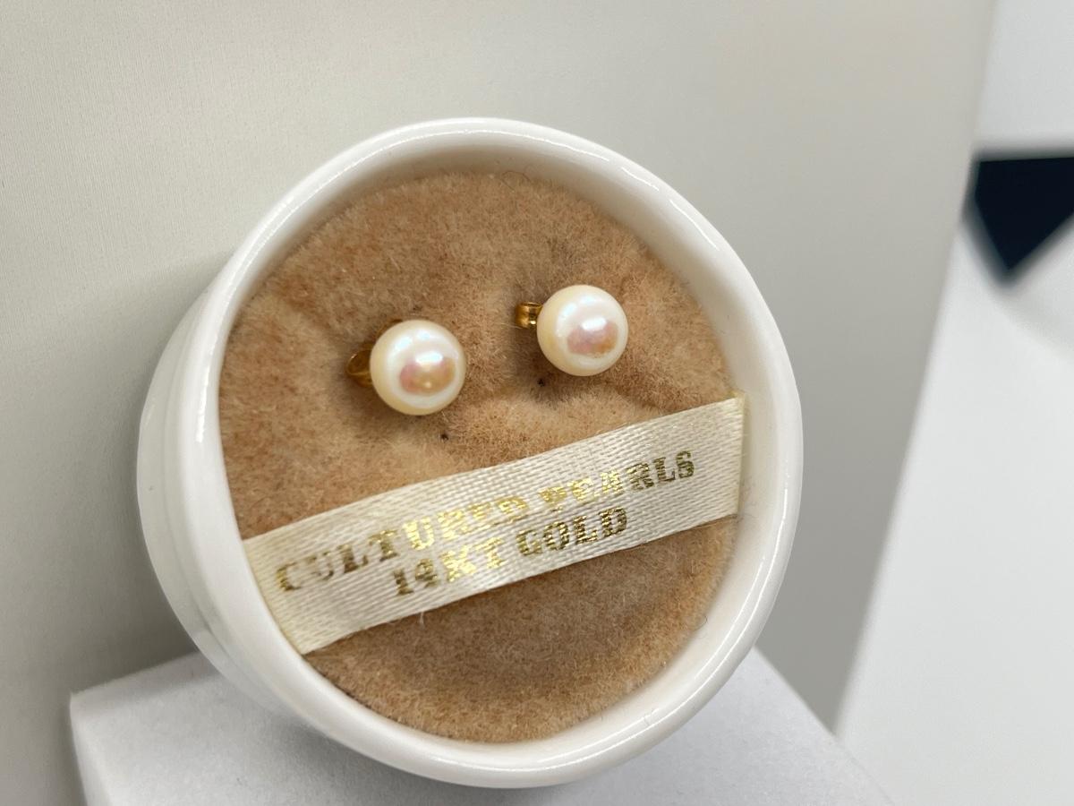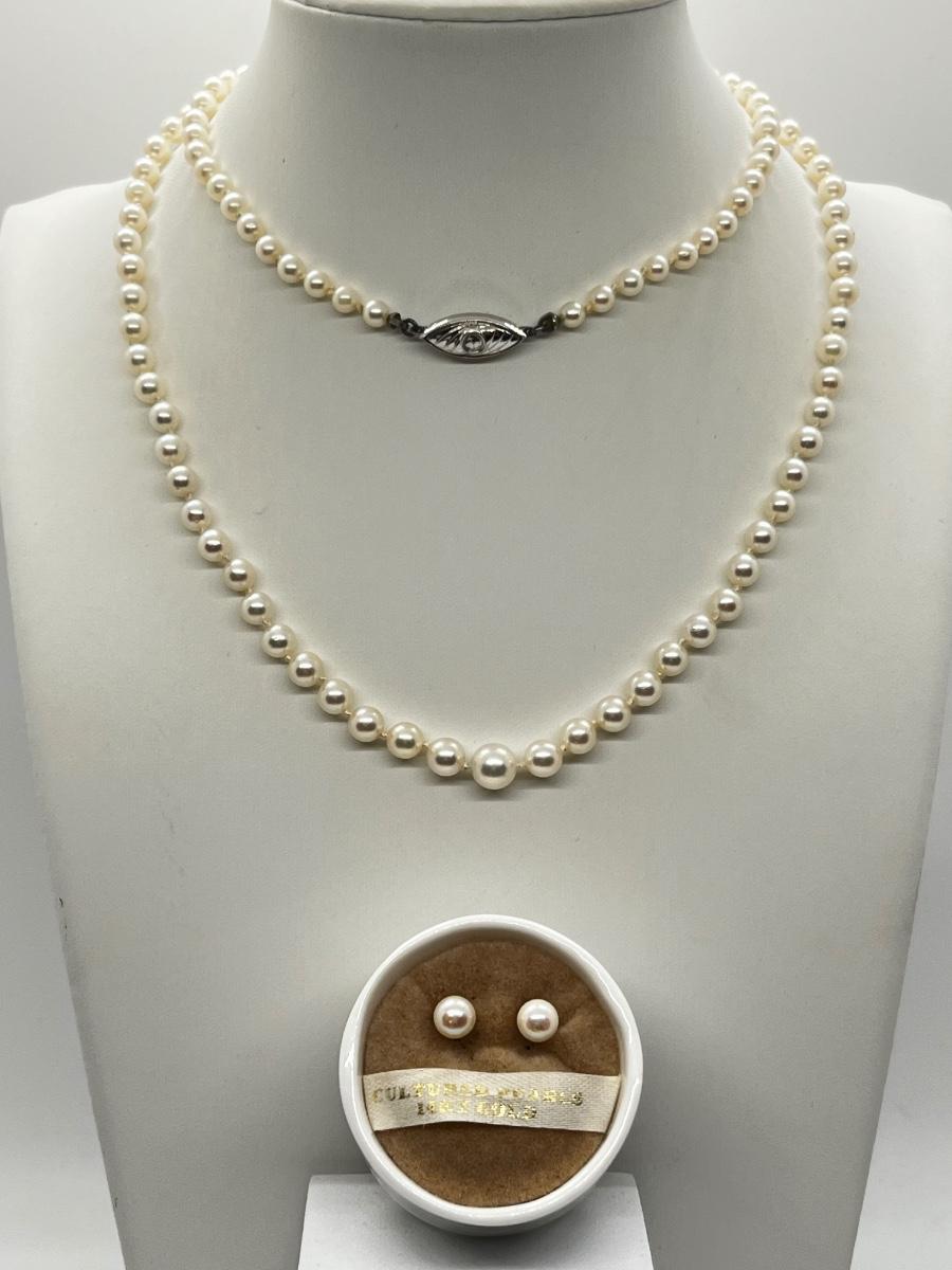 LOT 222J: Vintage Cultered Pearls with 14K Clasp + 14K Post Cultered Pearl Earrings