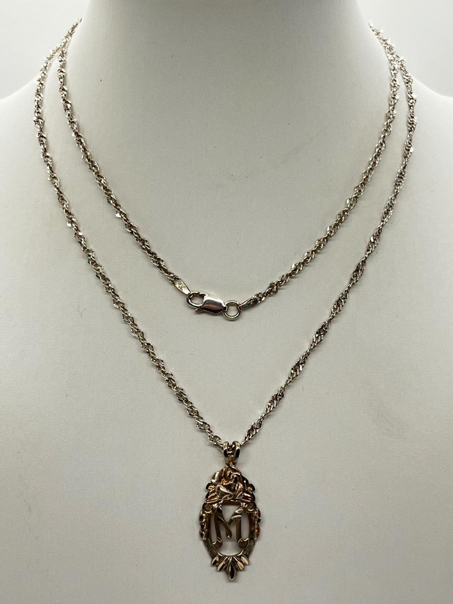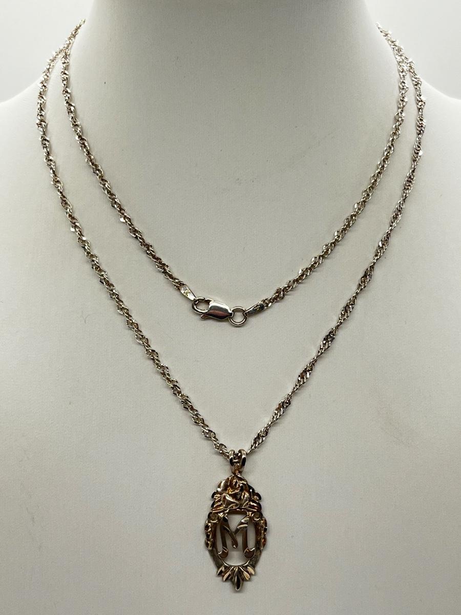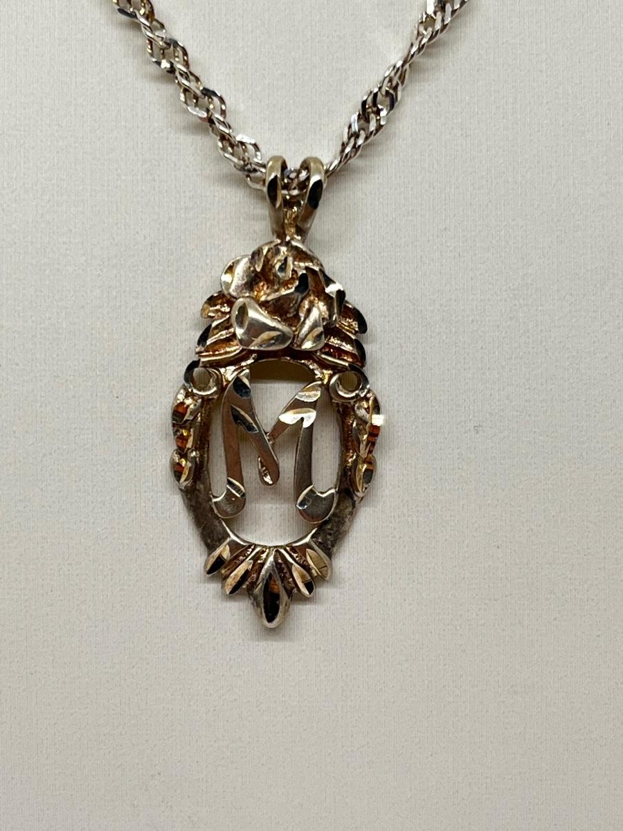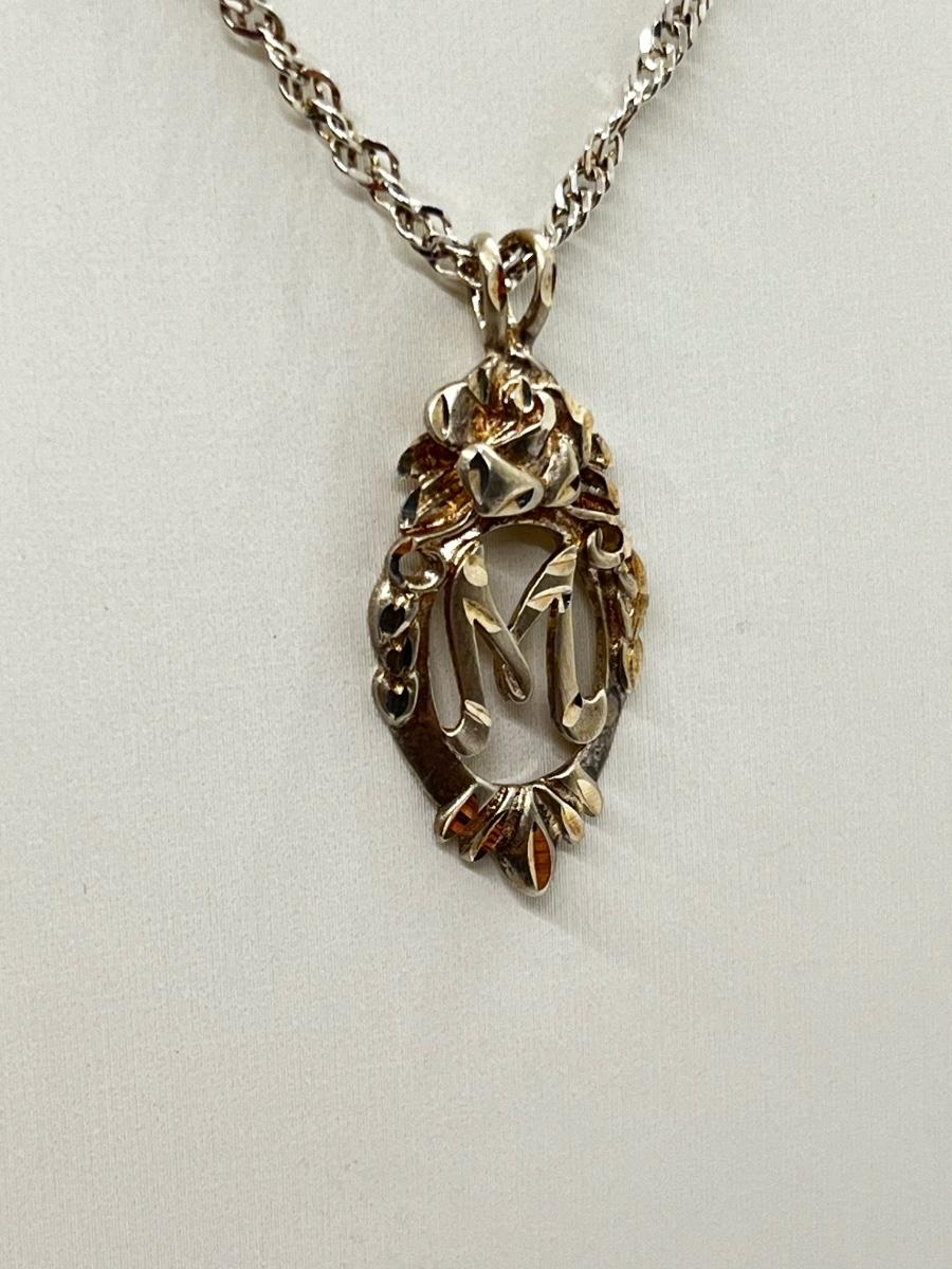 LOT 223J: Sterling Silver Vintage "M" Initial Pendant Necklace