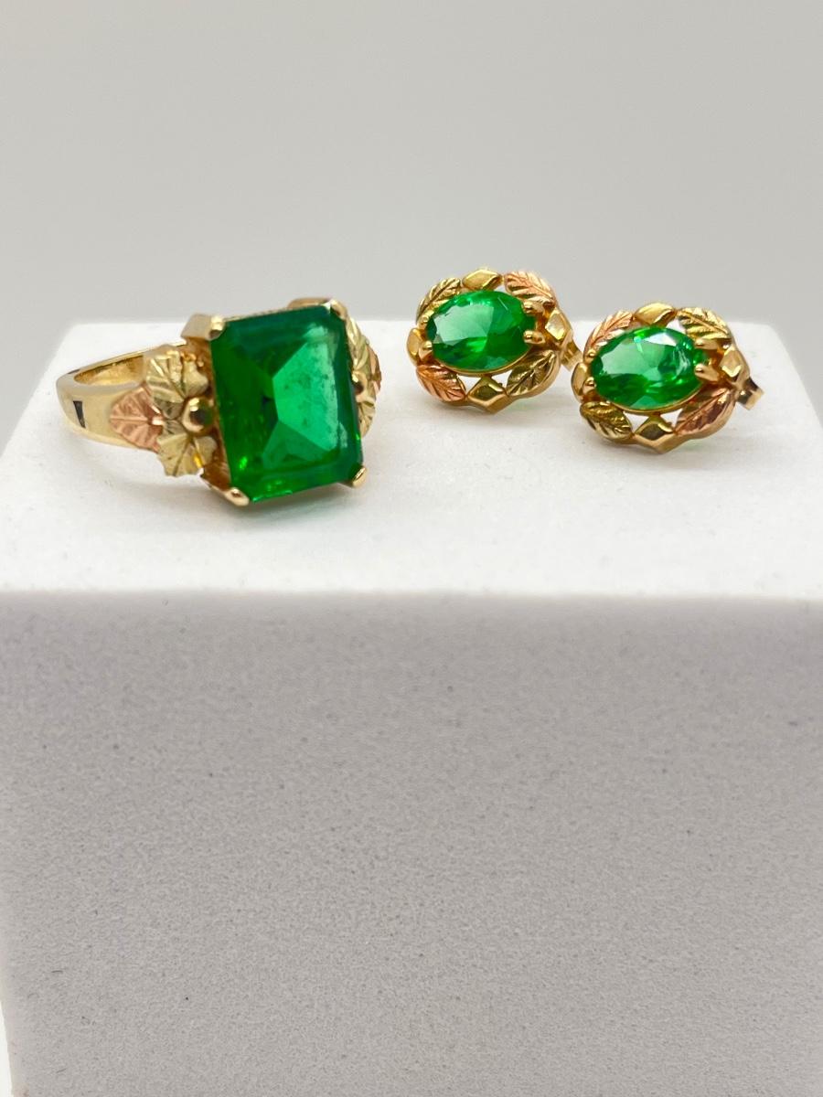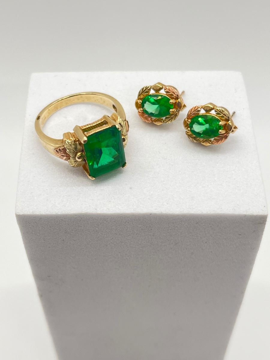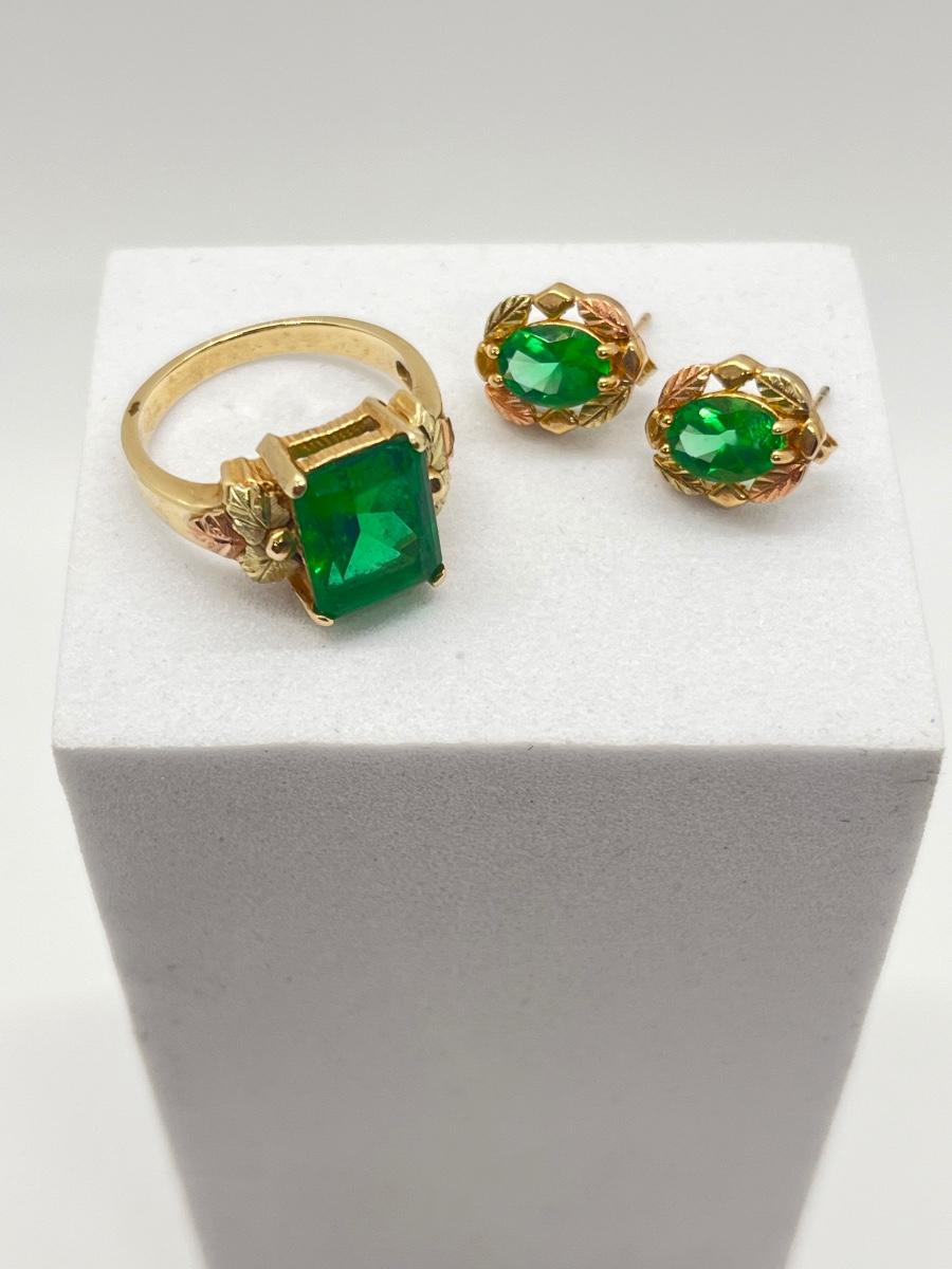 LOT 231J: 10K Simulated Emerald Ring and Earrings