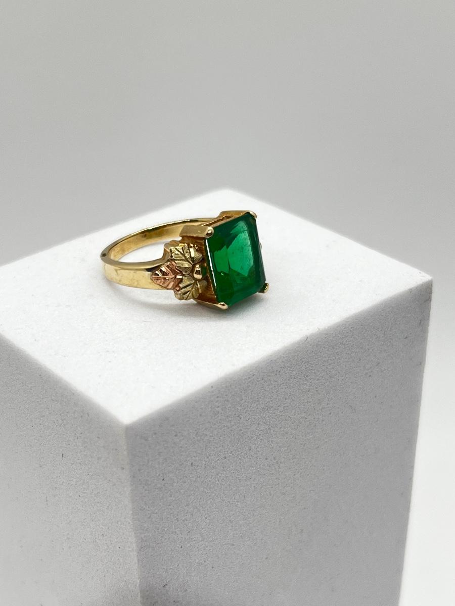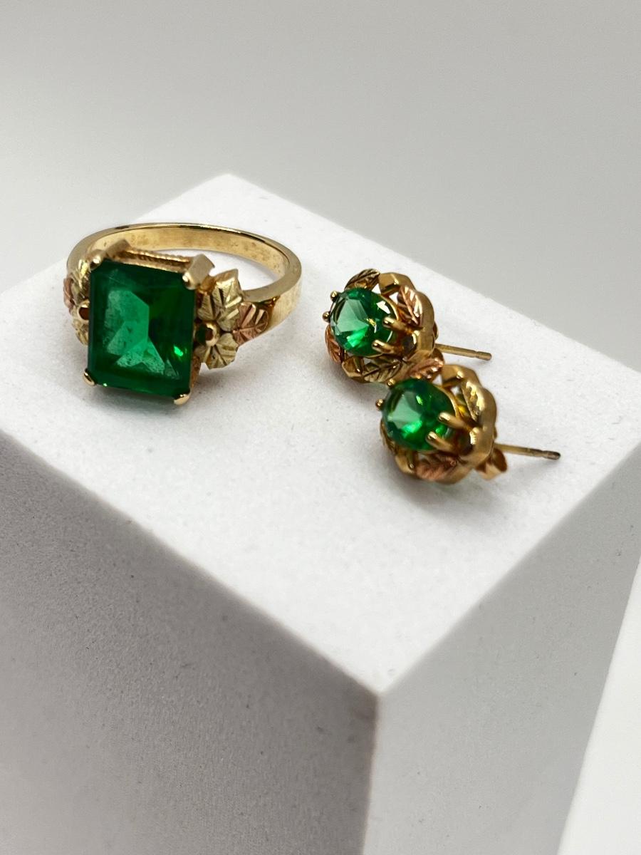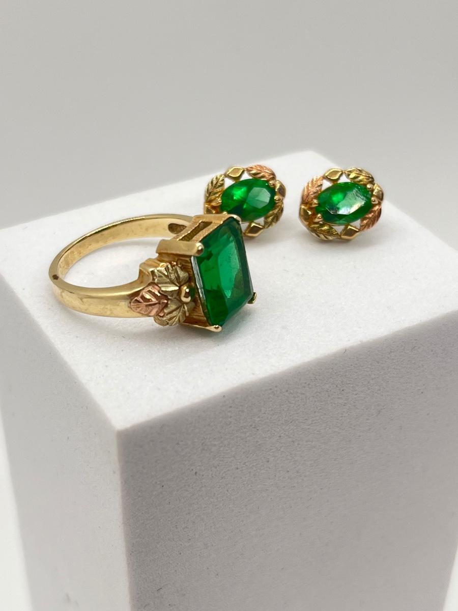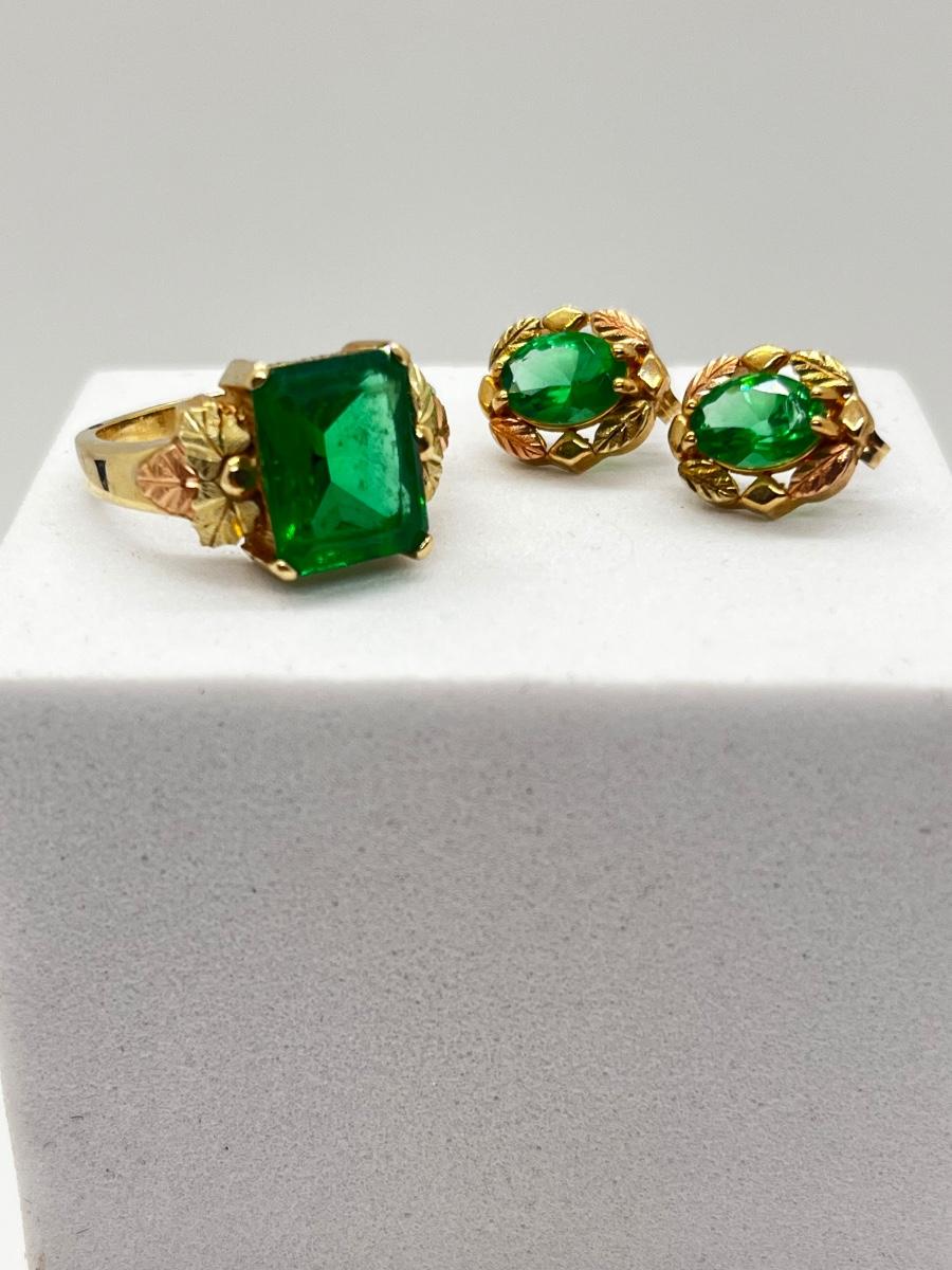 LOT 231J: 10K Simulated Emerald Ring and Earrings