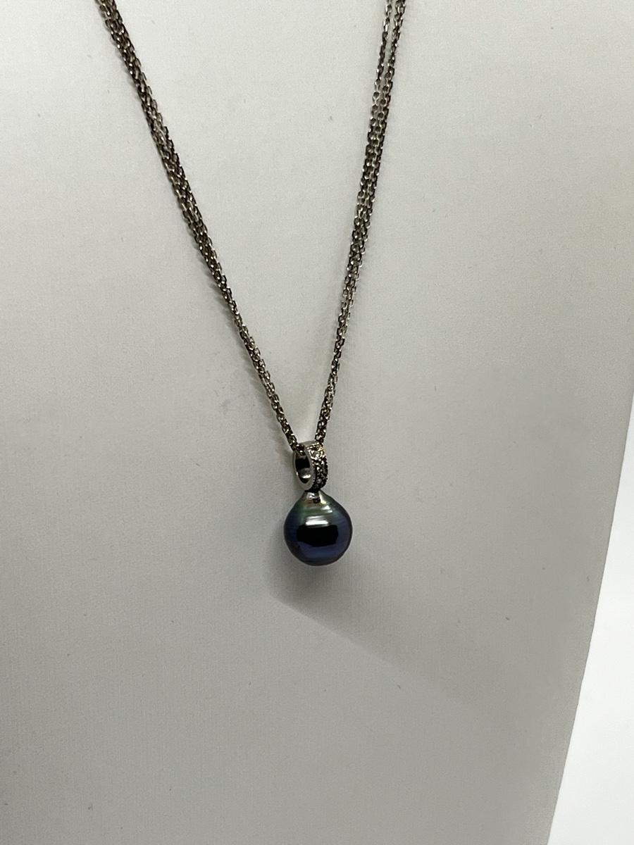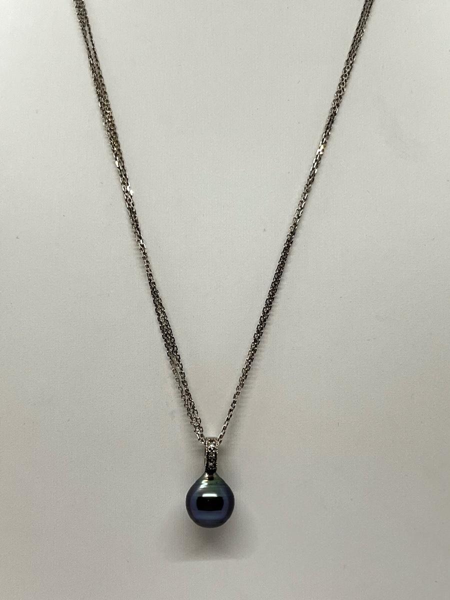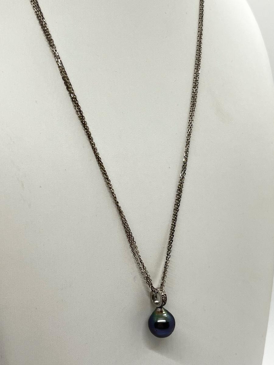 LOT 284J: Sterling Silver Double Chain Tahitian Pearl Pendant Necklace