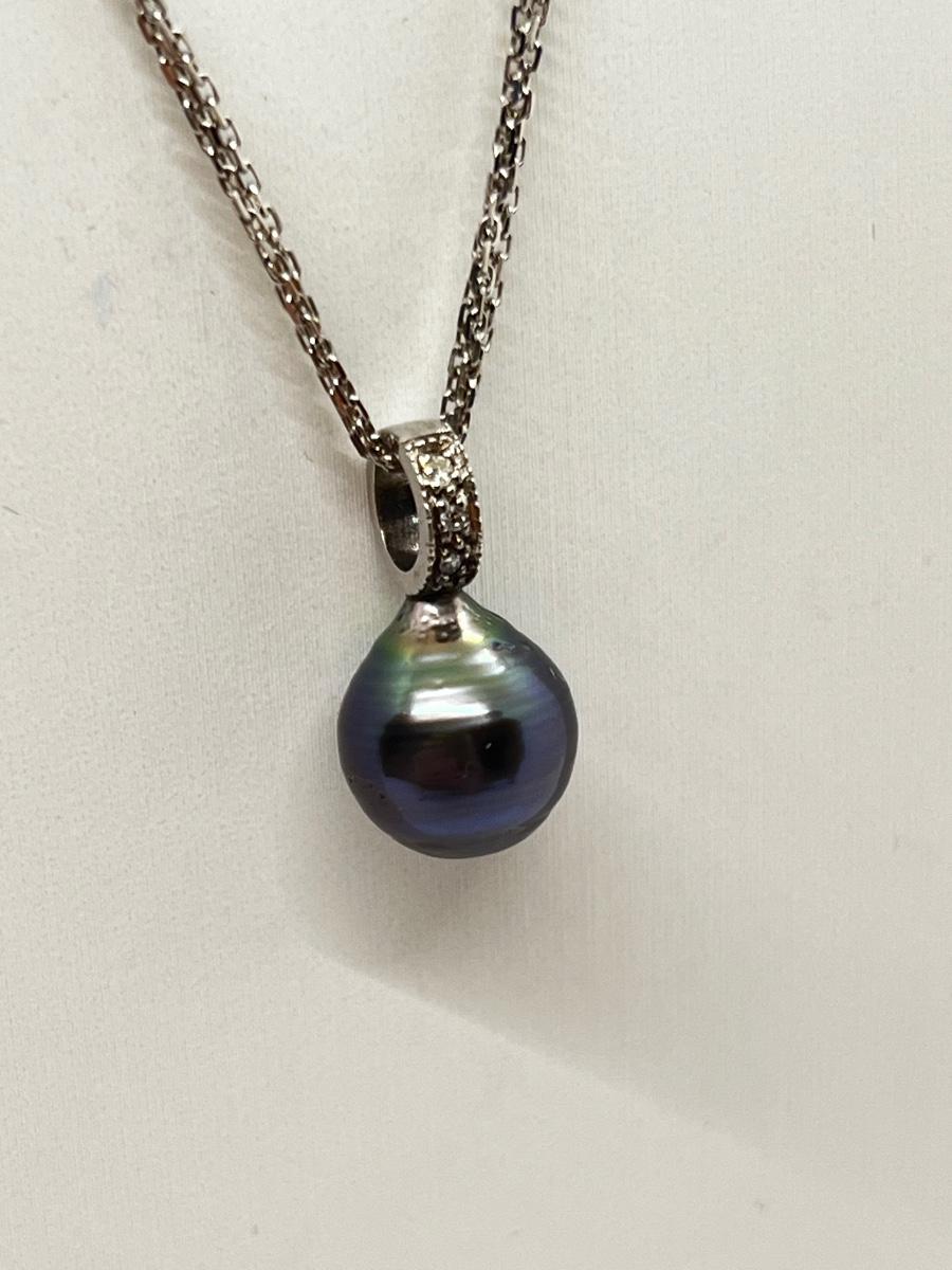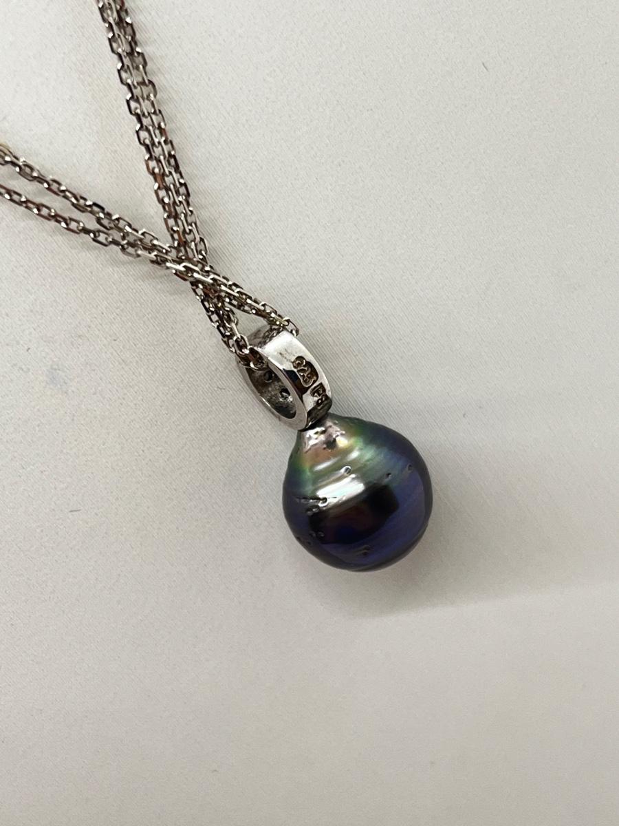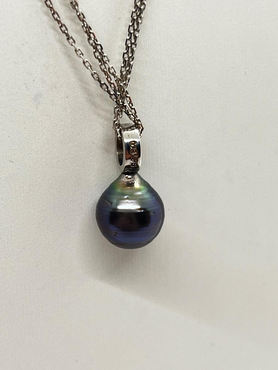 LOT 284J: Sterling Silver Double Chain Tahitian Pearl Pendant Necklace