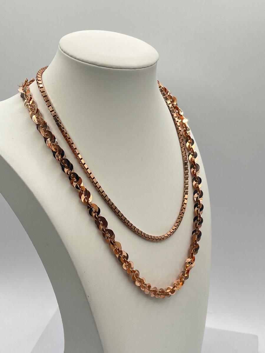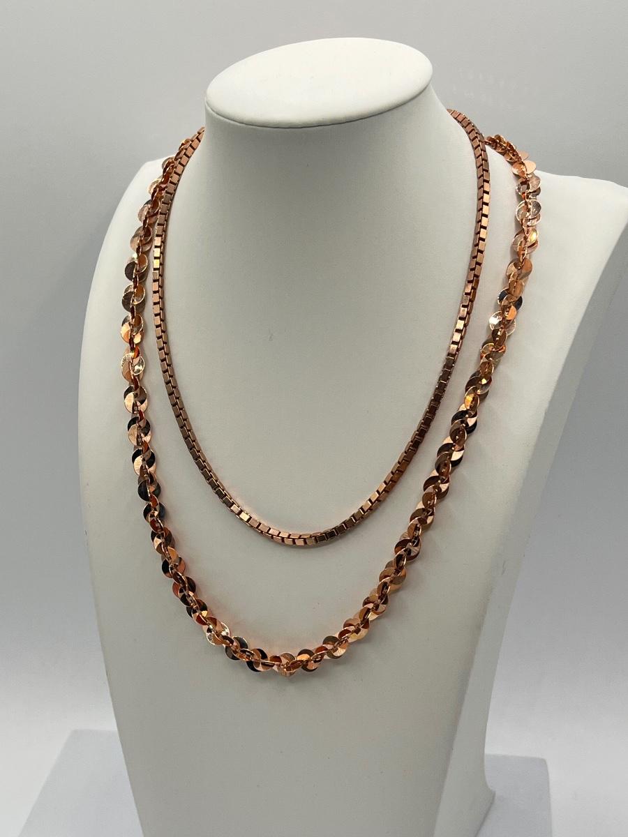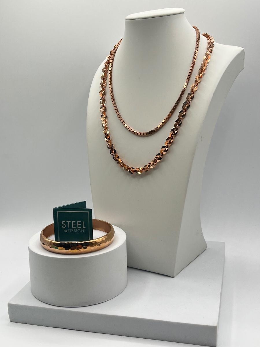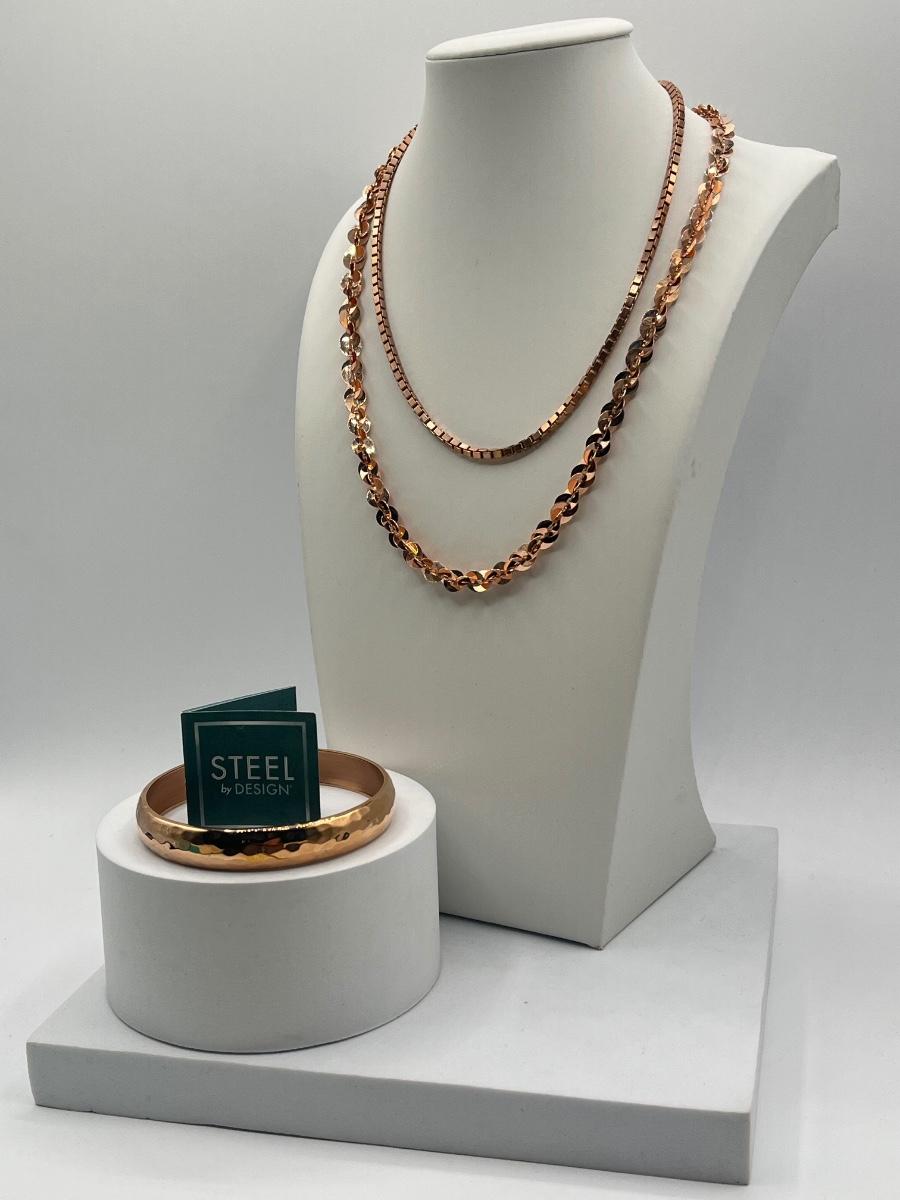 LOT 292J: Two Bronze Milor Italy Chains - 16" and 20" - and Steel By Design Bangle Bracelet