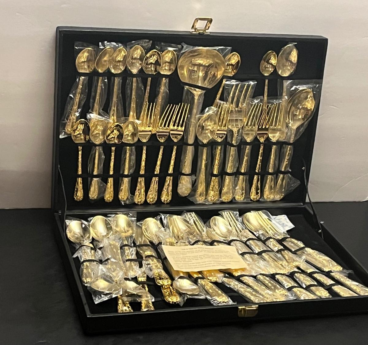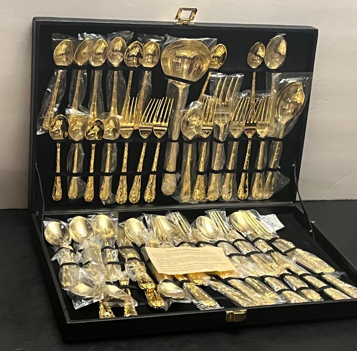 LOT 295J: Wm. Rogers & Son Gold-Plated Flatware Set