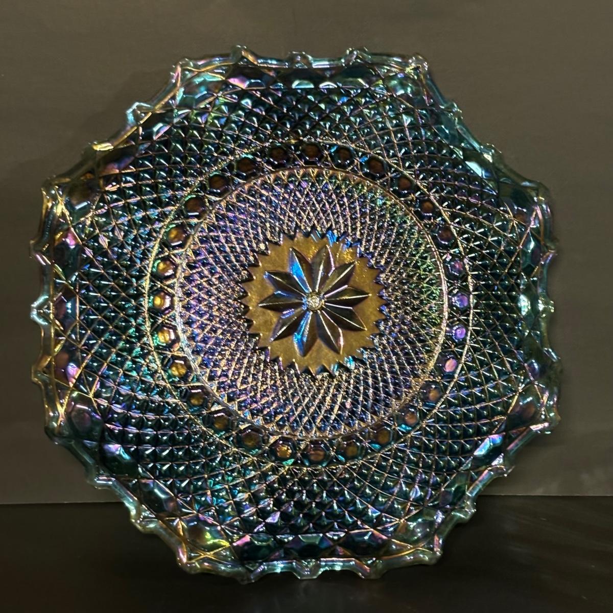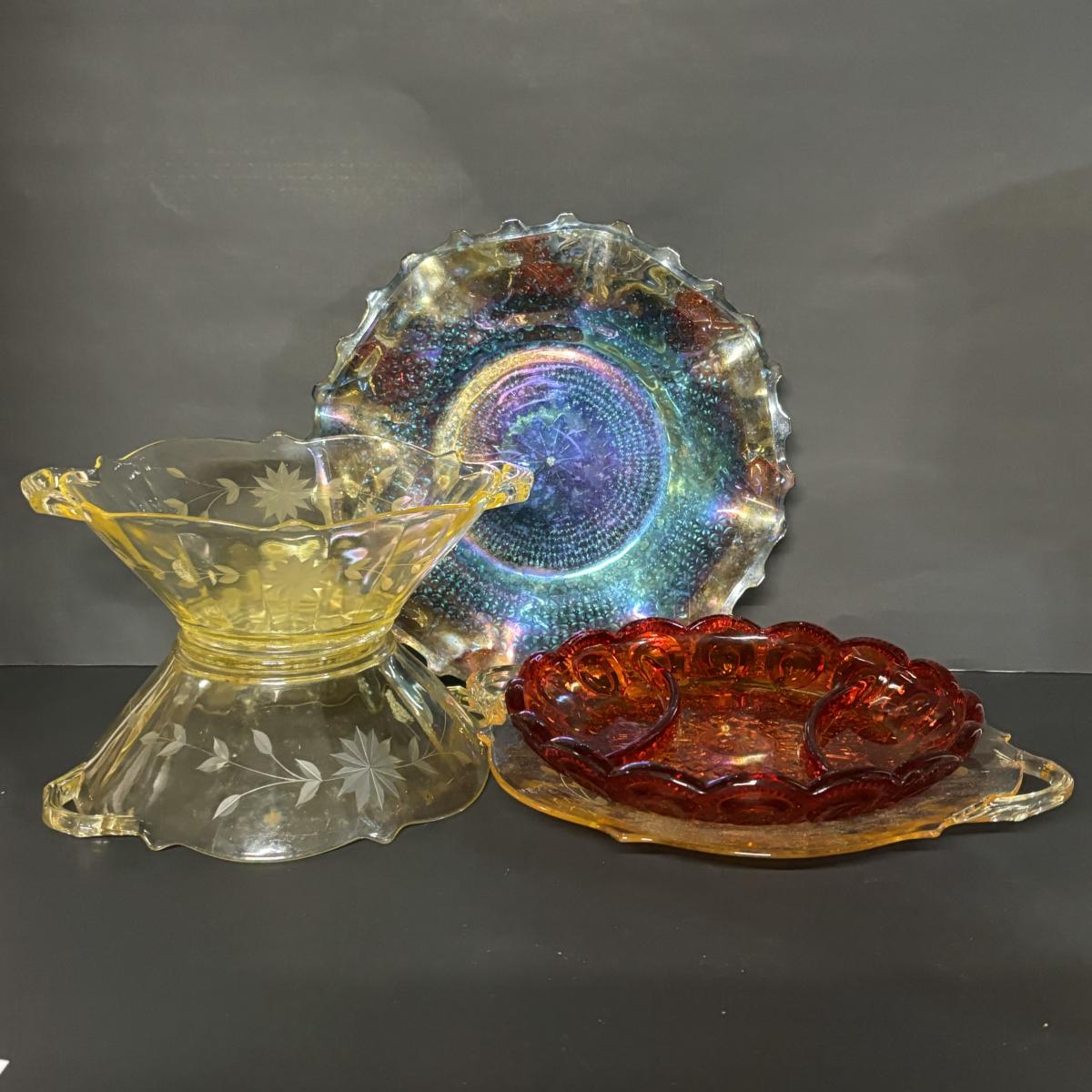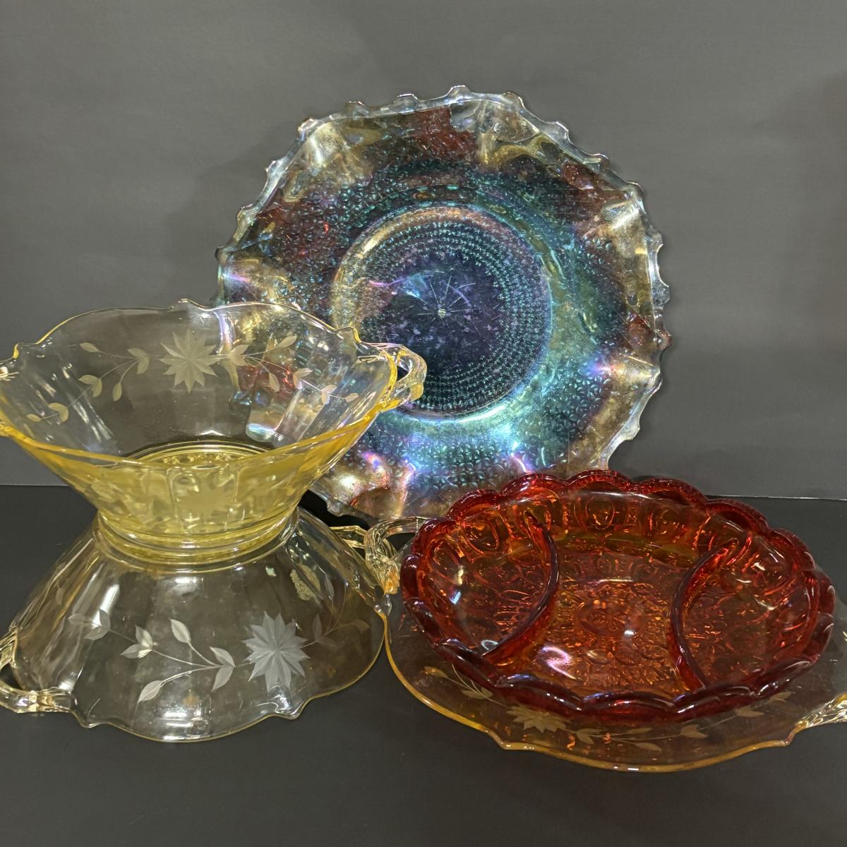 LOT 5: Vintage Indiana Blue Carnival Iridescent Glass, Amberina Glass, Etched Yellow Depression Glass