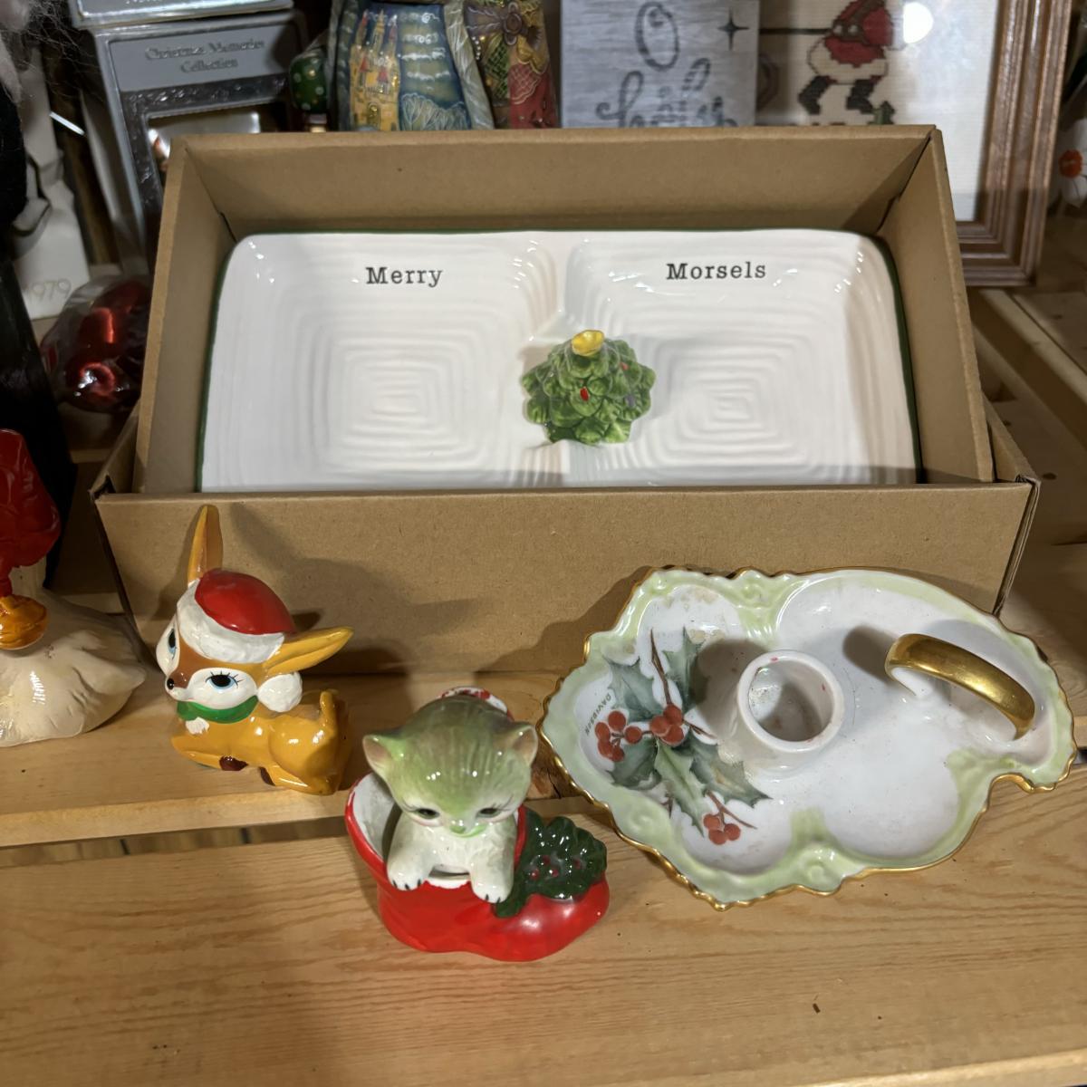 LOT 9: Holiday Decor: Counted Crossed Stitch, Candle Warmer, Ornaments Quilt & More