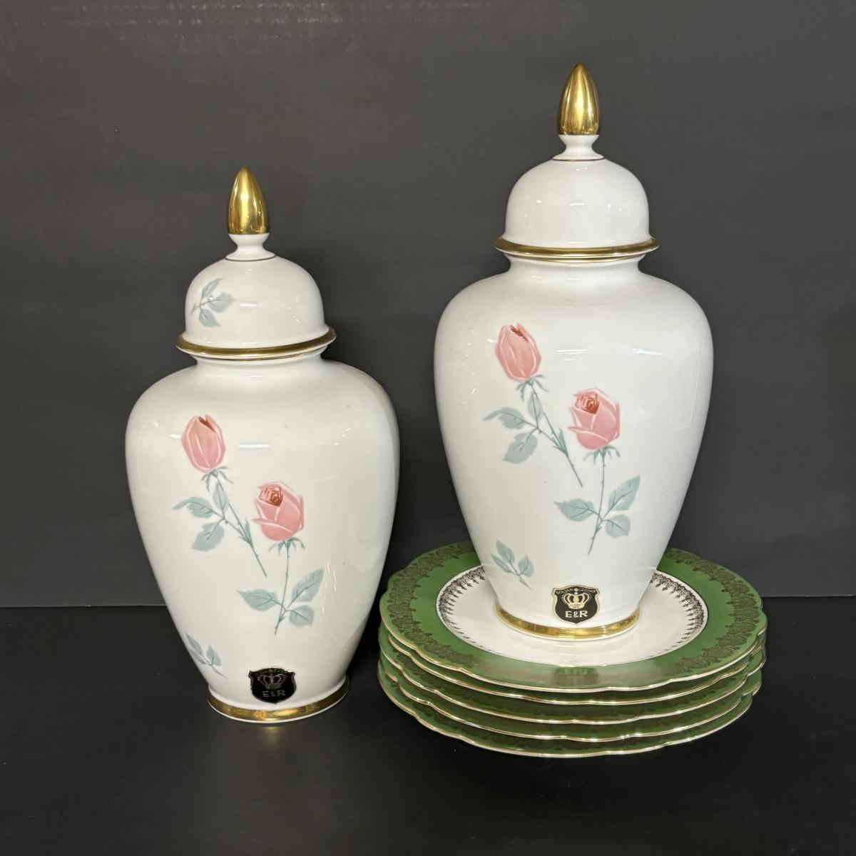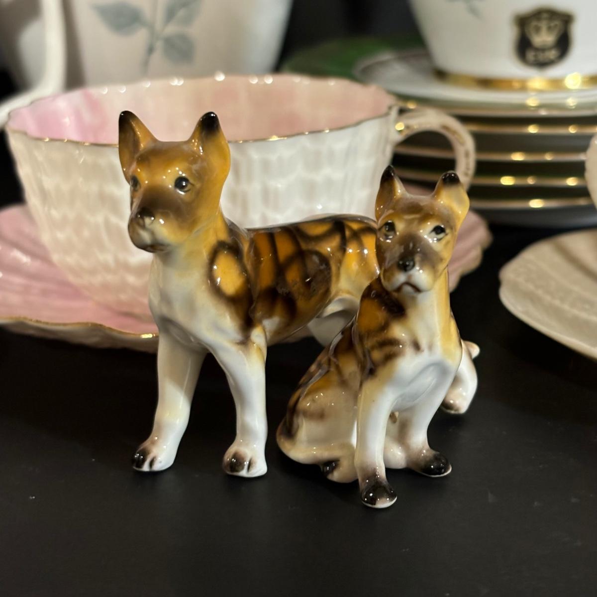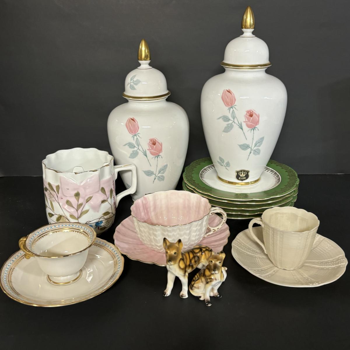 LOT 14: Alka Kunst Bavaria Germany Ginger Jars, Belleck Teacup/Saucer, SS Bone China Miniature Dogs & More