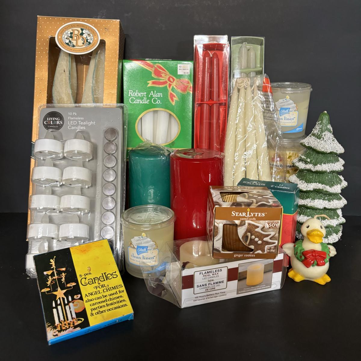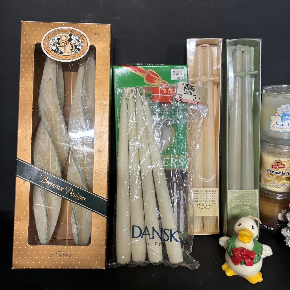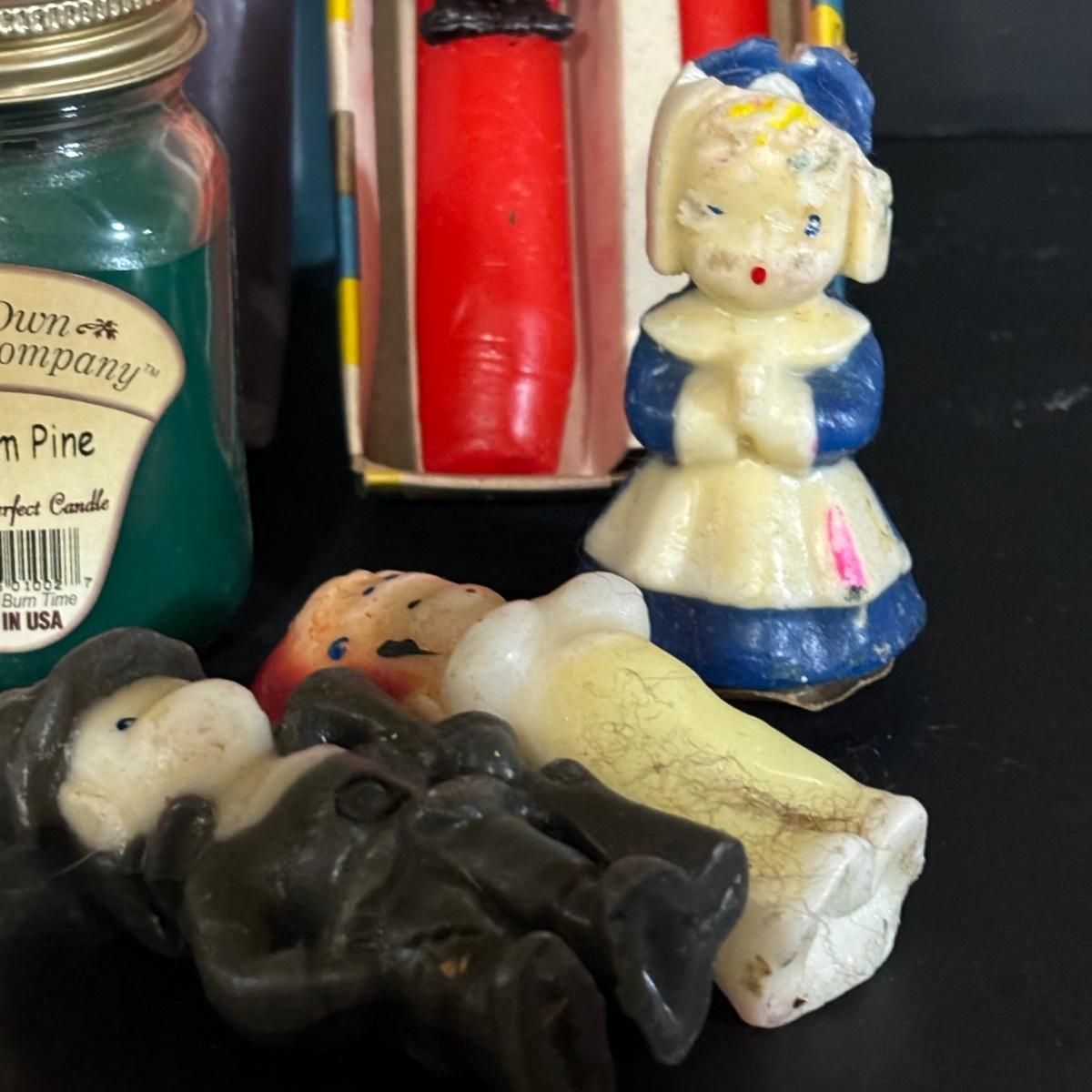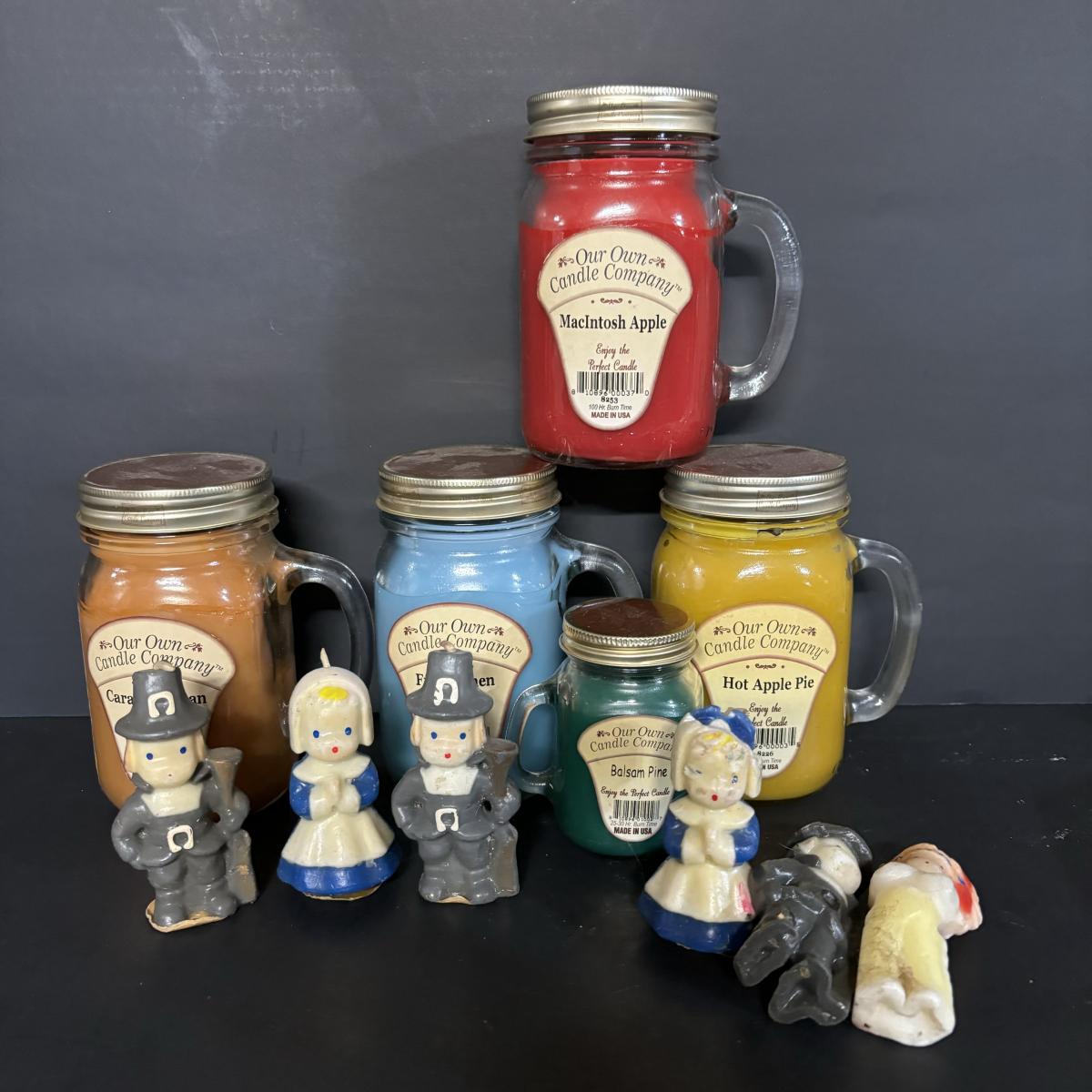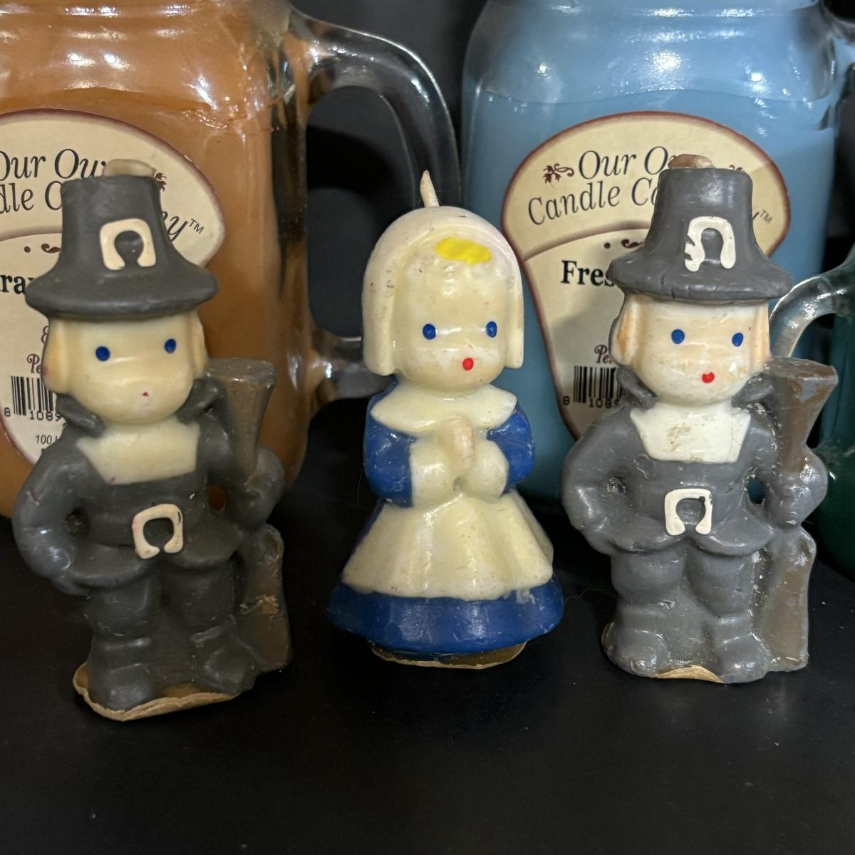 LOT 19: Candle Collection: Holiday Tapers, Vintage Pilgrims, Our Own Candle Co., Three King Tapers, Beeswax & More