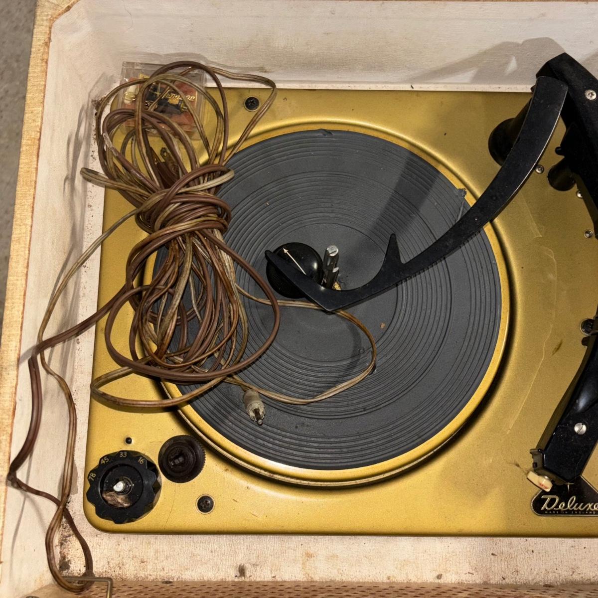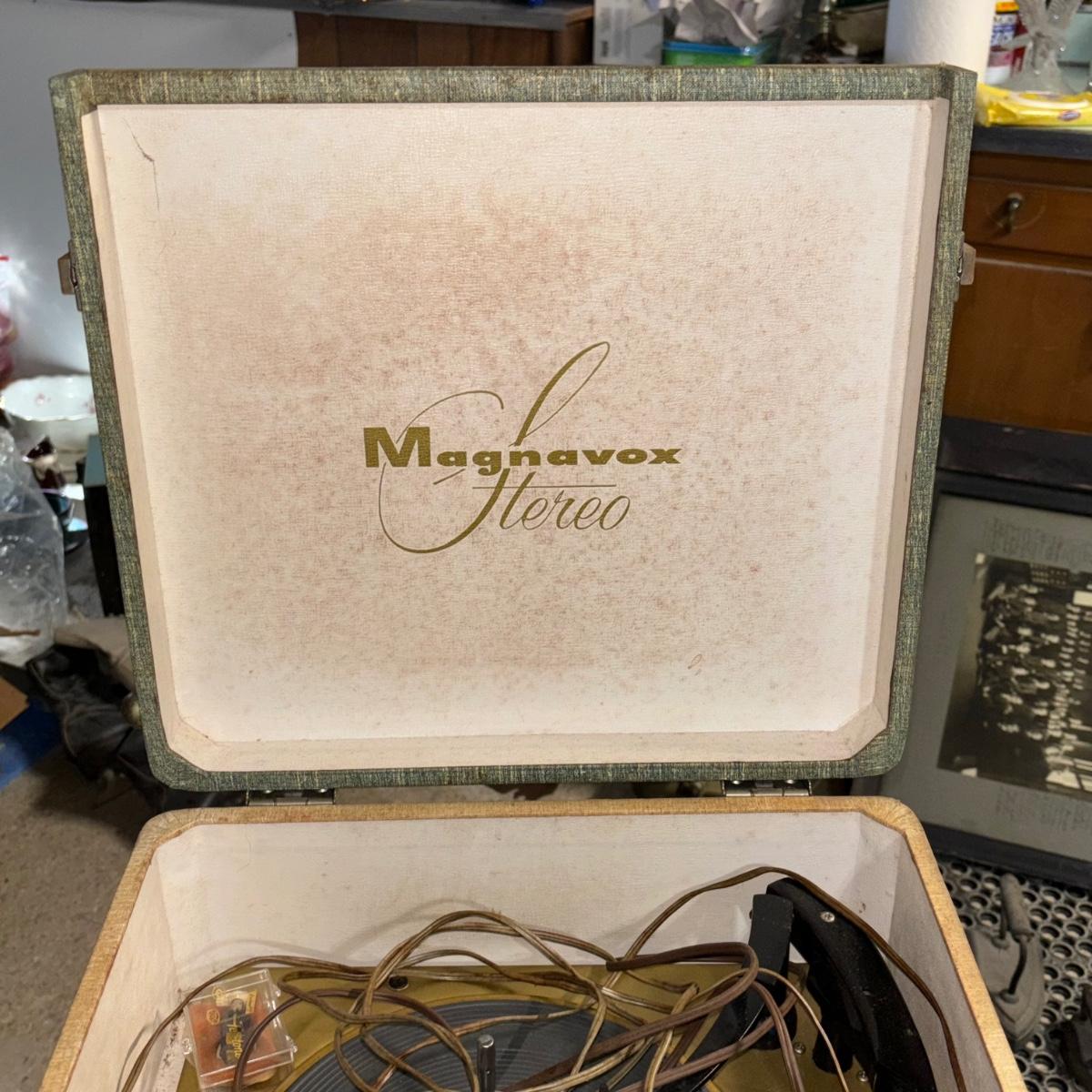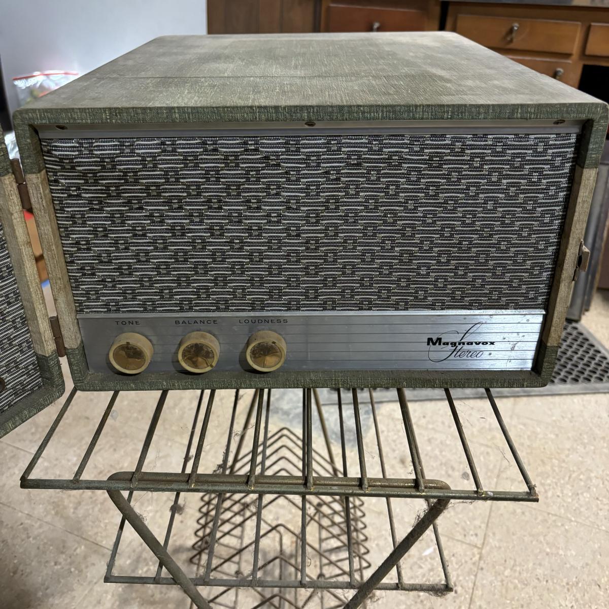 LOT 21: Vintage Magnavox Hereo Stereo Deluxe, Made in England & Wire Stereo Stand