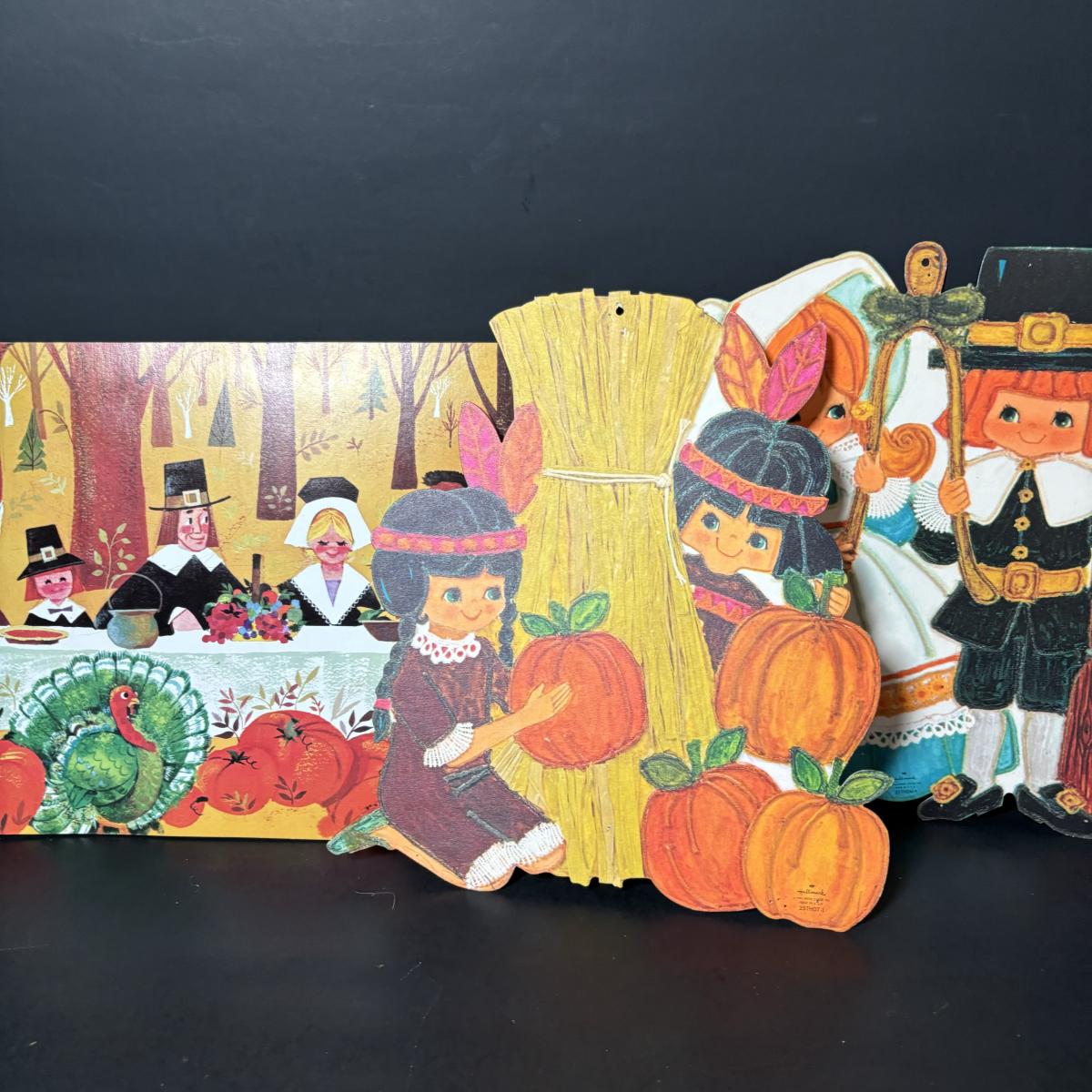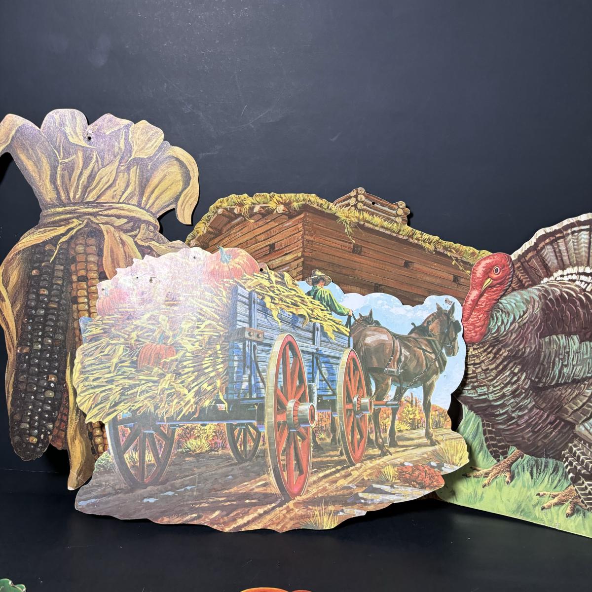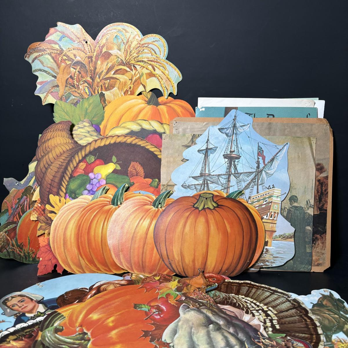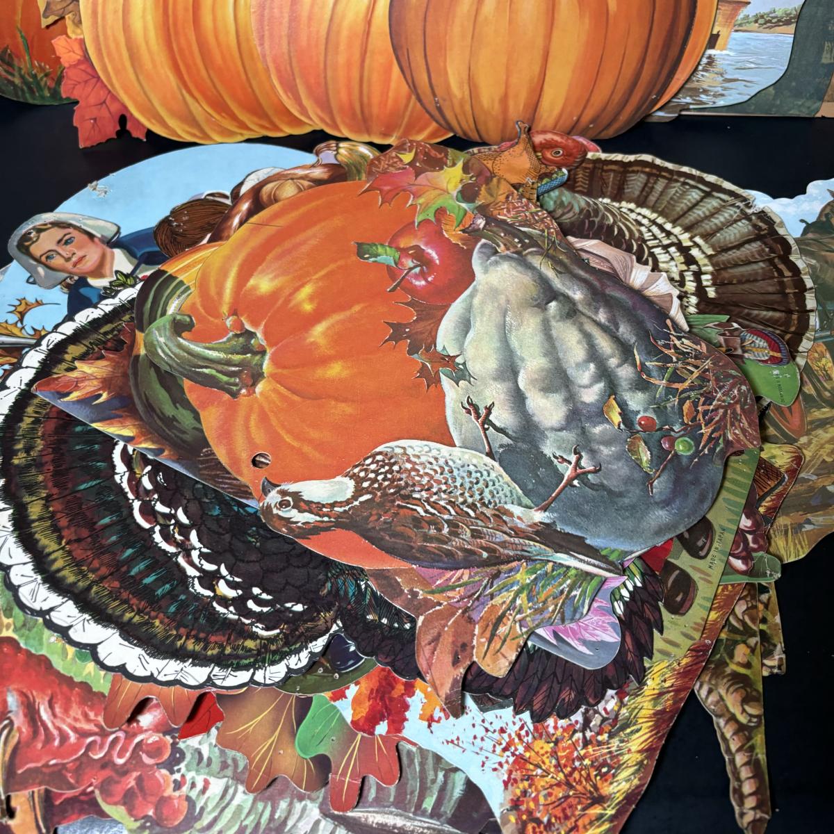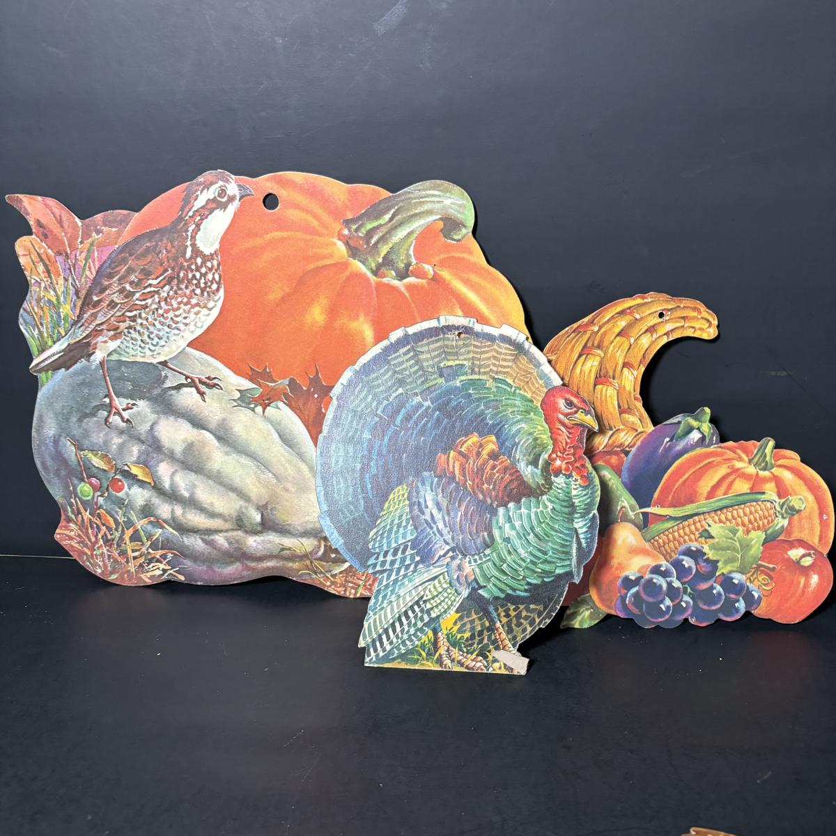 LOT 27: Vintage Fall/Thanksgiving Die-cut Decorations: Dennison, Made in USA, Hallmark, Made in Japan