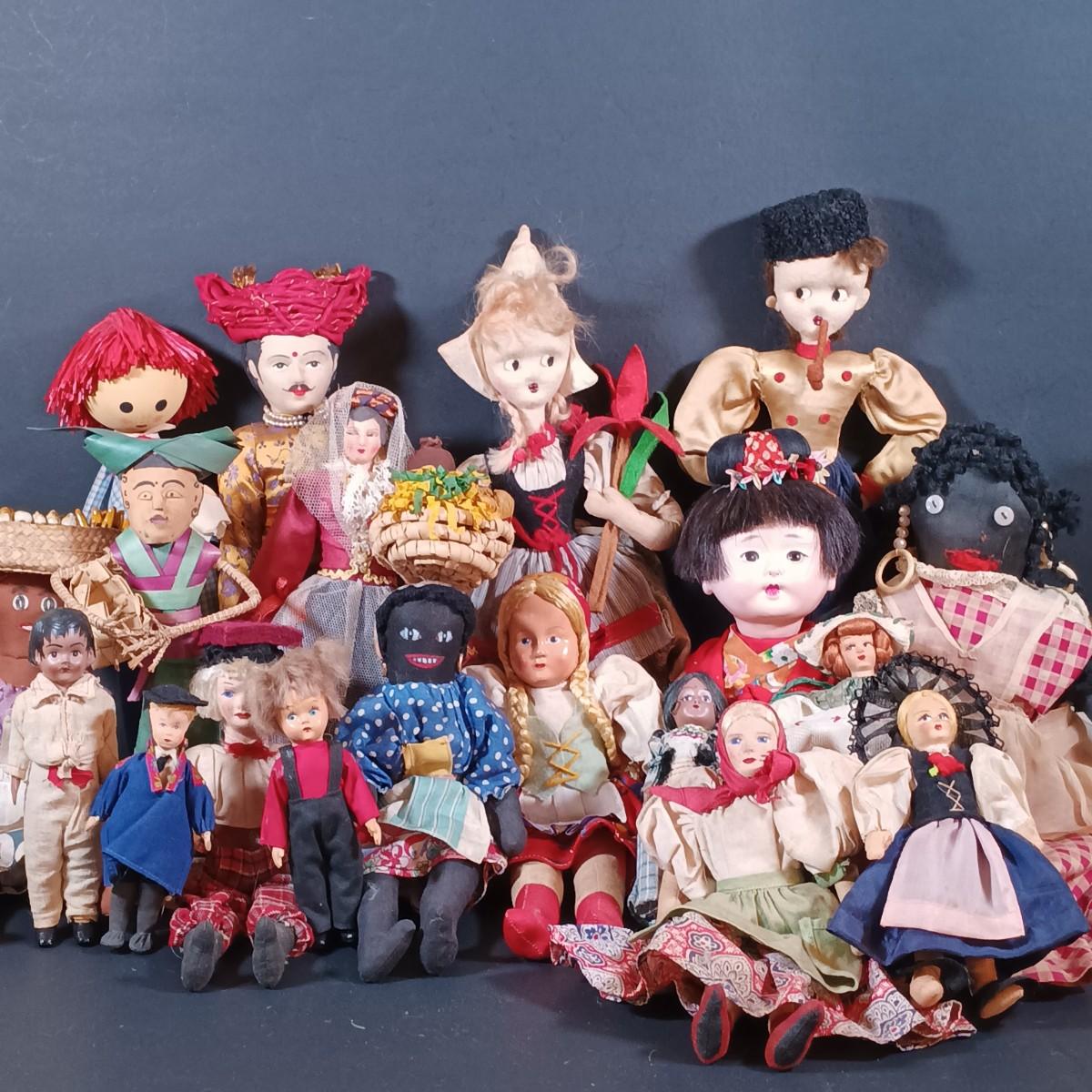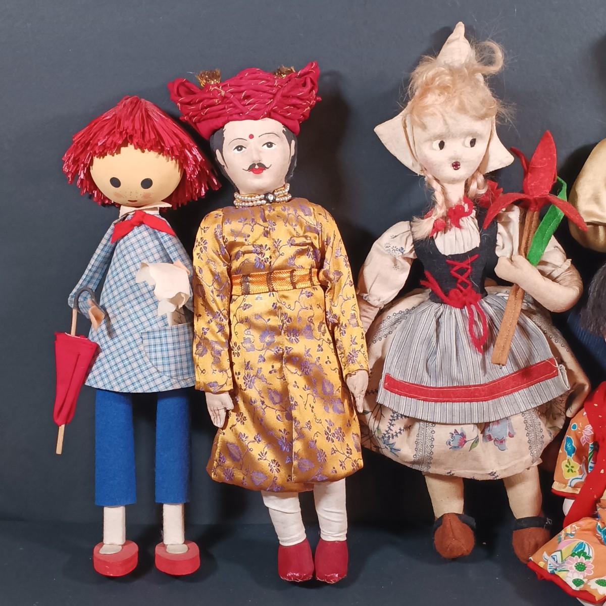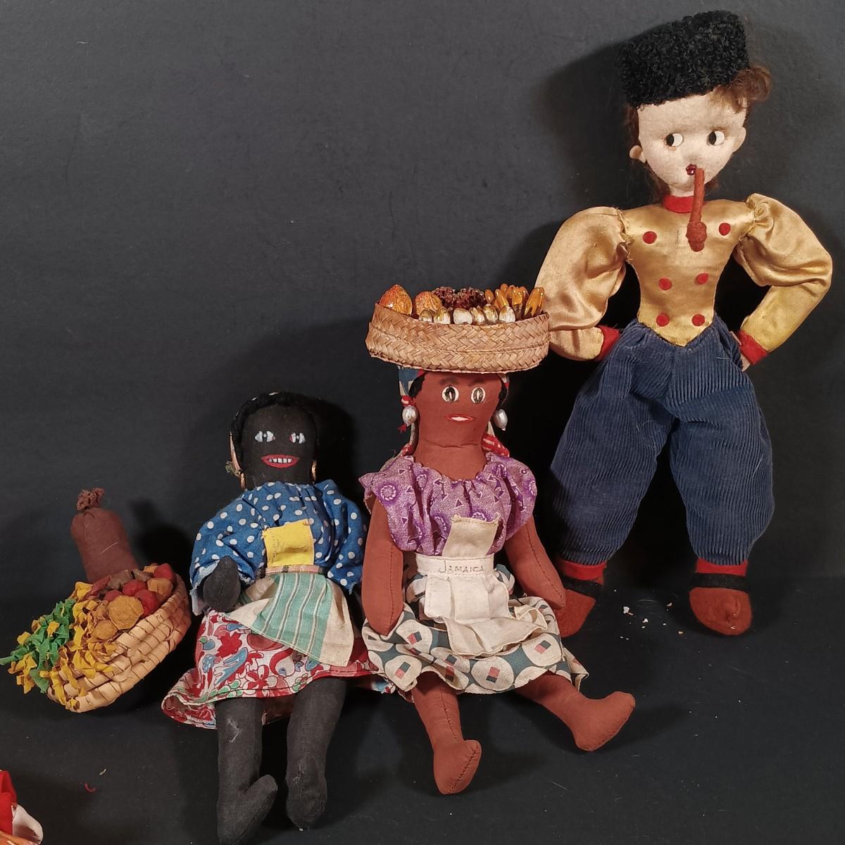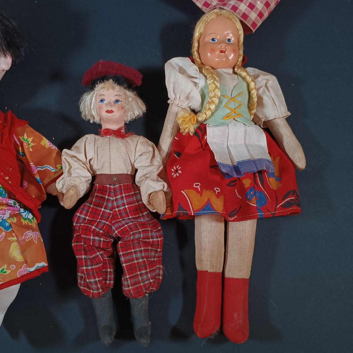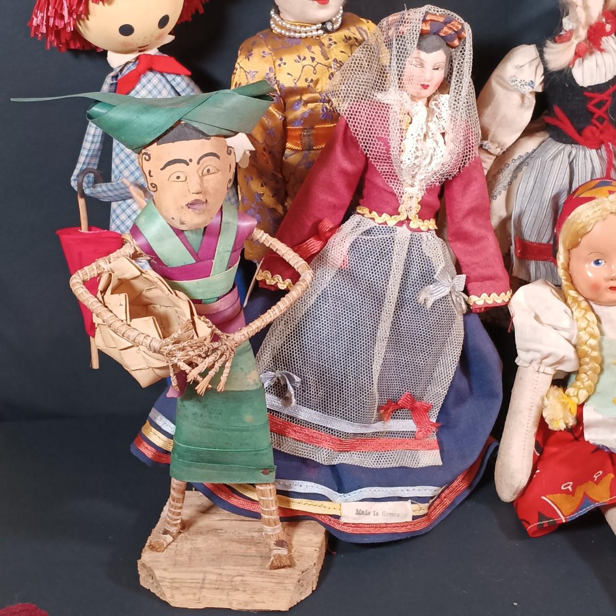 LOT 28: Vintage Handmade Dolls From Around the World- Italian Wrist Purse Doll, Japanese Ichimatsu Gofun Doll, Polish Celluloid Face Rag Doll & More