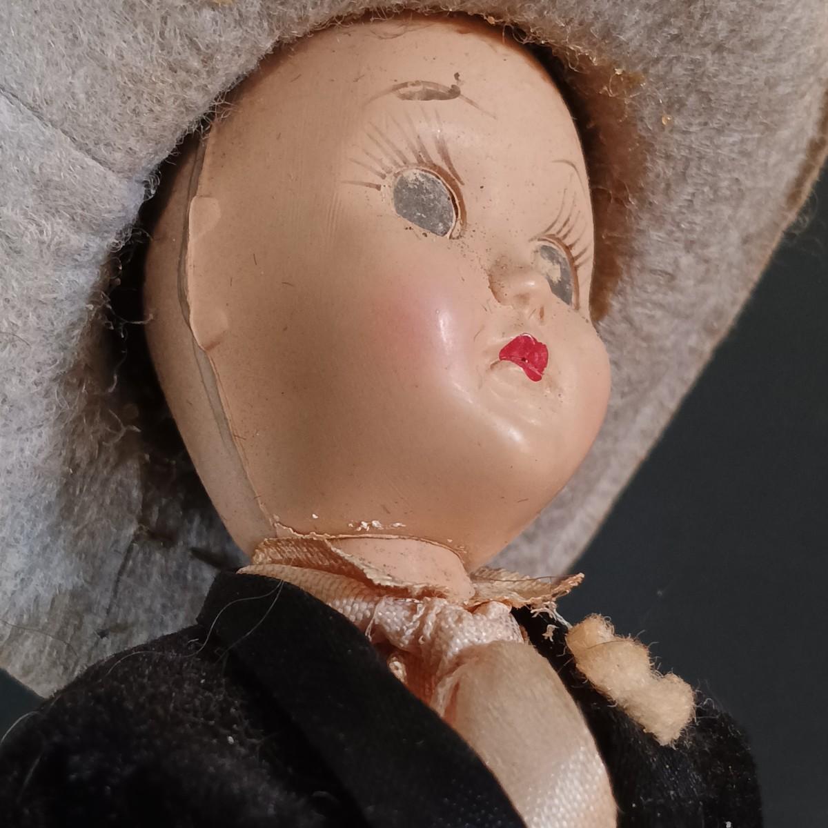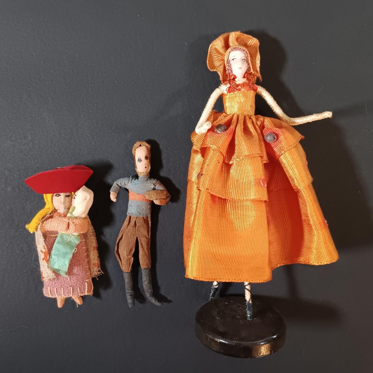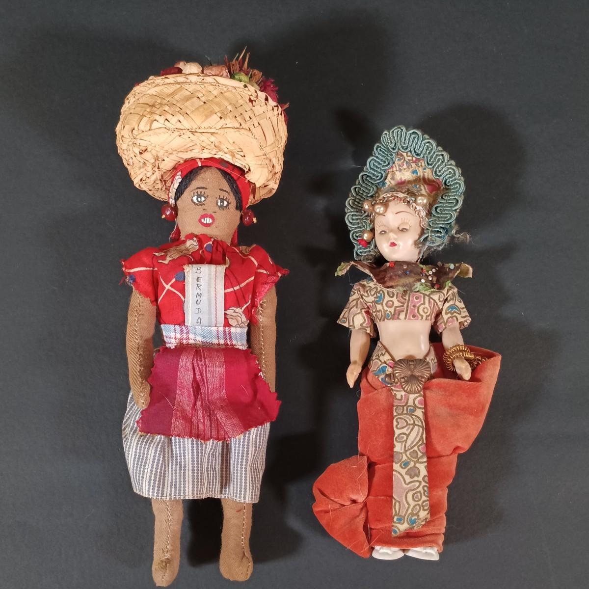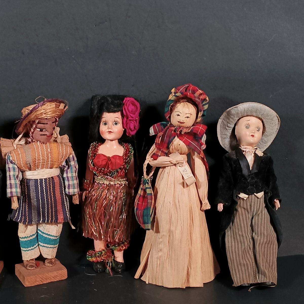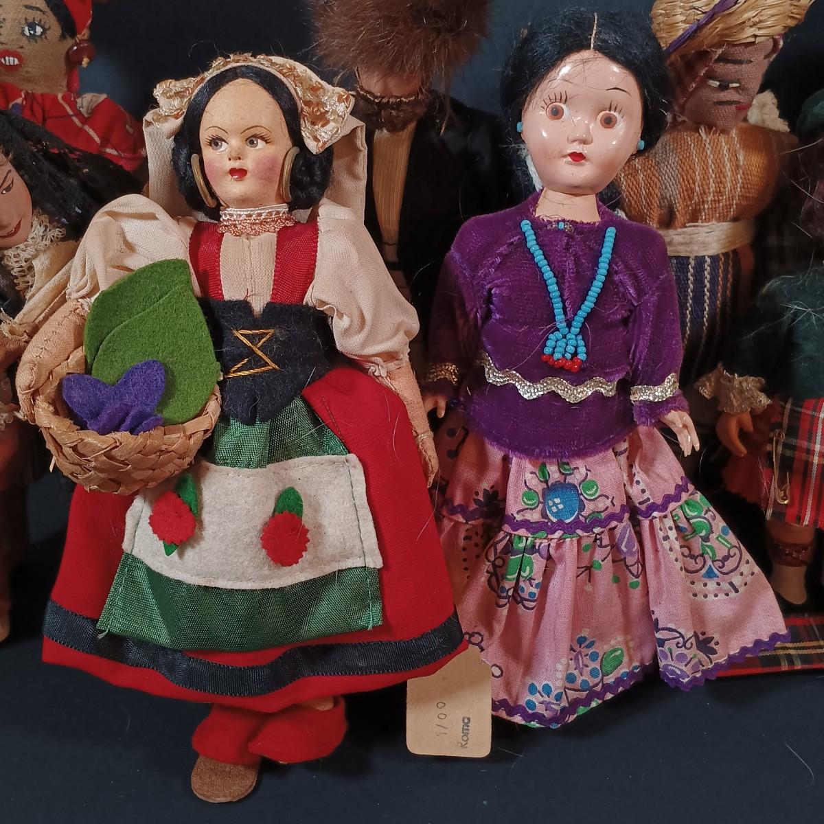 LOT 29: Vintage Handmade Tourist Dolls- Pierrot Jester, Lancaster Amish Girl, Navajo Composition Doll & More