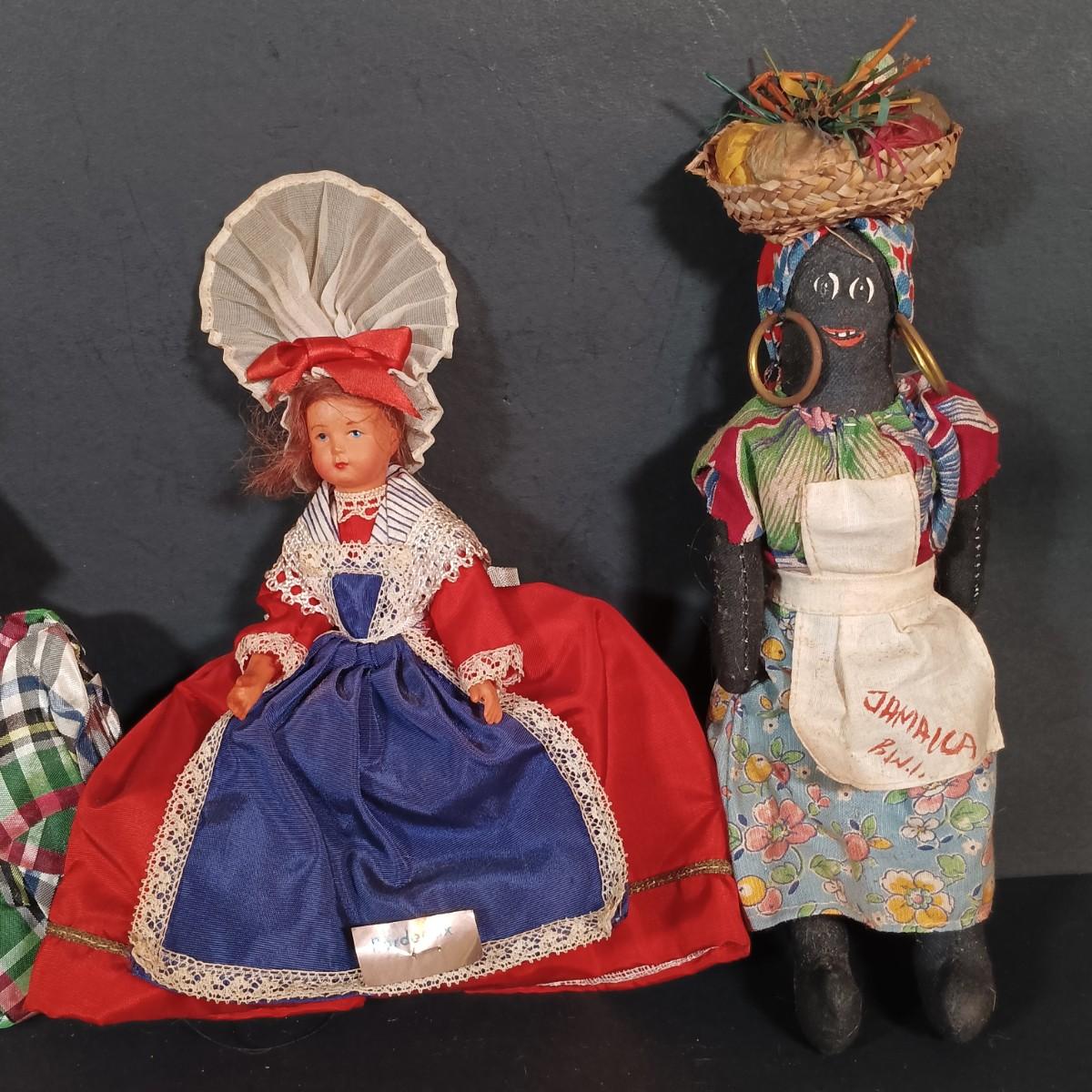 LOT 30: Vintage Handmade Tourist Dolls- British Bobby, Seminole Native American Doll, Jamaican Cloth Doll & More