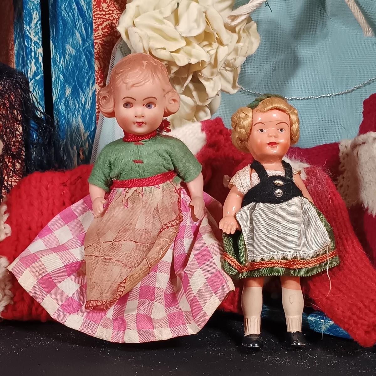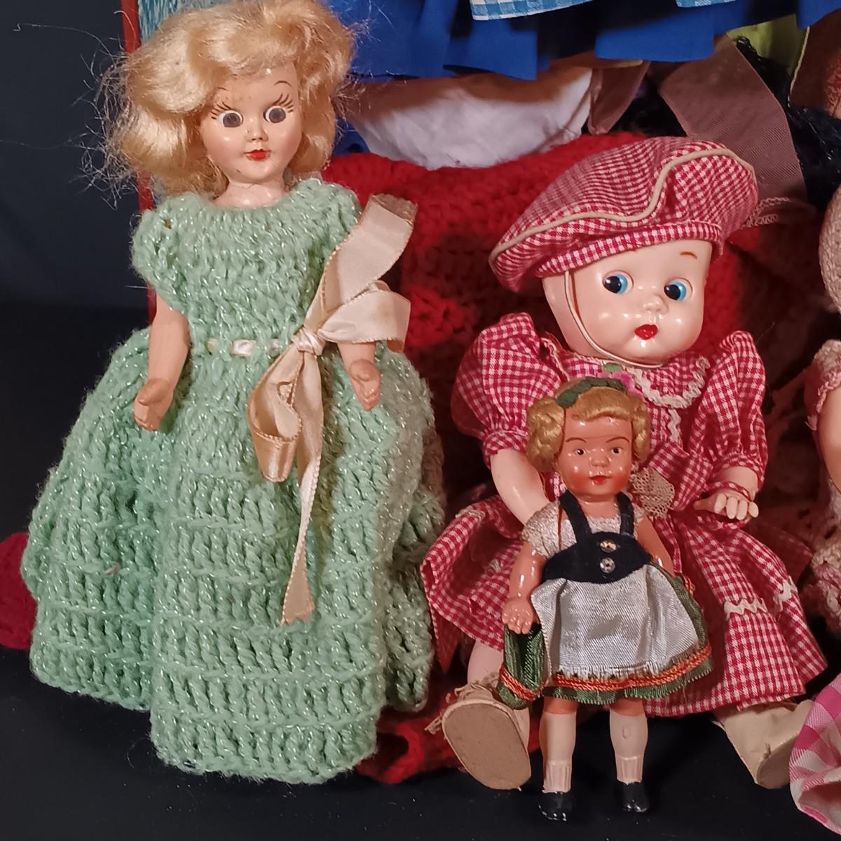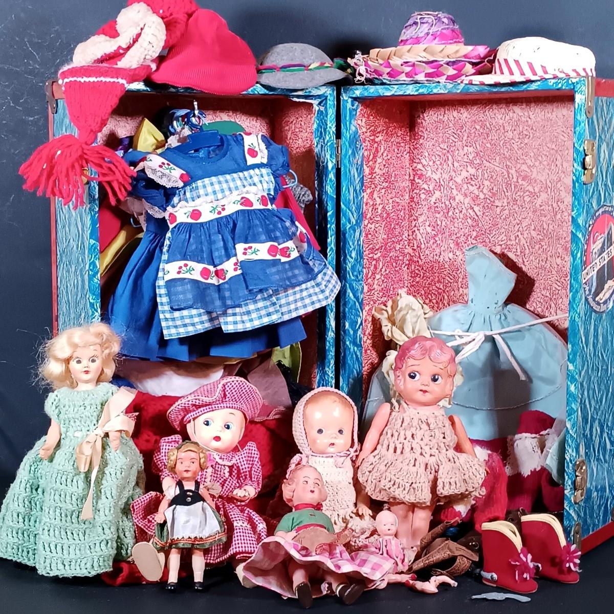 LOT 31: Vintage Celluloid Made in Japan Doll with Hard Plastic Dolls, Doll Clothes and Trunk