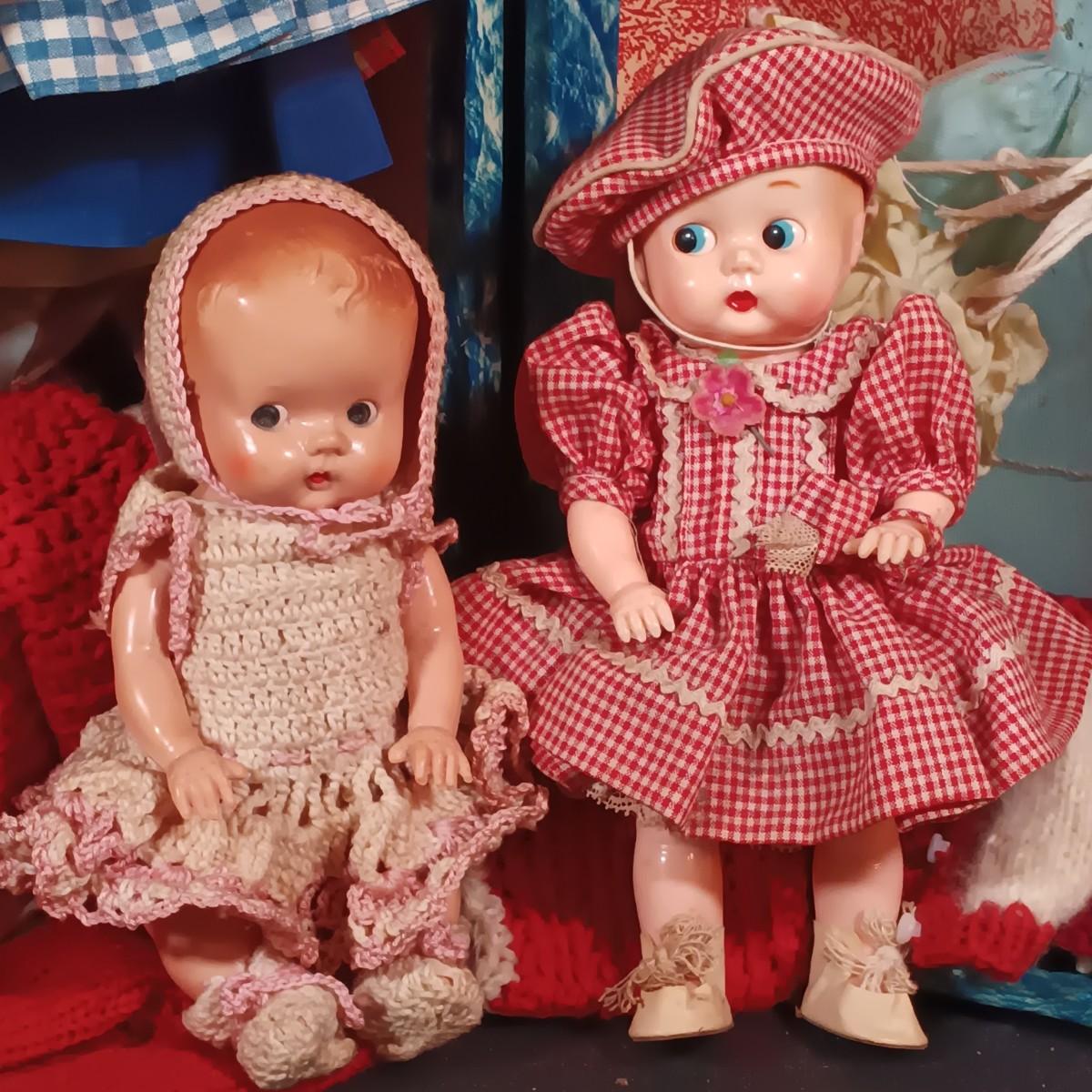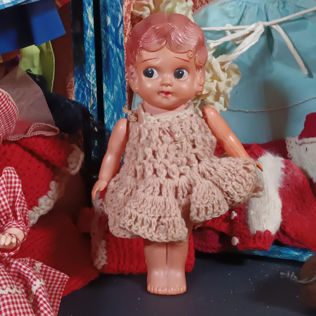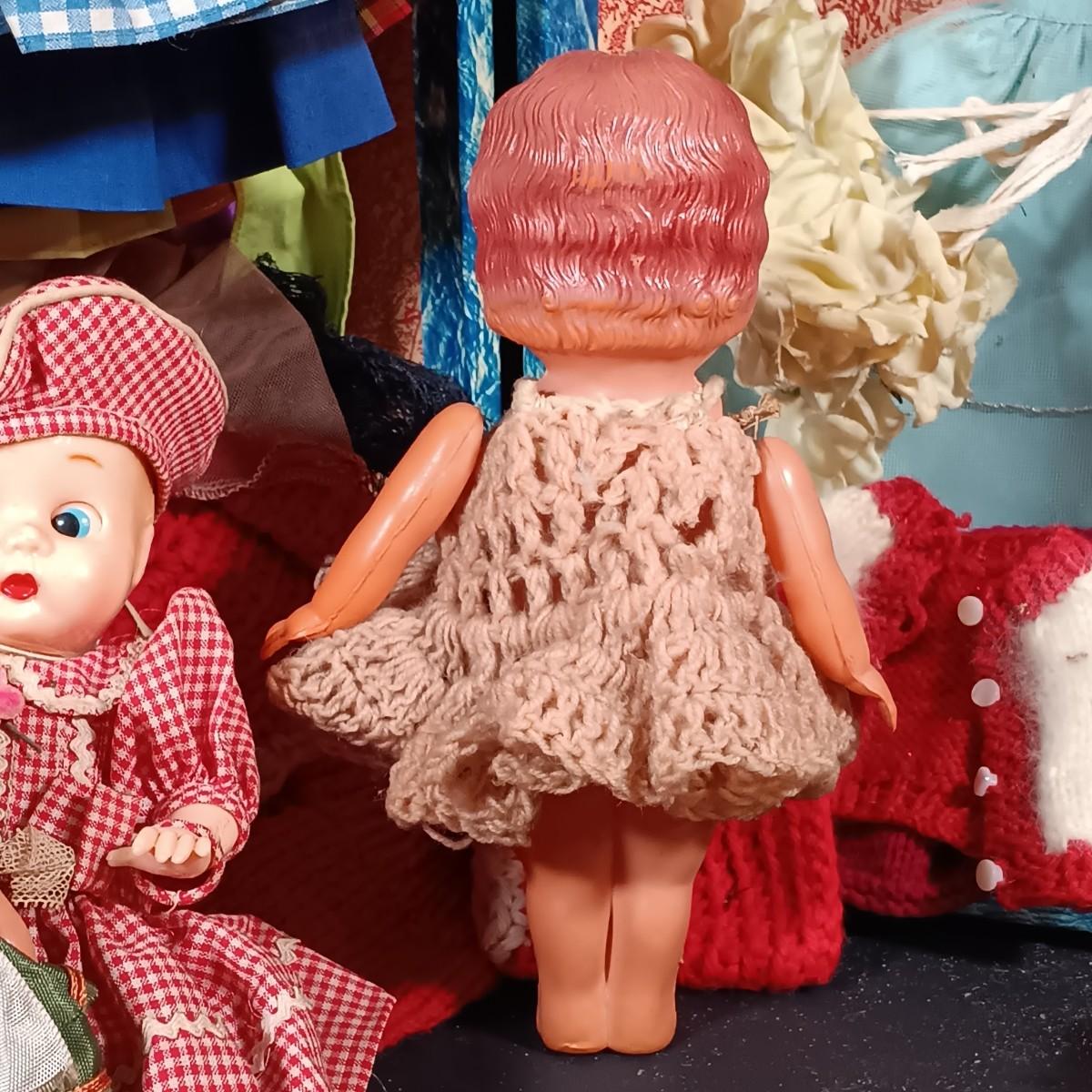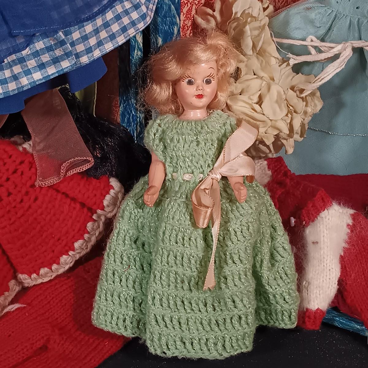 LOT 31: Vintage Celluloid Made in Japan Doll with Hard Plastic Dolls, Doll Clothes and Trunk