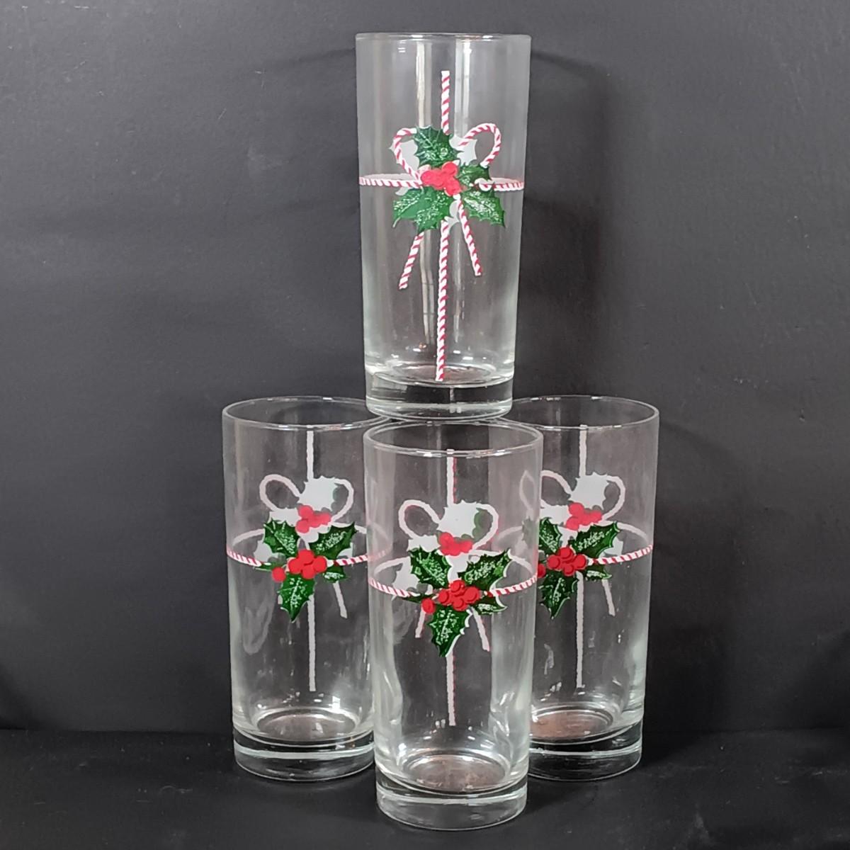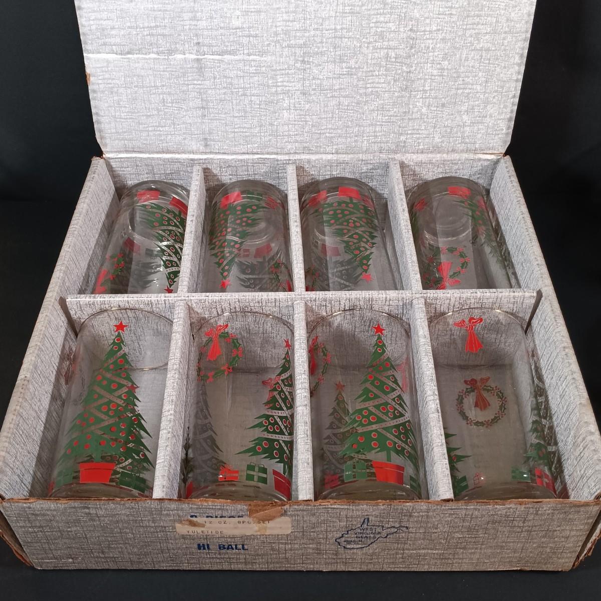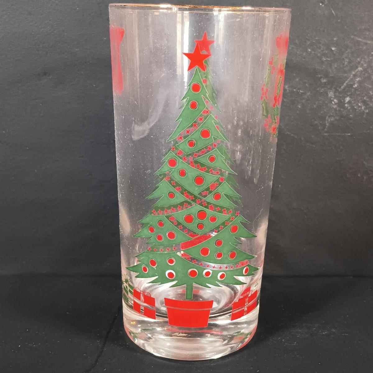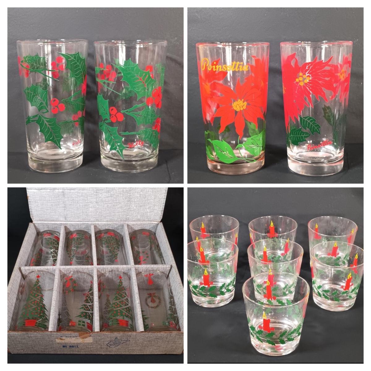 Lot 33: Vintage MCM West Virginia Glass Hi-Ball Christmas Tree Glasses with Other Holiday Tumblers / Hi-Ball Glasses