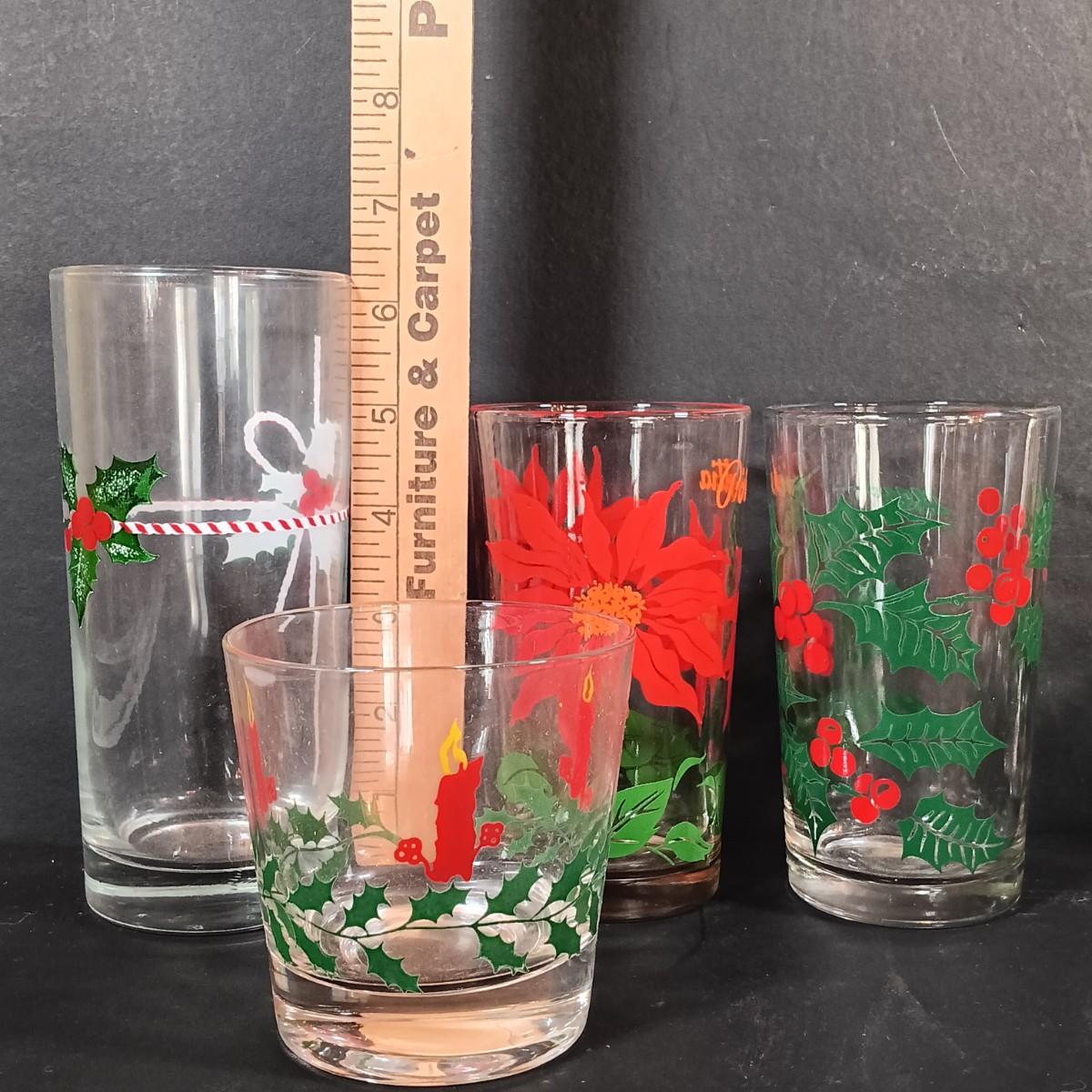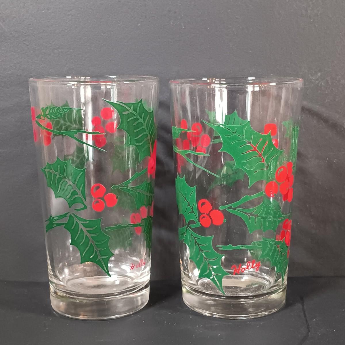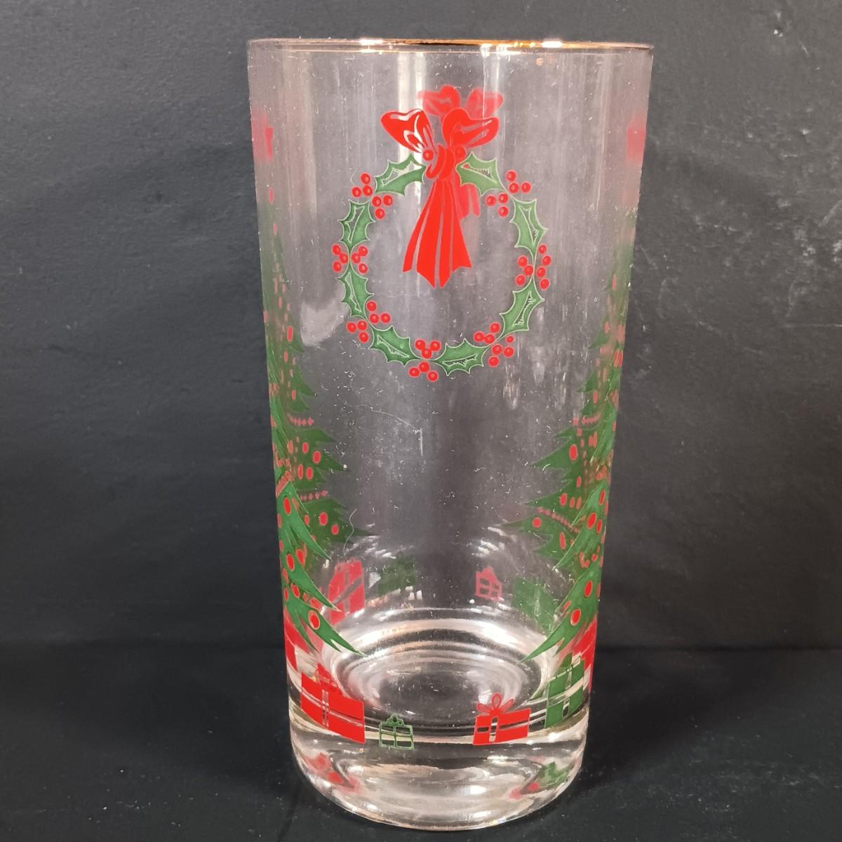 Lot 33: Vintage MCM West Virginia Glass Hi-Ball Christmas Tree Glasses with Other Holiday Tumblers / Hi-Ball Glasses