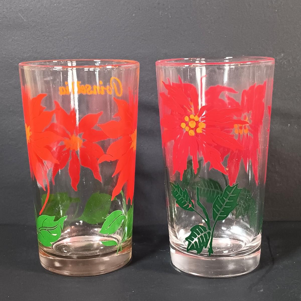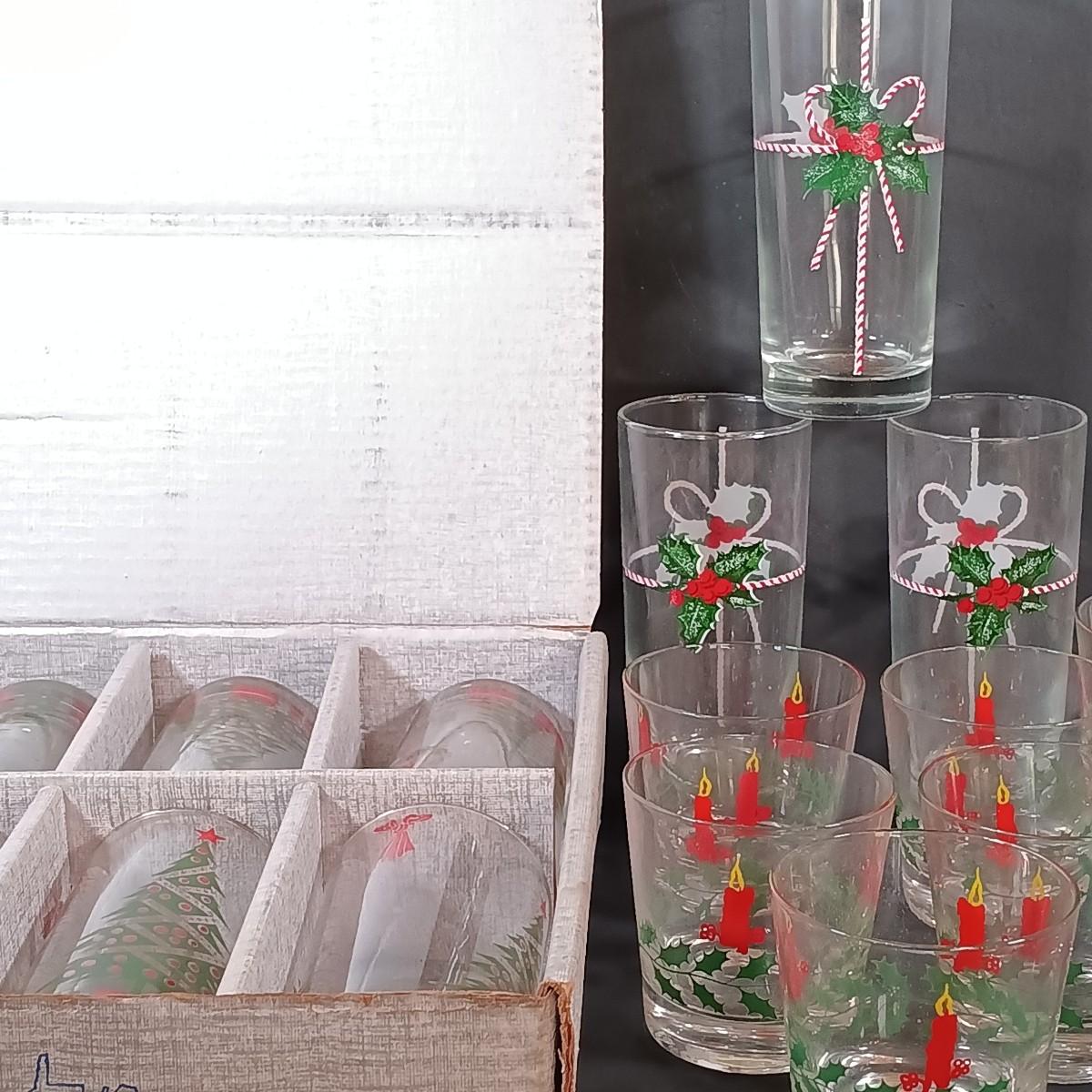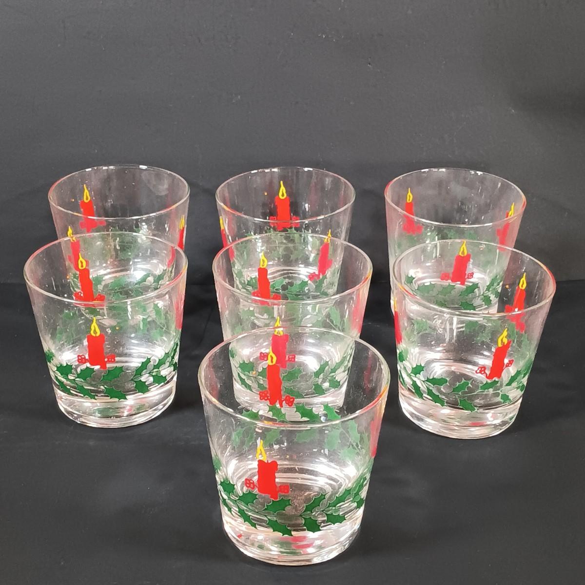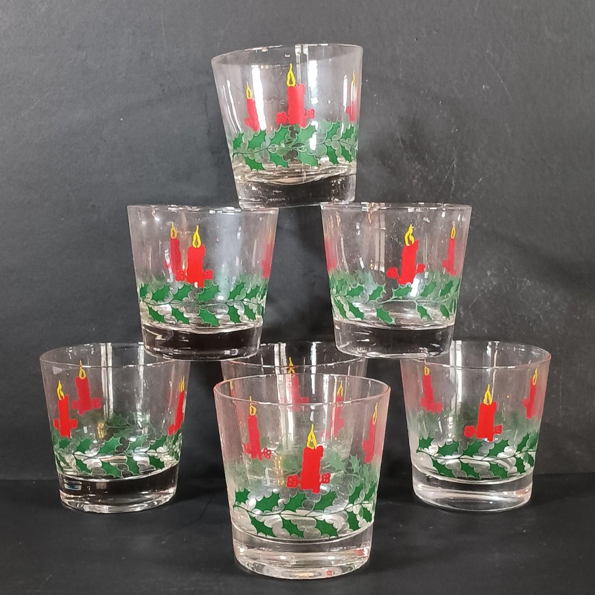 Lot 33: Vintage MCM West Virginia Glass Hi-Ball Christmas Tree Glasses with Other Holiday Tumblers / Hi-Ball Glasses