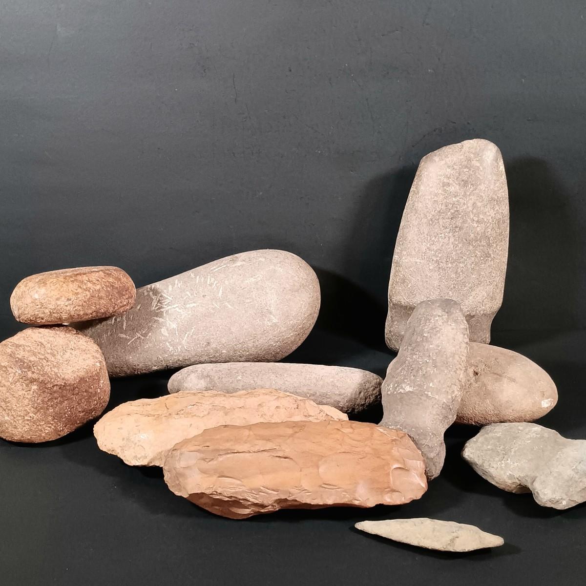 LOT 34: Prehistoric / Primitive Technology Tools- Native American Hand Axes, Pestle, Flint Axe, Arrowhead & More