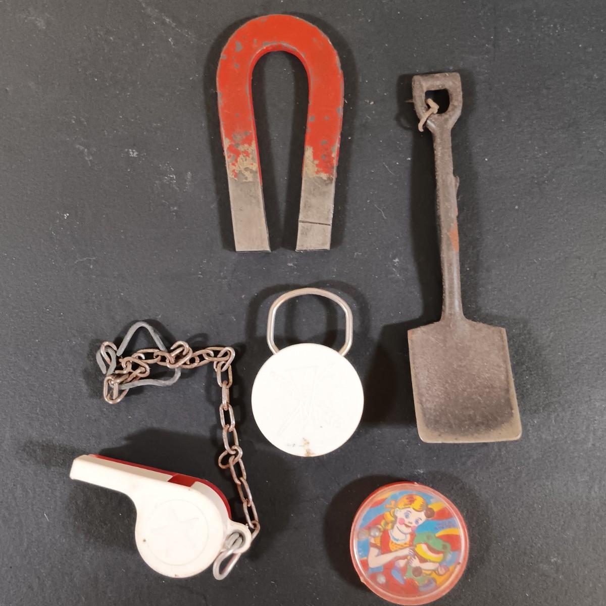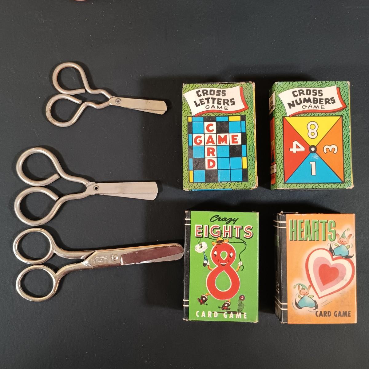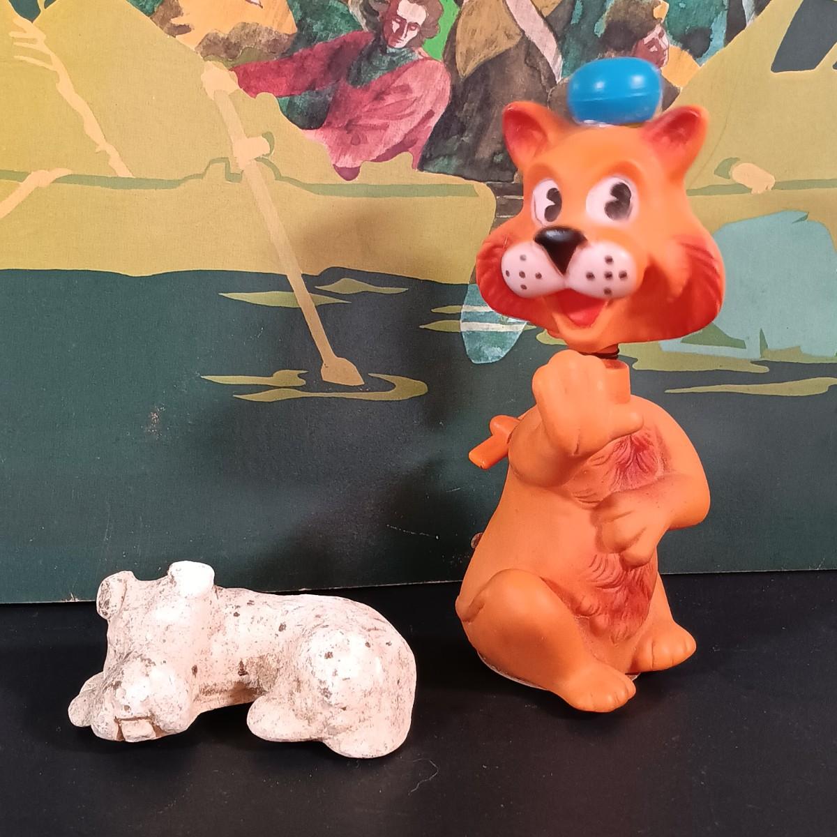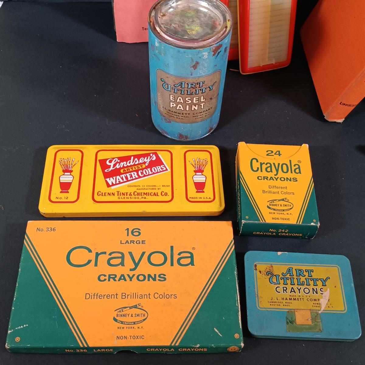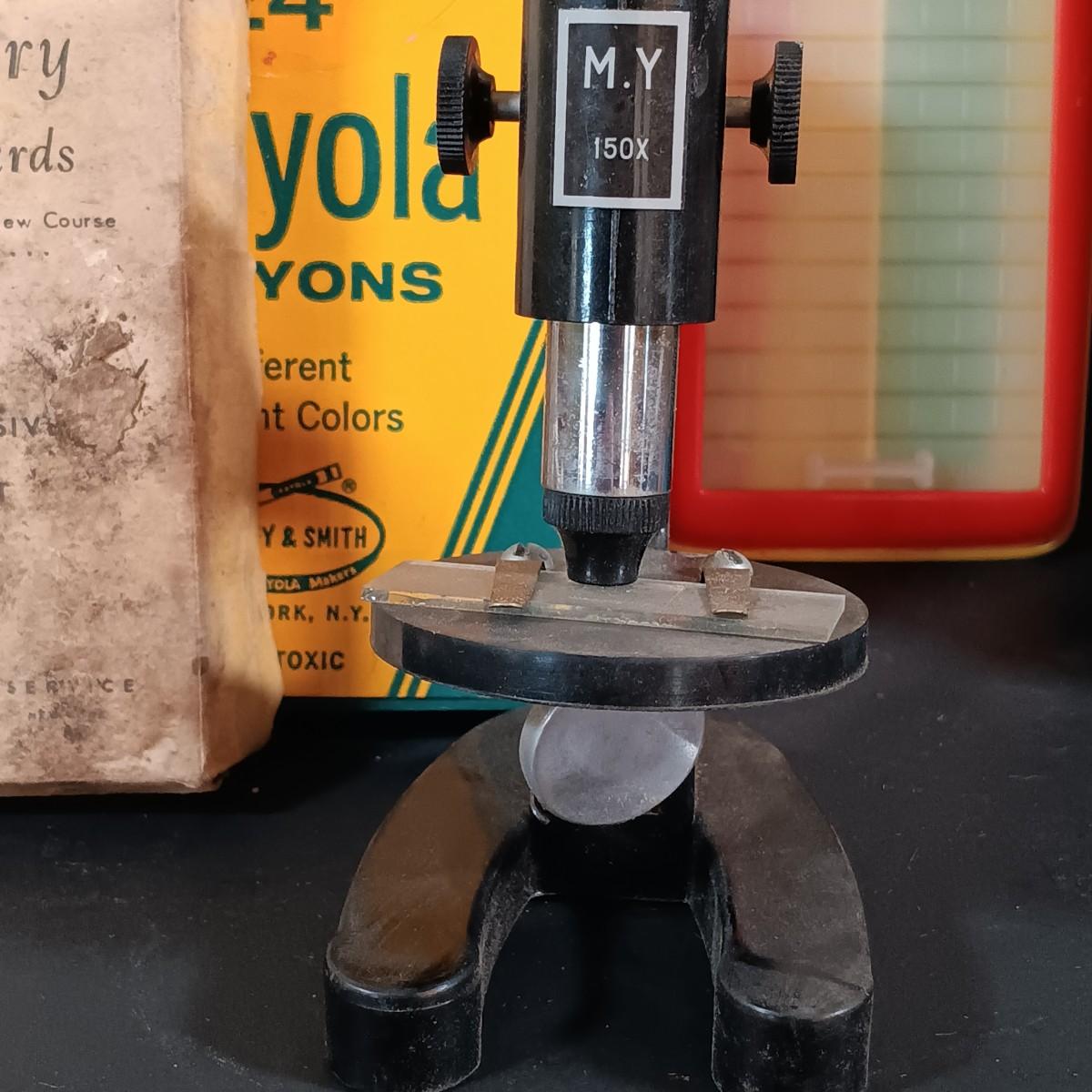LOT 45: Vintage School Collection- Mini Microscope and Chemistry Cards, 1960s Slide Top Pencil Cases, Knickerbocker Dancing Animal & More