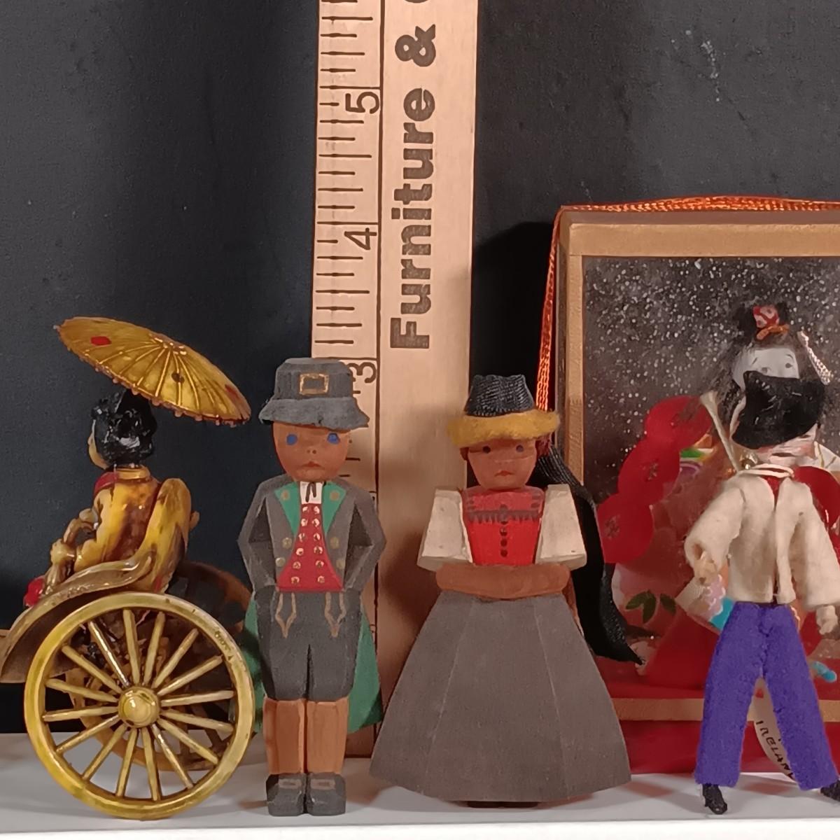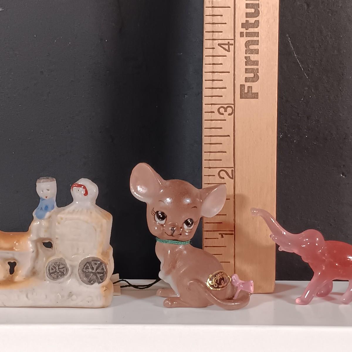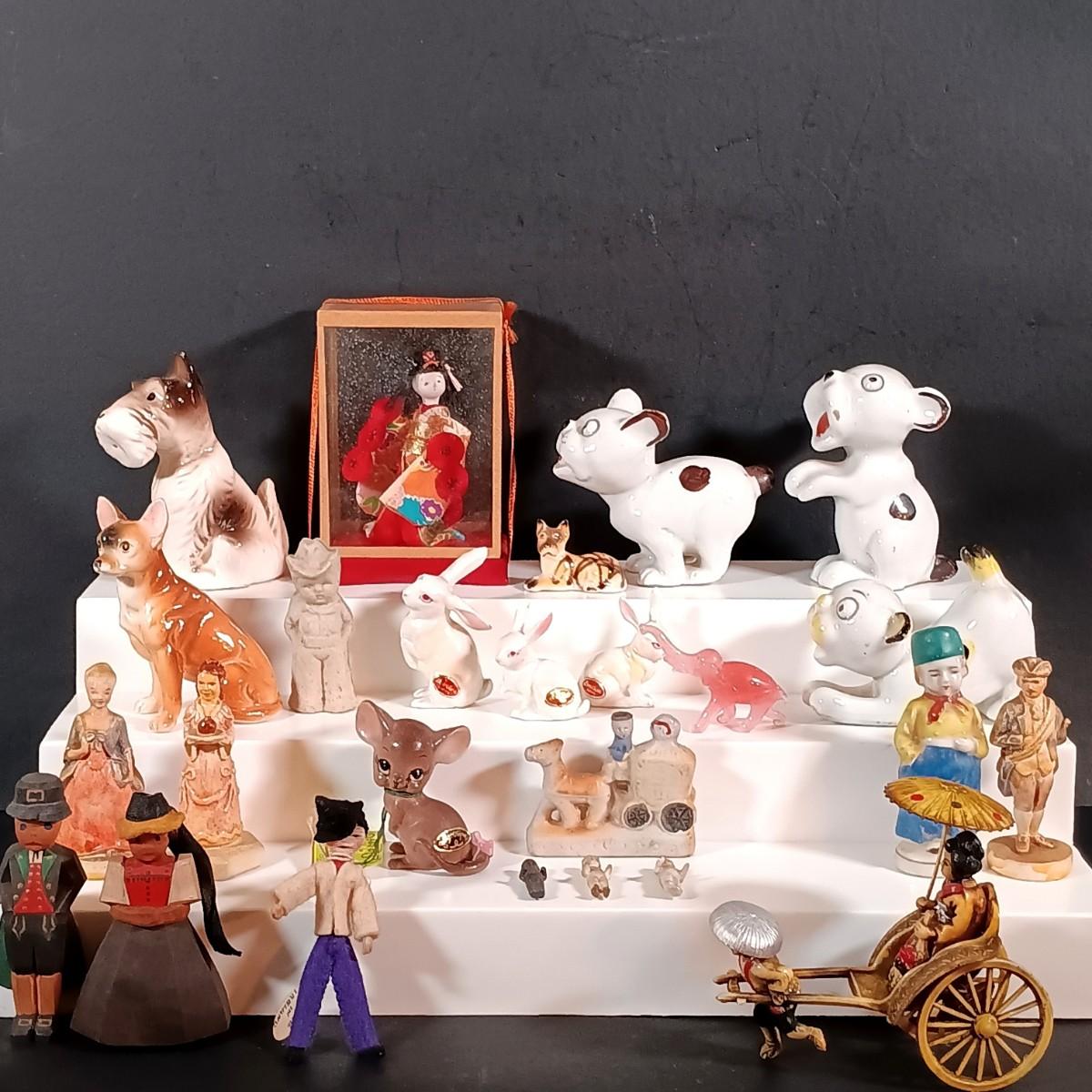 LOT 51: Miniature Tchotchke Collection- 1" Frozen Charlotte Bisque Dolls, Sebastian Mini, Celluloid Geisha Rickshaw & More
