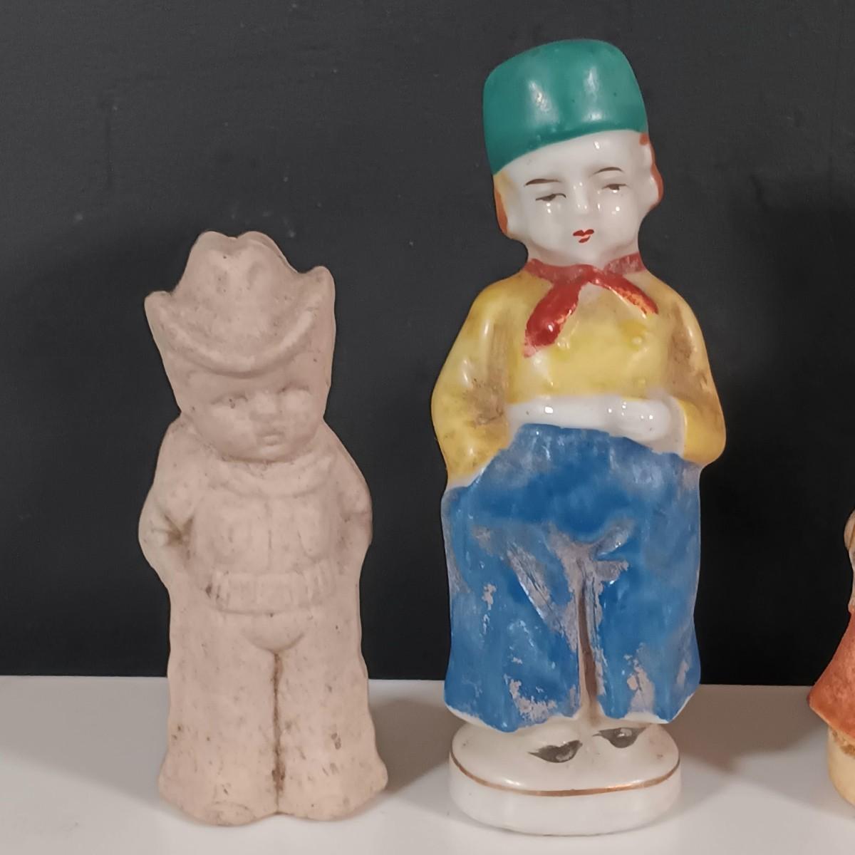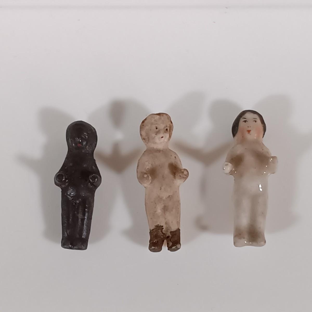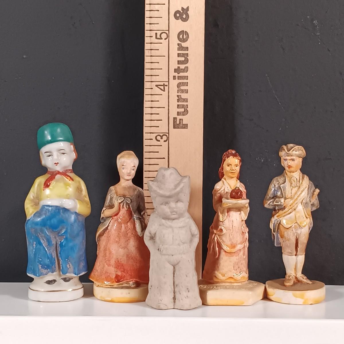 LOT 51: Miniature Tchotchke Collection- 1" Frozen Charlotte Bisque Dolls, Sebastian Mini, Celluloid Geisha Rickshaw & More
