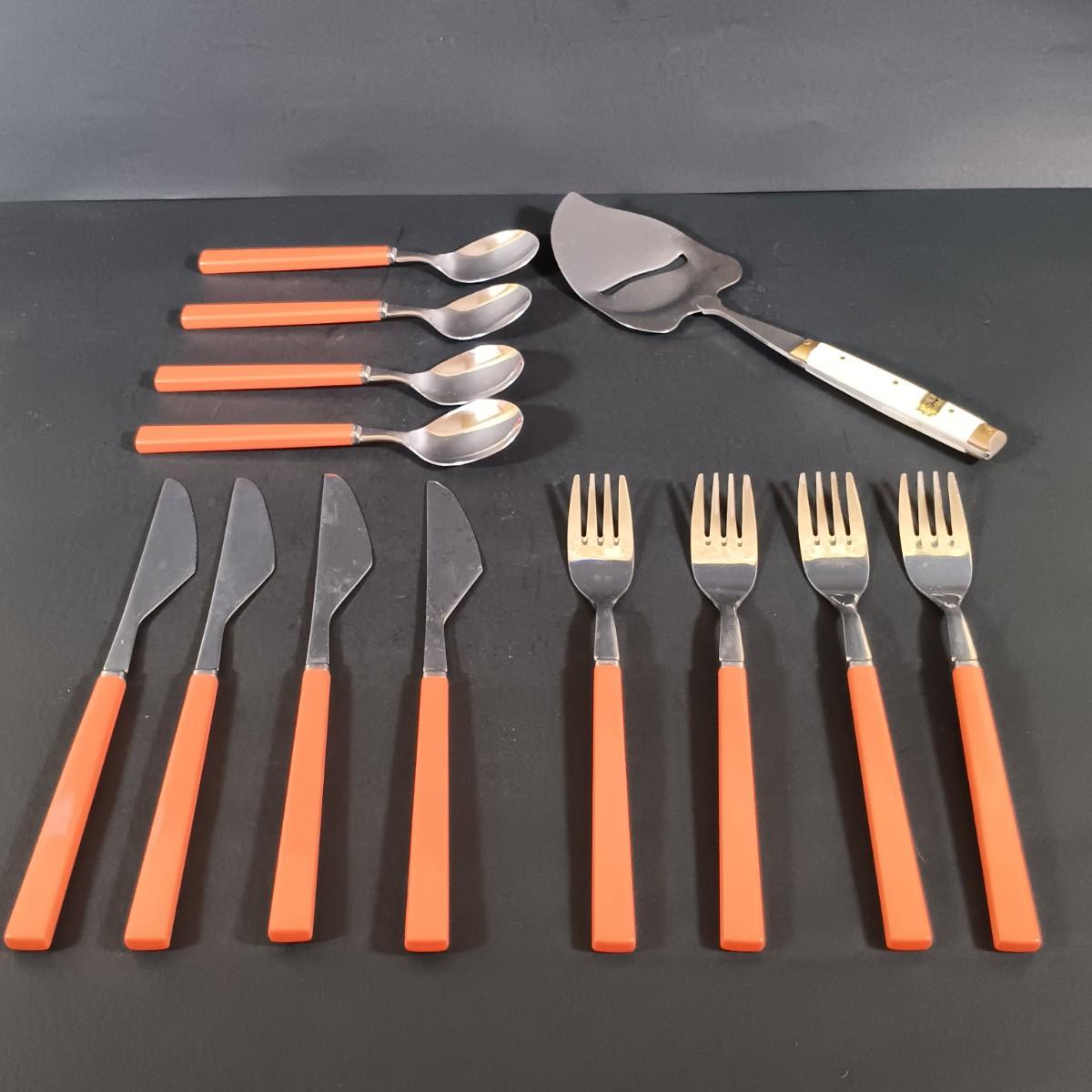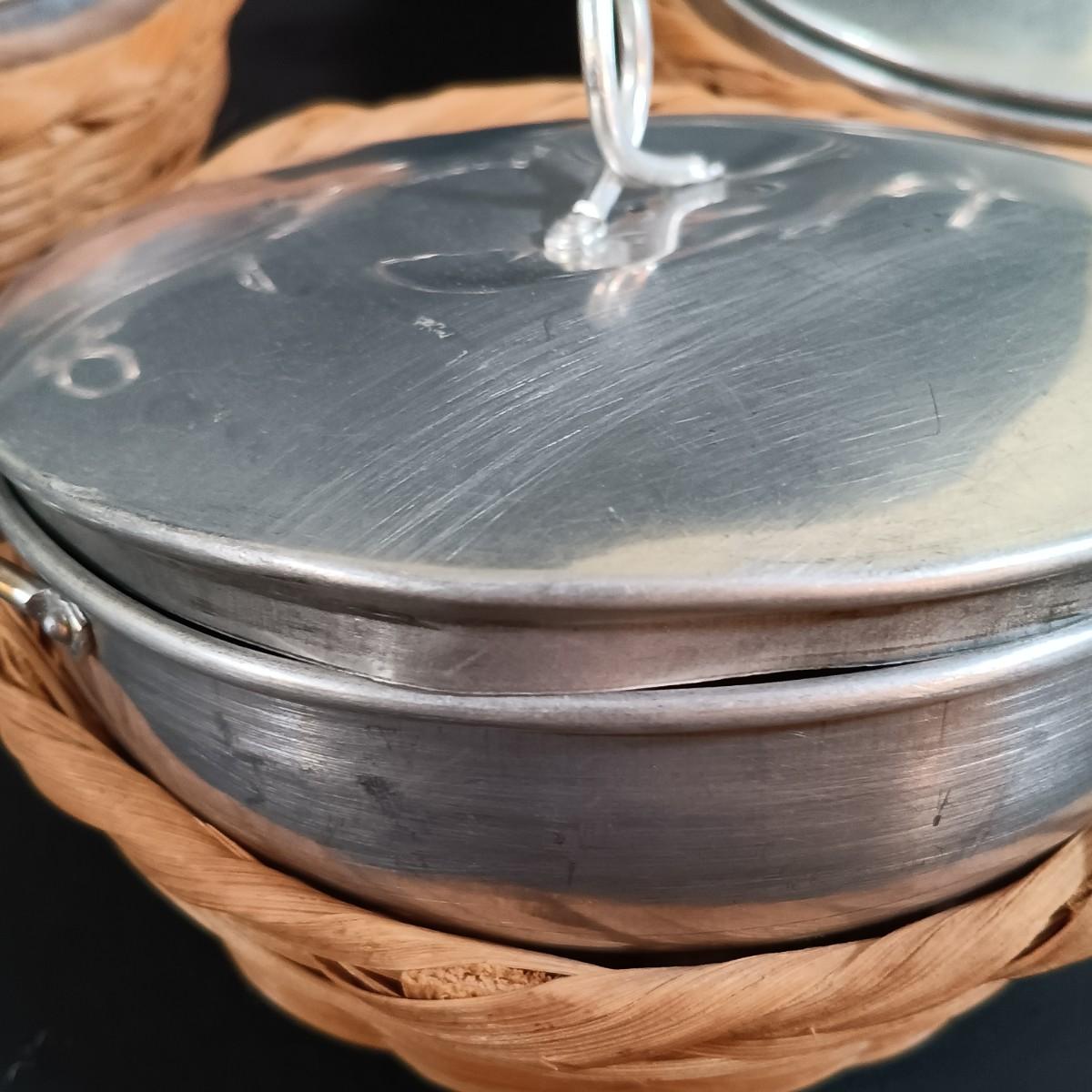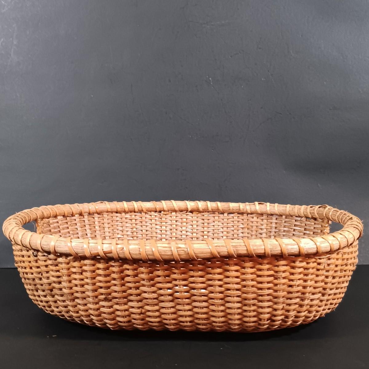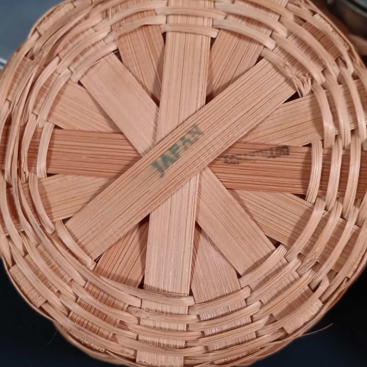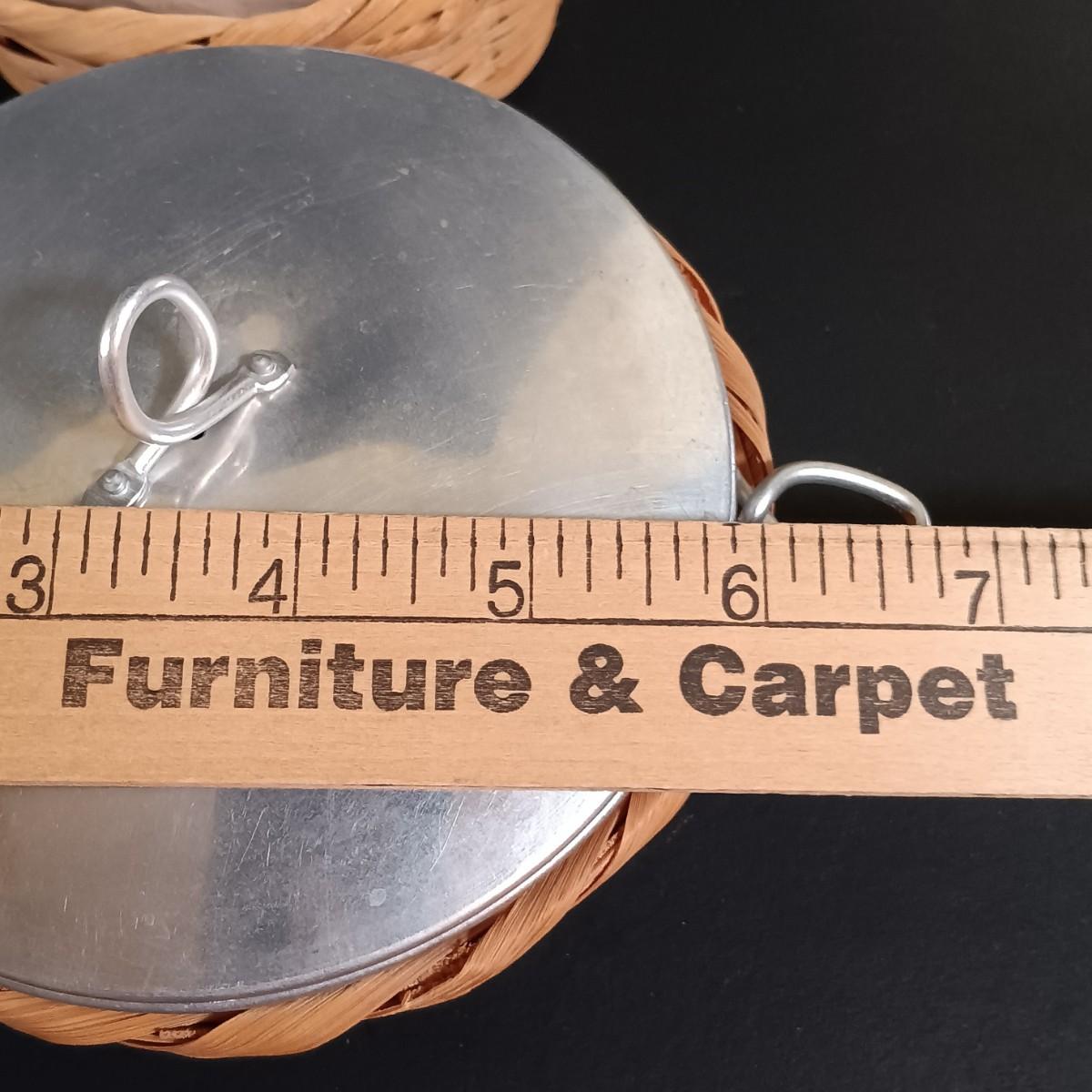 LOT 52: Nantucket Basket, Vintage Aluminum Cover Bowls w/Wicker Baskets, 12 pc. Flatware Set & Vintage Sheffield Cheese Knife