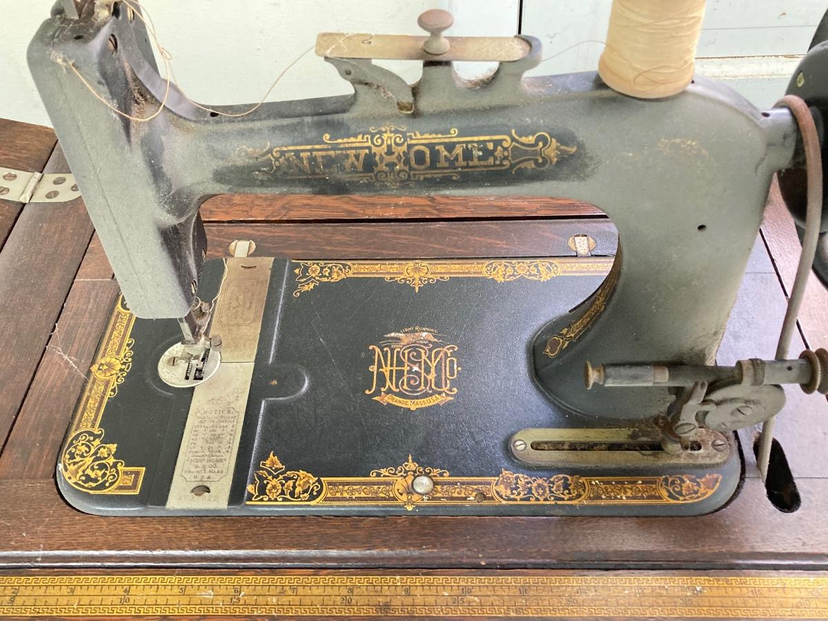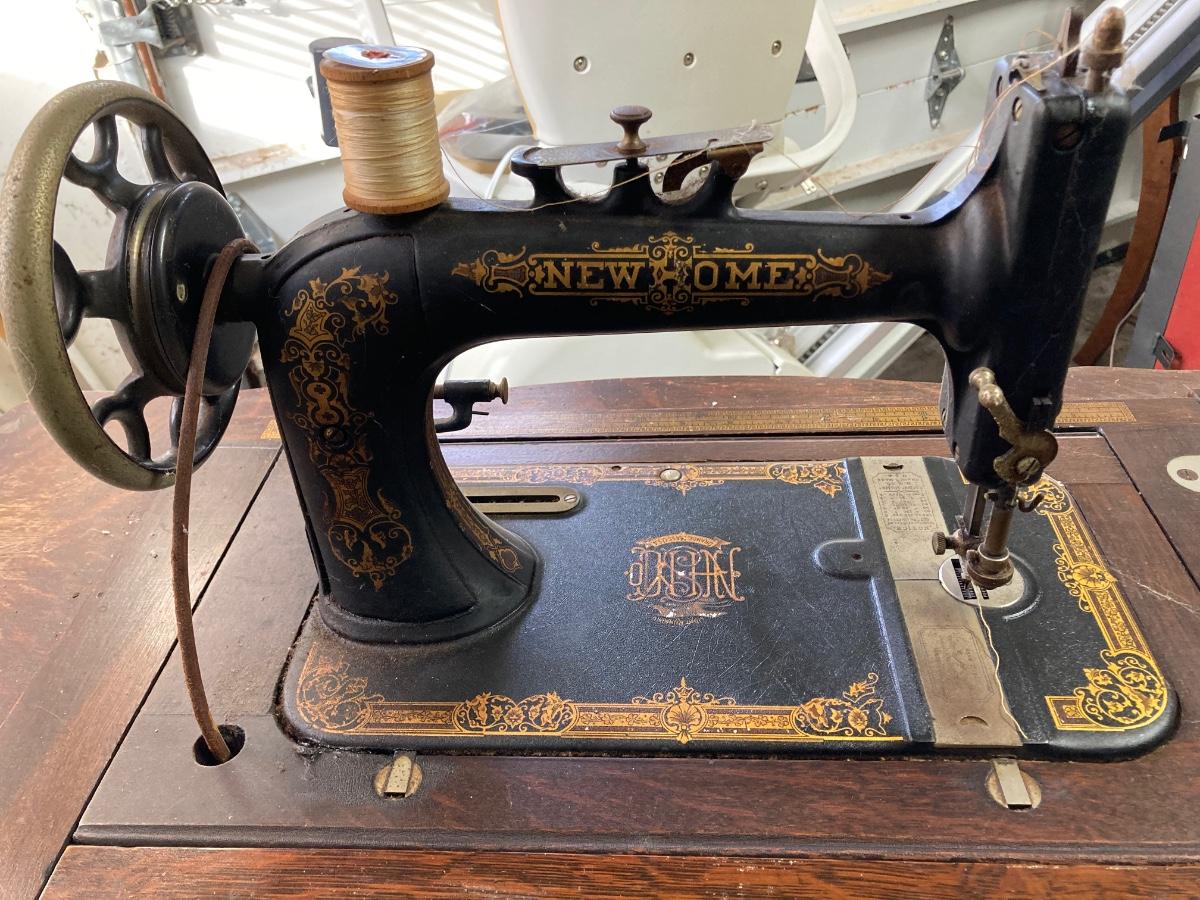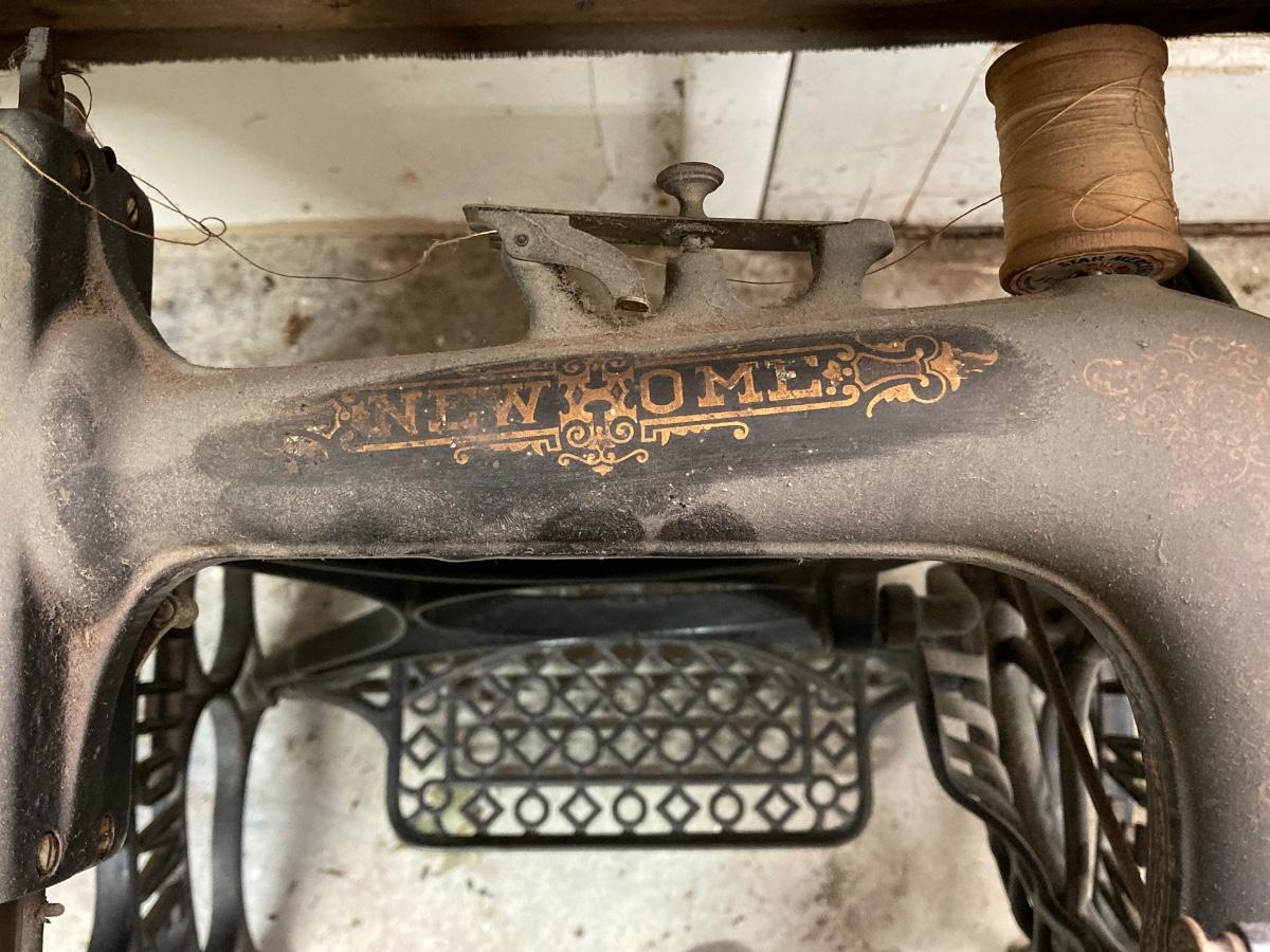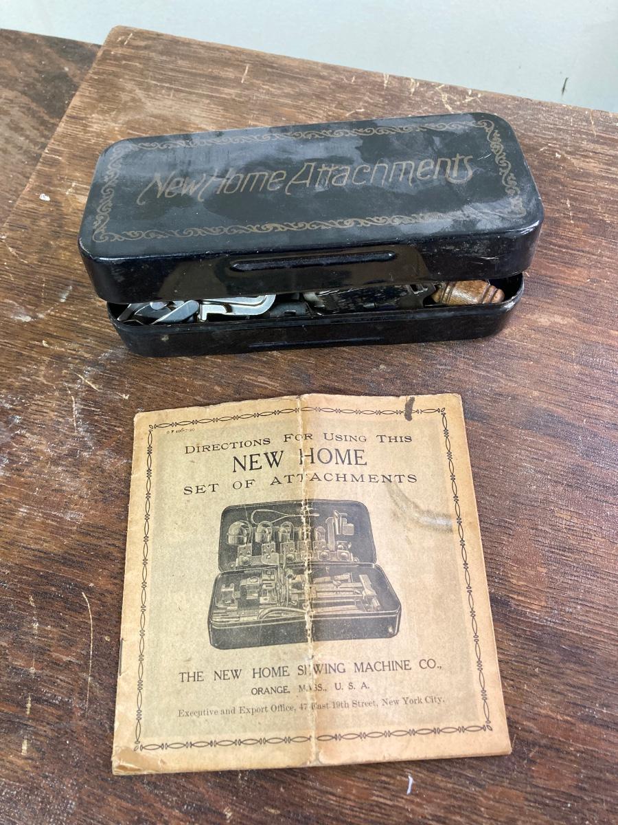 LOT 56: Antique / Vintage New Home Sewing Machine, Contents, Parts and Accessories