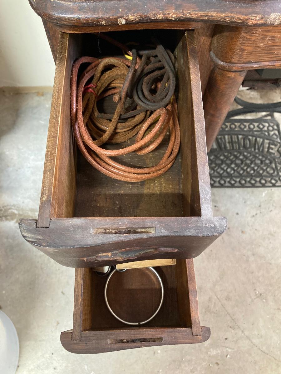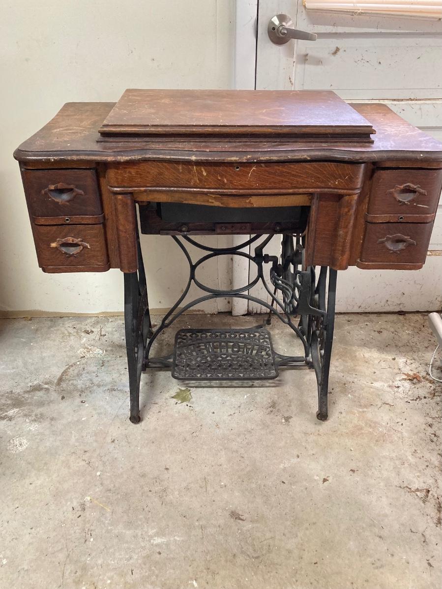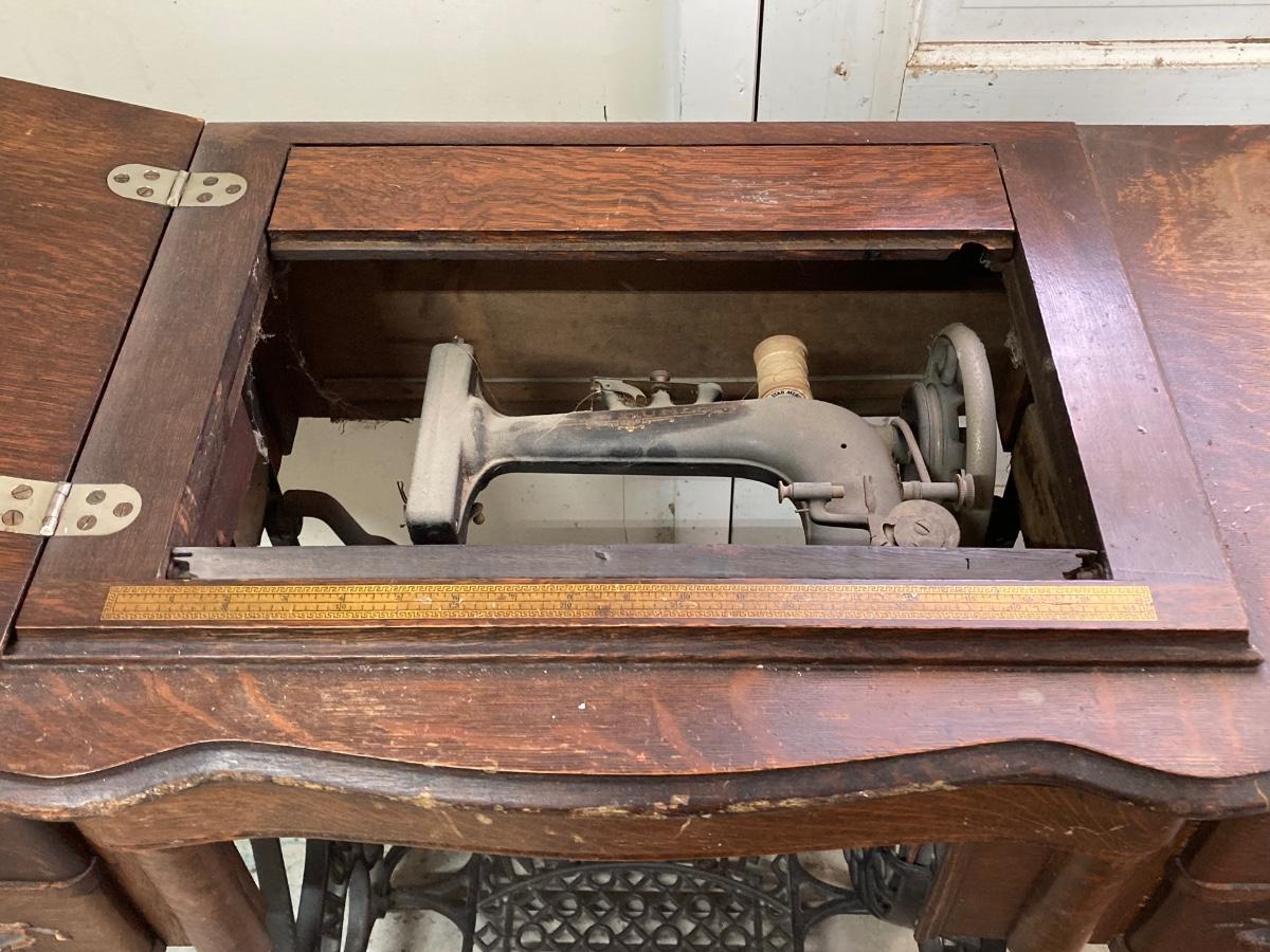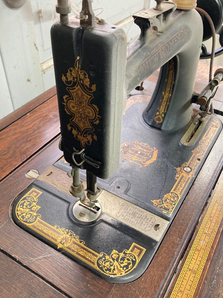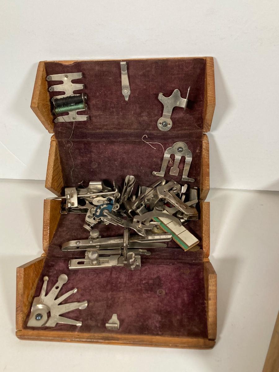 LOT 56: Antique / Vintage New Home Sewing Machine, Contents, Parts and Accessories