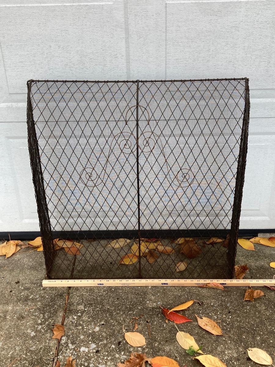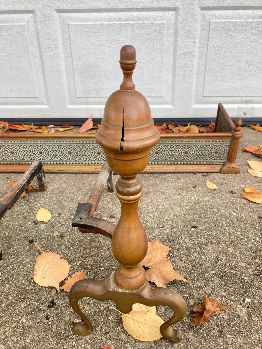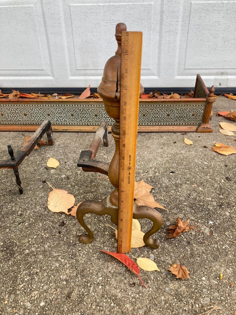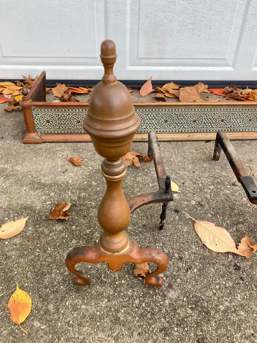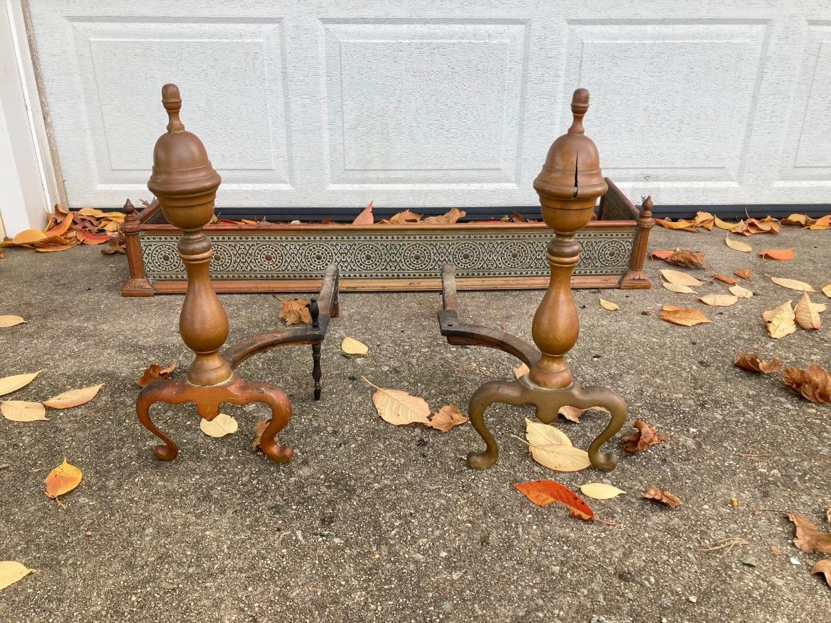 LOT 58: Vintage Fireplace Accessories - Andirons, Fire Fender and Screen