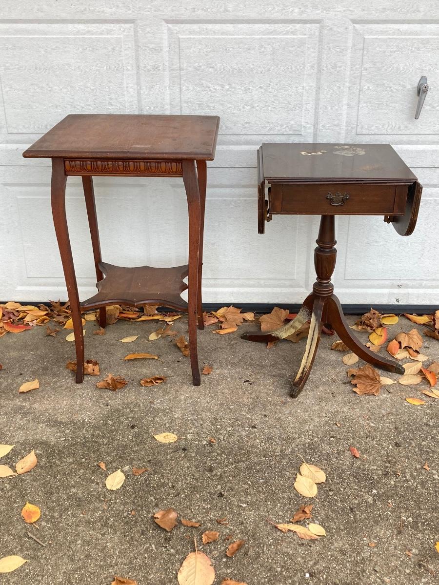 LOT 61: Two Wood Accent Tables - Butler Drop Leaf and More