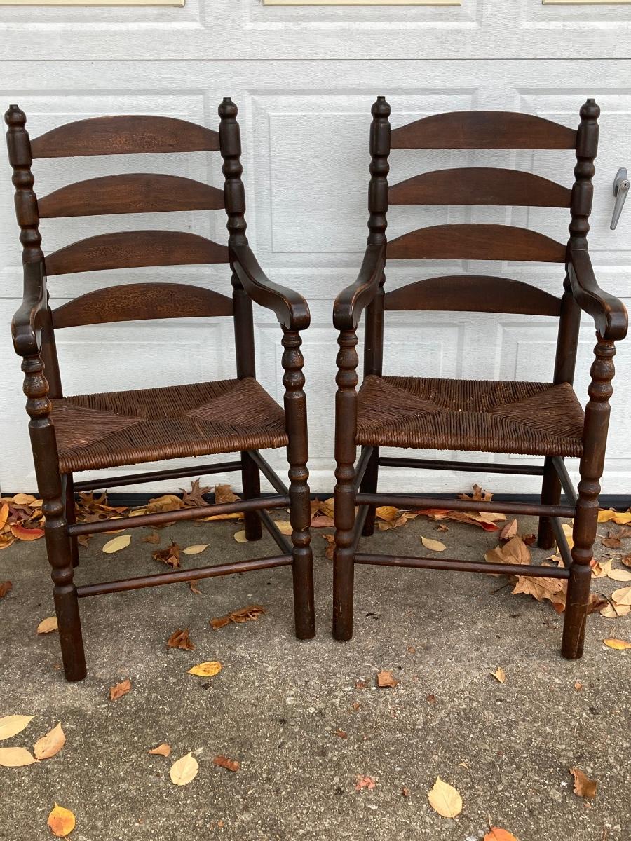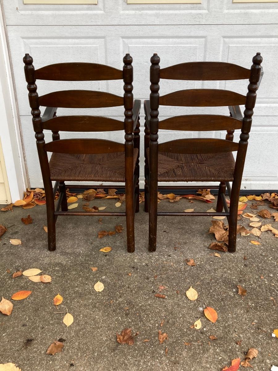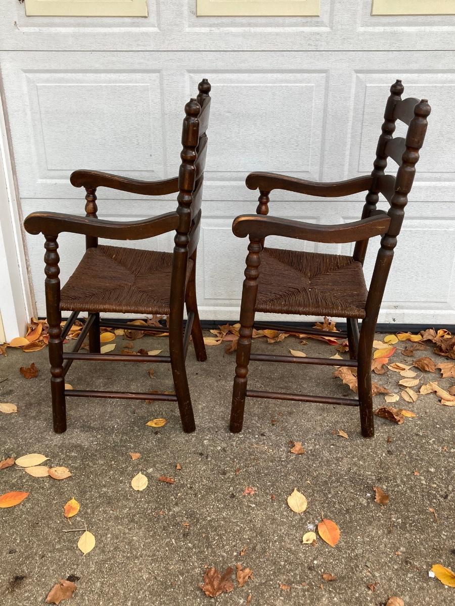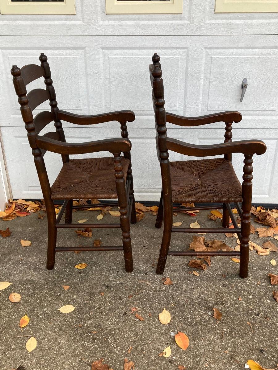 LOT 62: Pair of Vintage Ladder Back Rush Seat Chairs