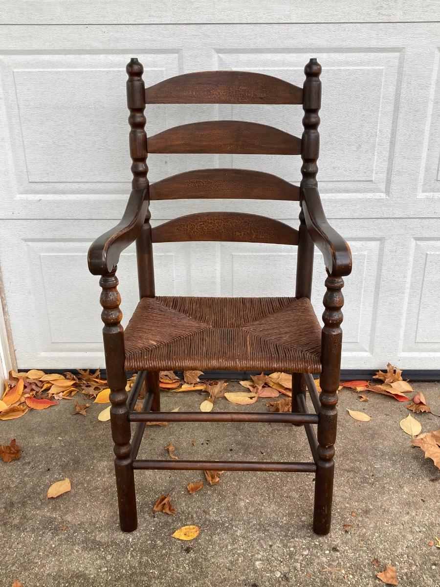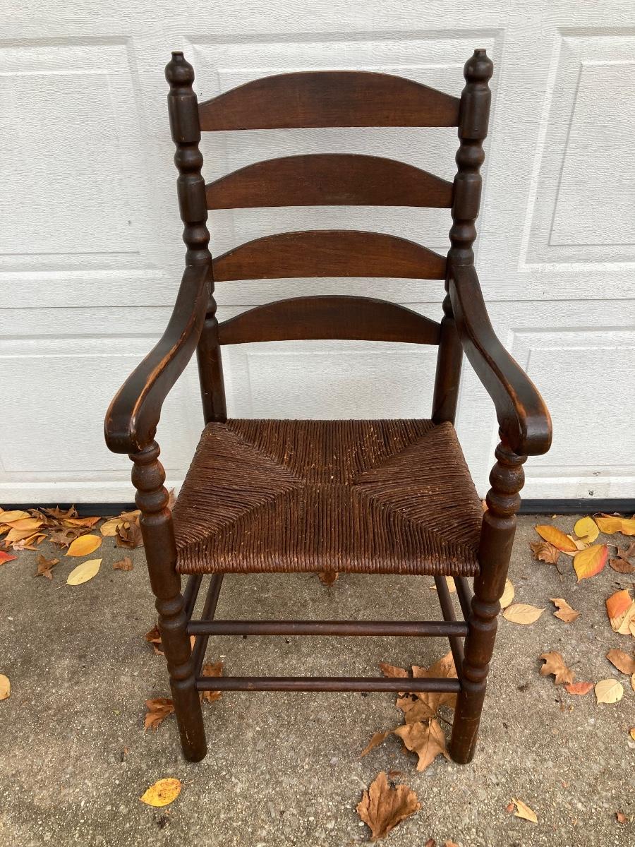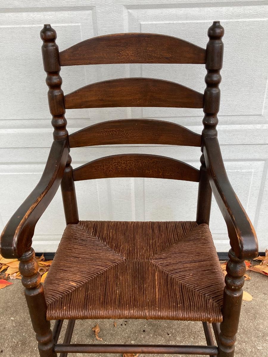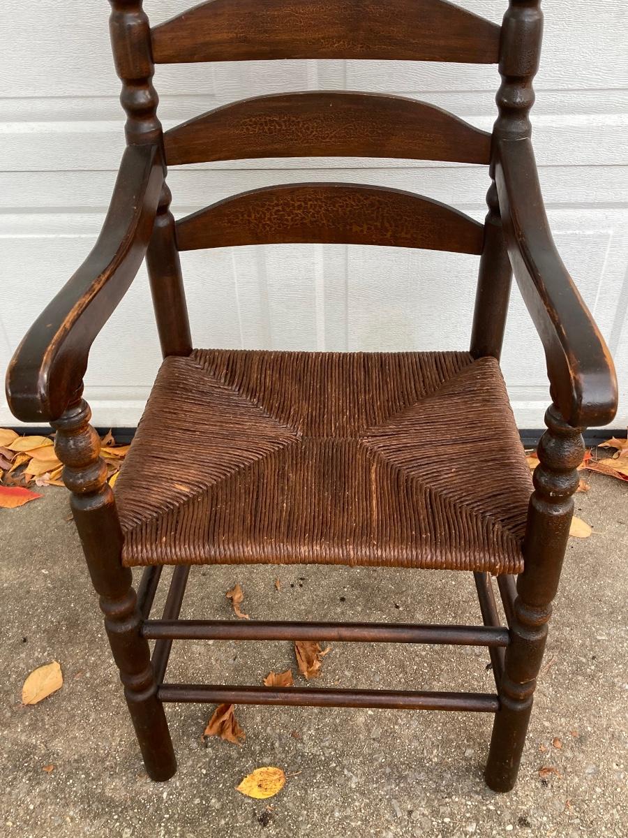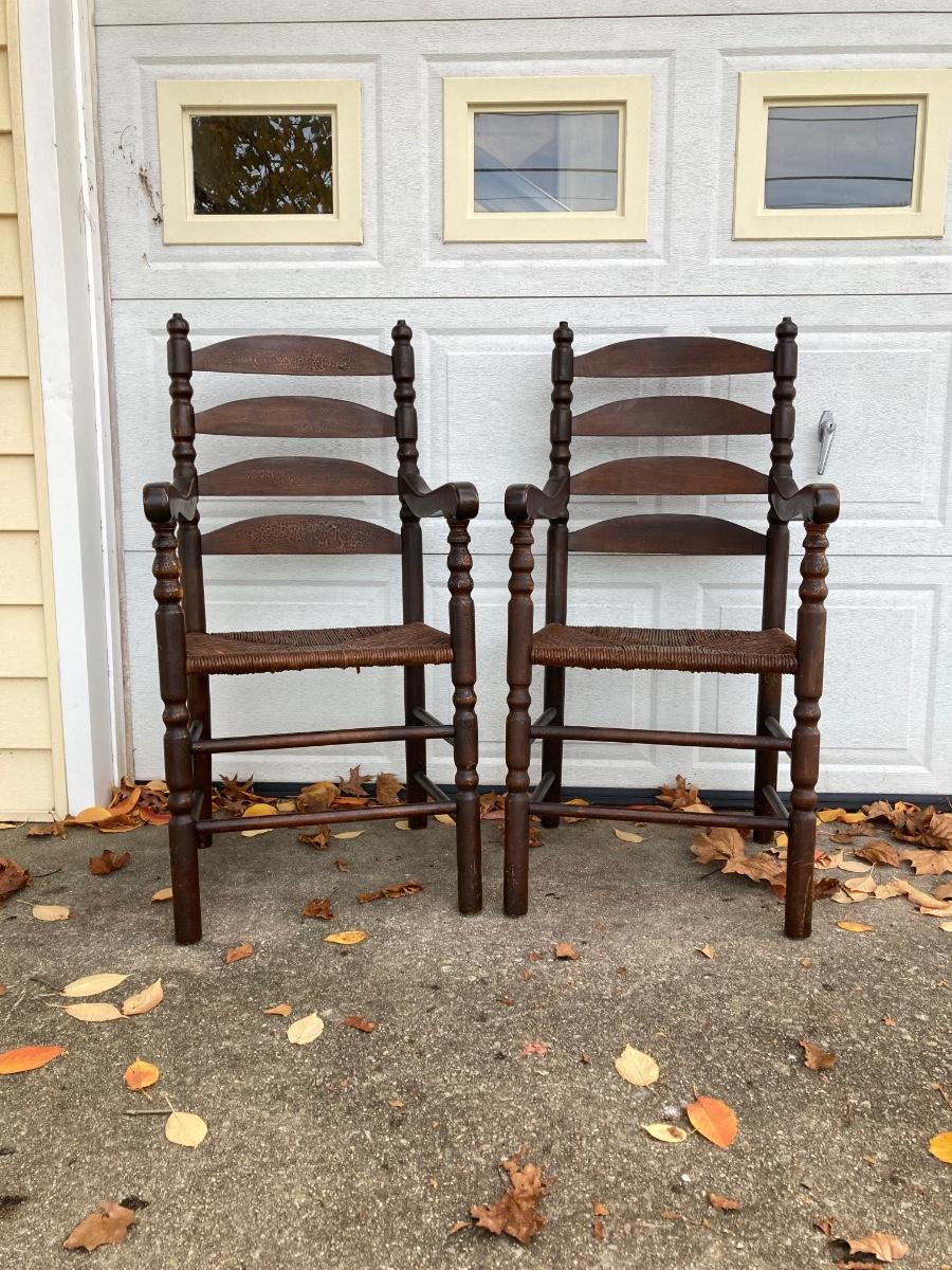 LOT 62: Pair of Vintage Ladder Back Rush Seat Chairs