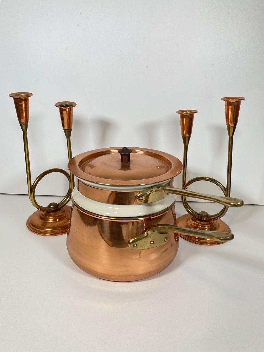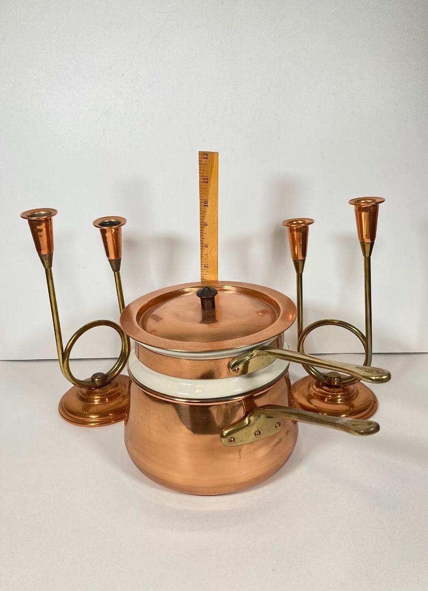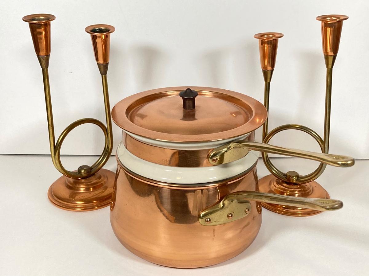 LOT 69: Metalutil Portugal Copper Cookware and Coppercraft Guild Candlestick Holders