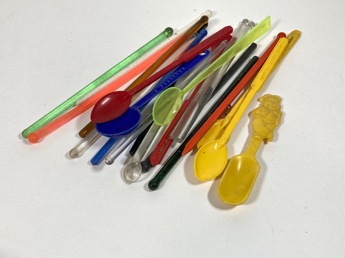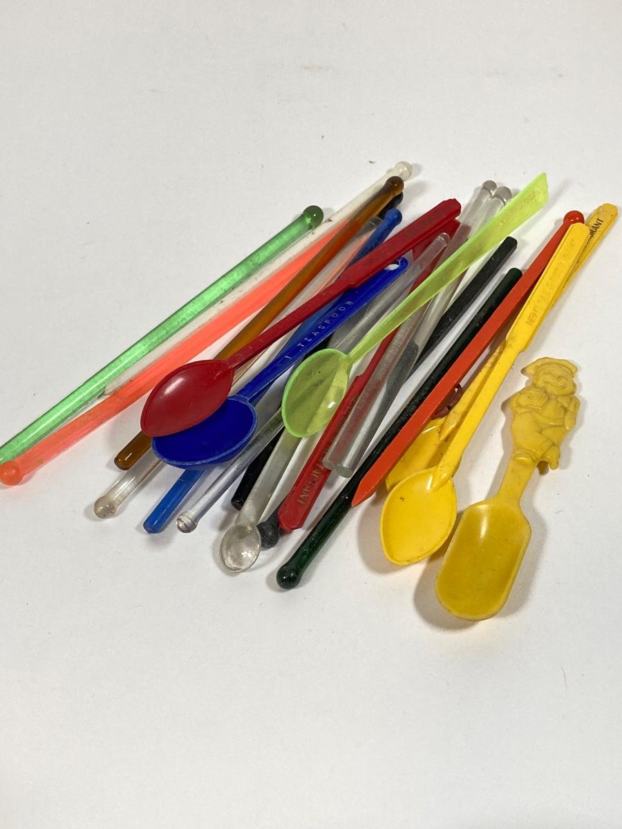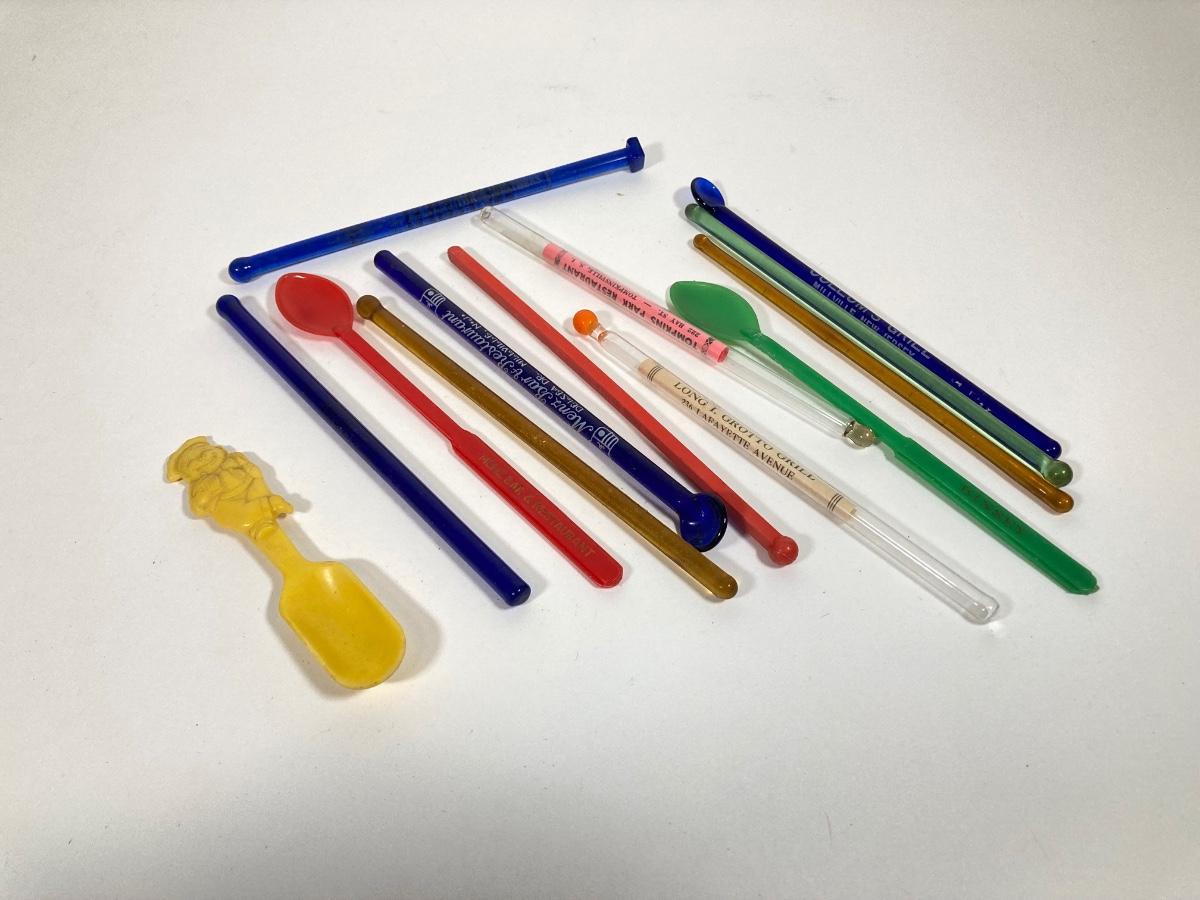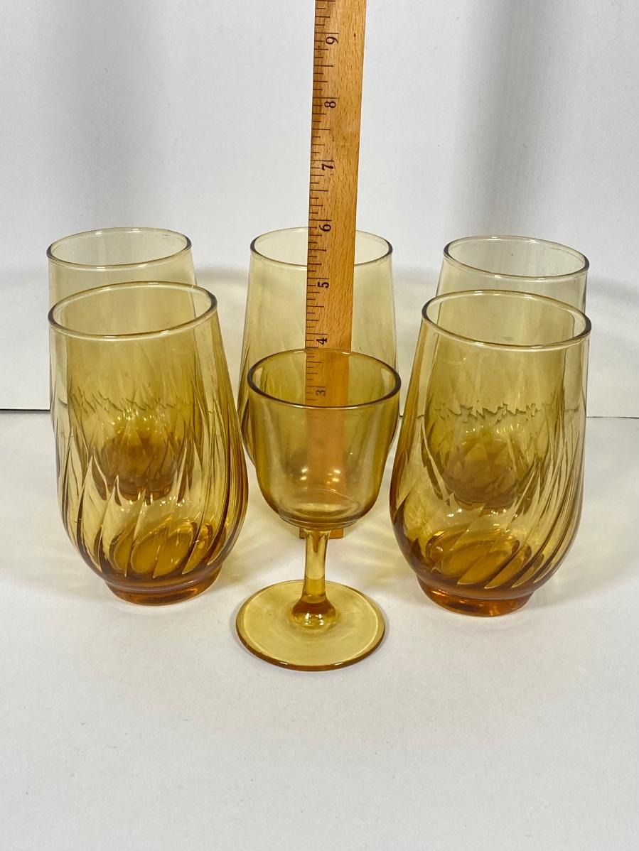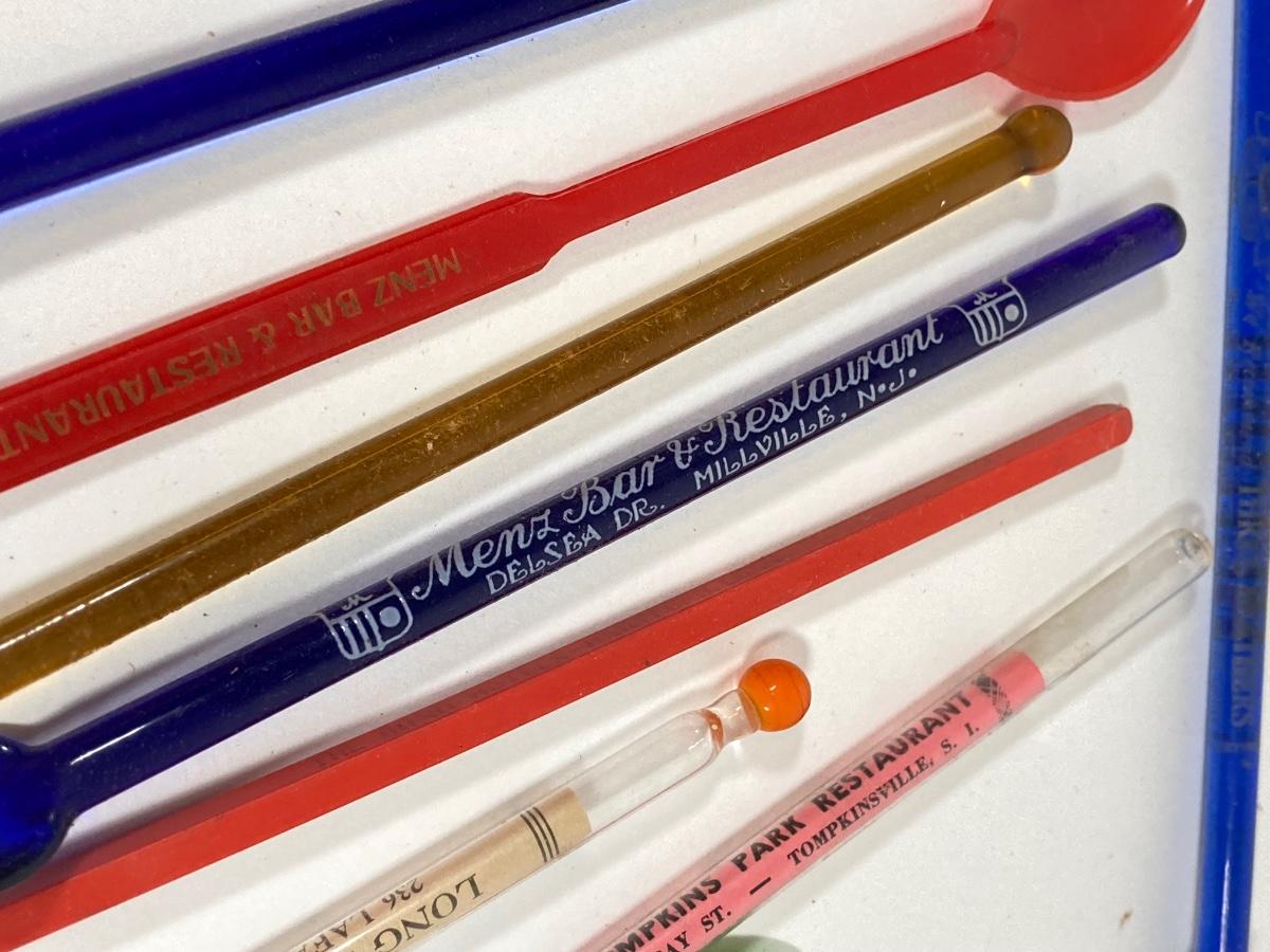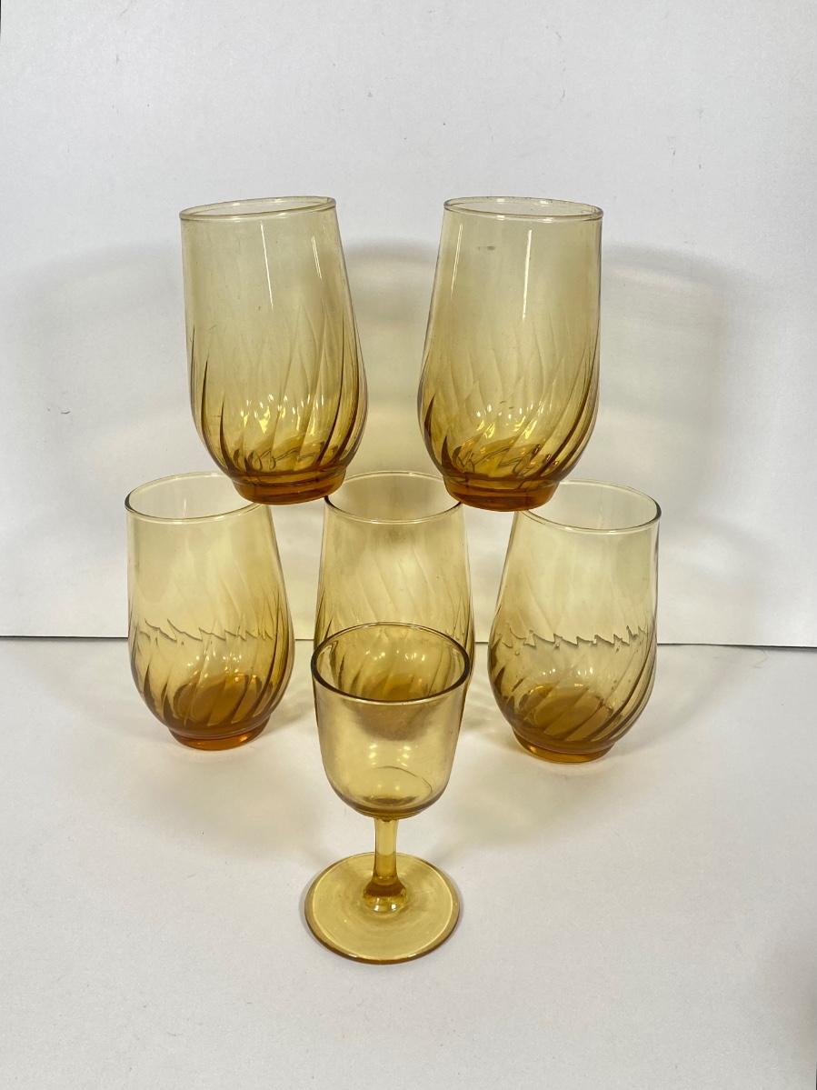 LOT 70: Collection of Vintage Glassware and More - Zodiac, Gold Tone, Amber with Glass / Plastic Stirrers and Carved Bottle Stopper