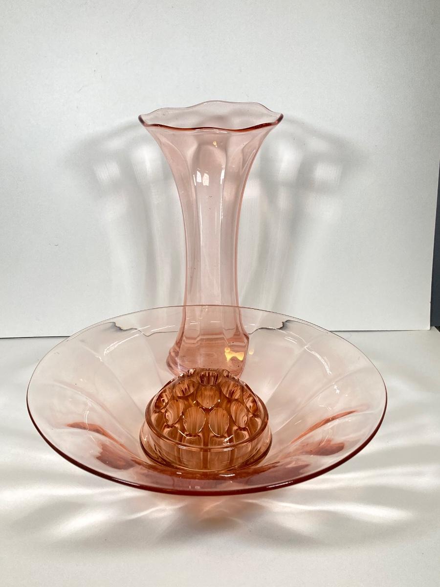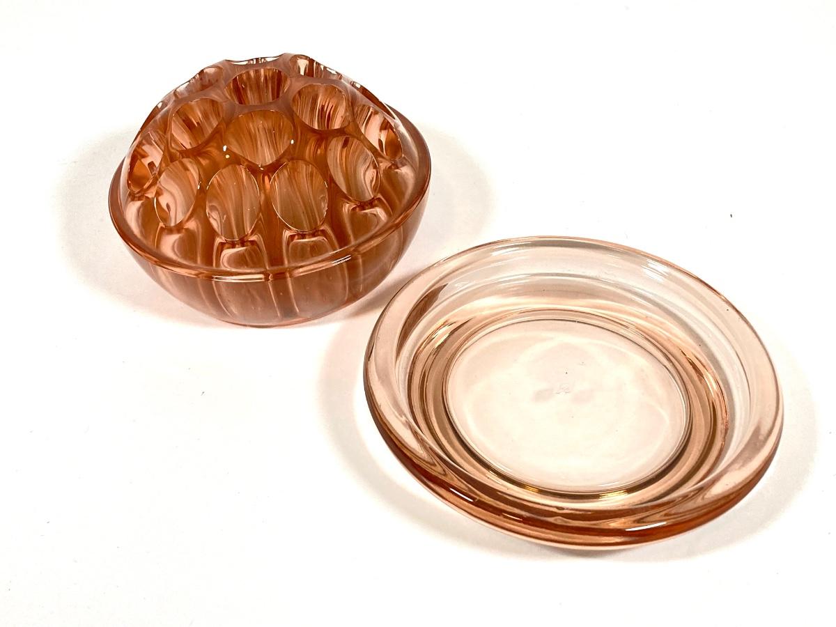 LOT 73: Collection of Pink Glass - Vase, Bowl and Flower Frog