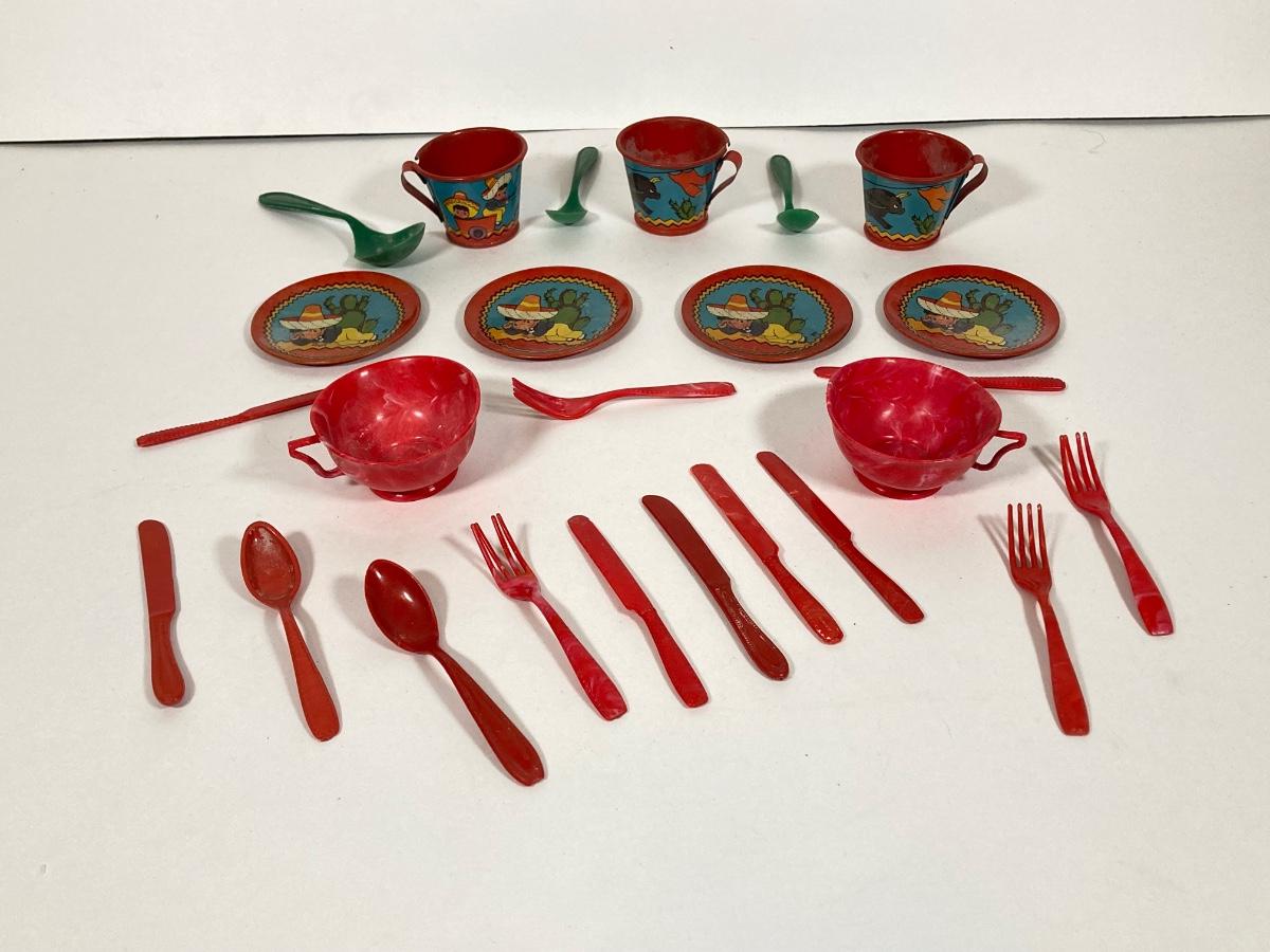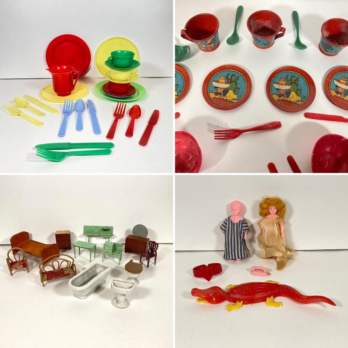 LOT 80: Vintage Children's Collection - Dishes, Toys, Dolls and Dollhouse Furniture