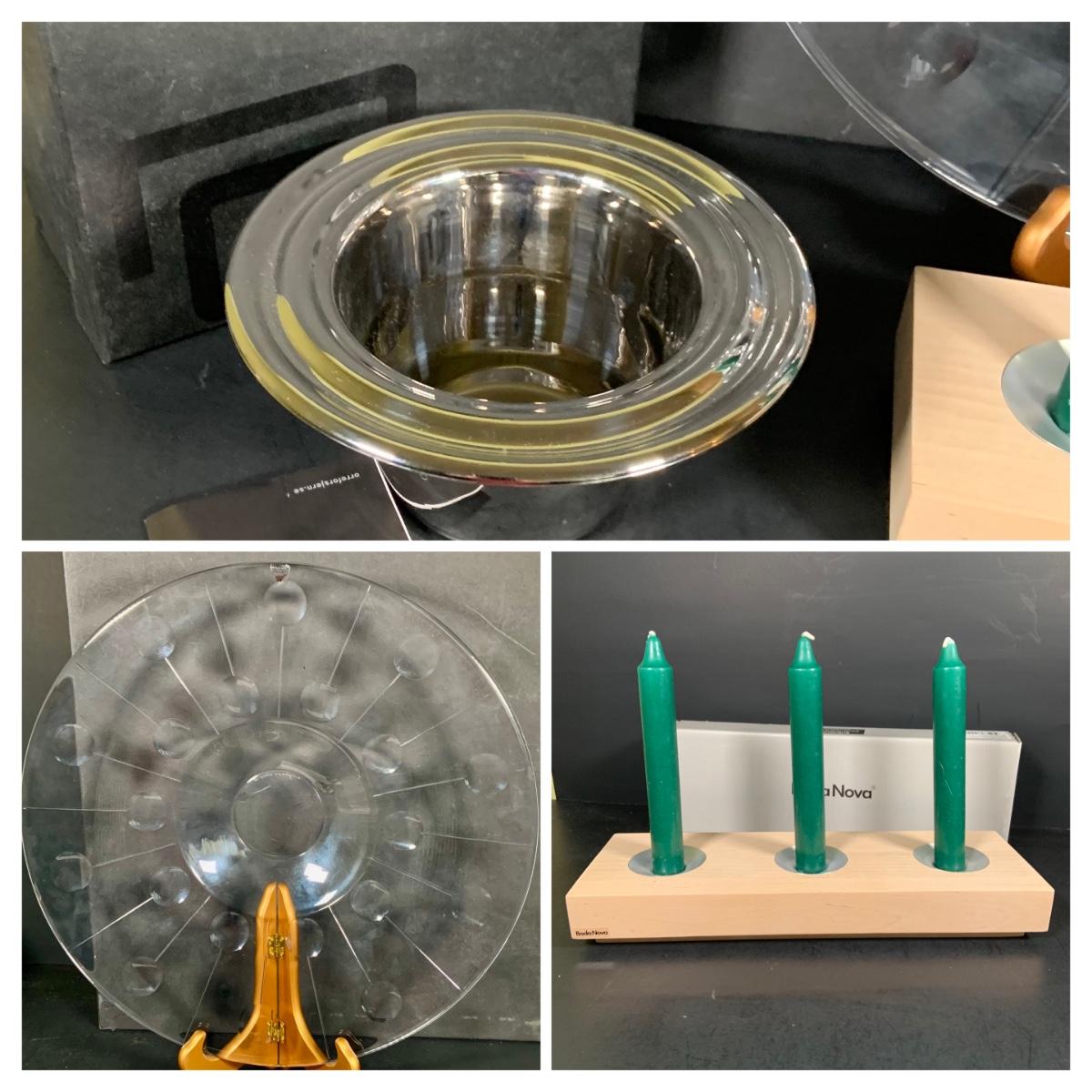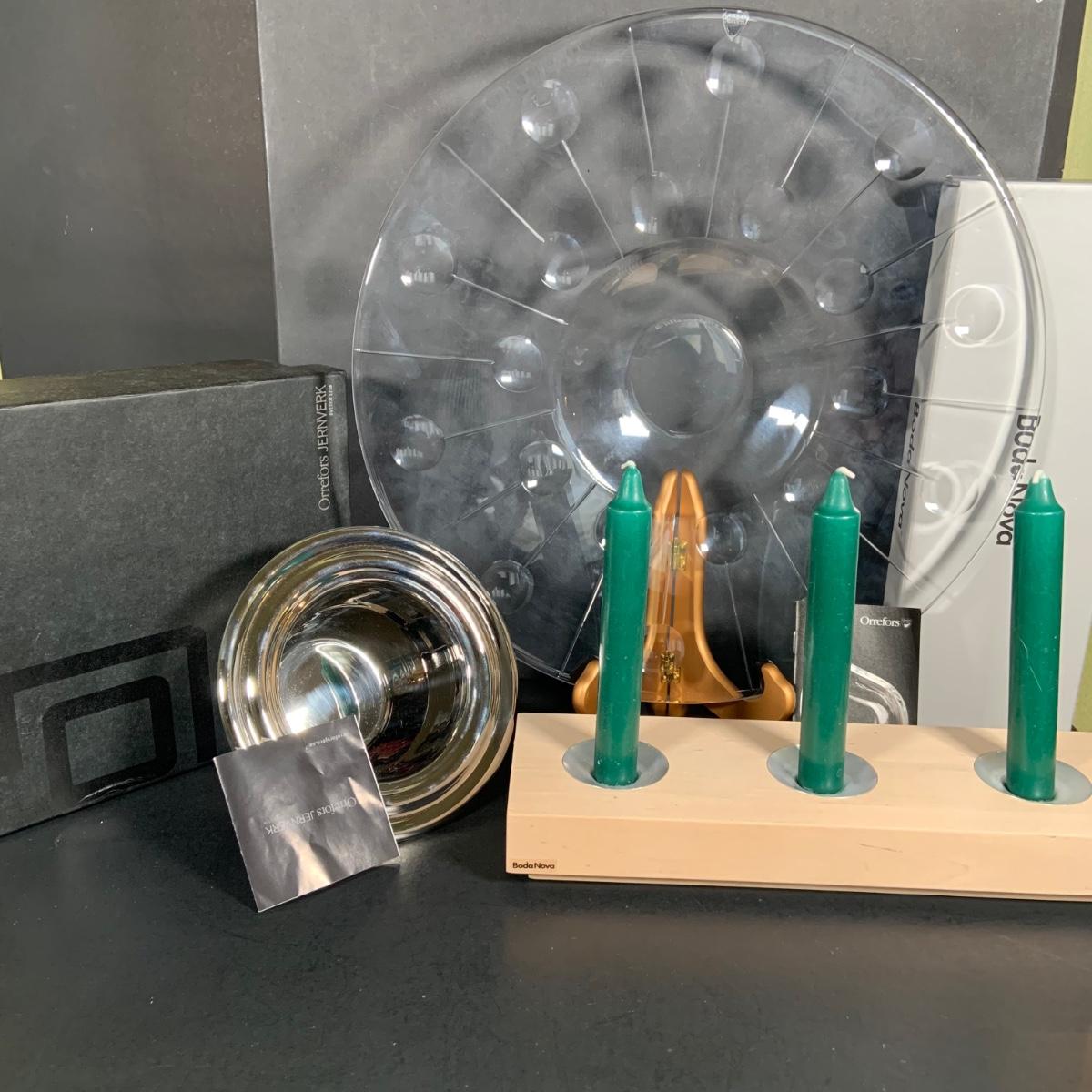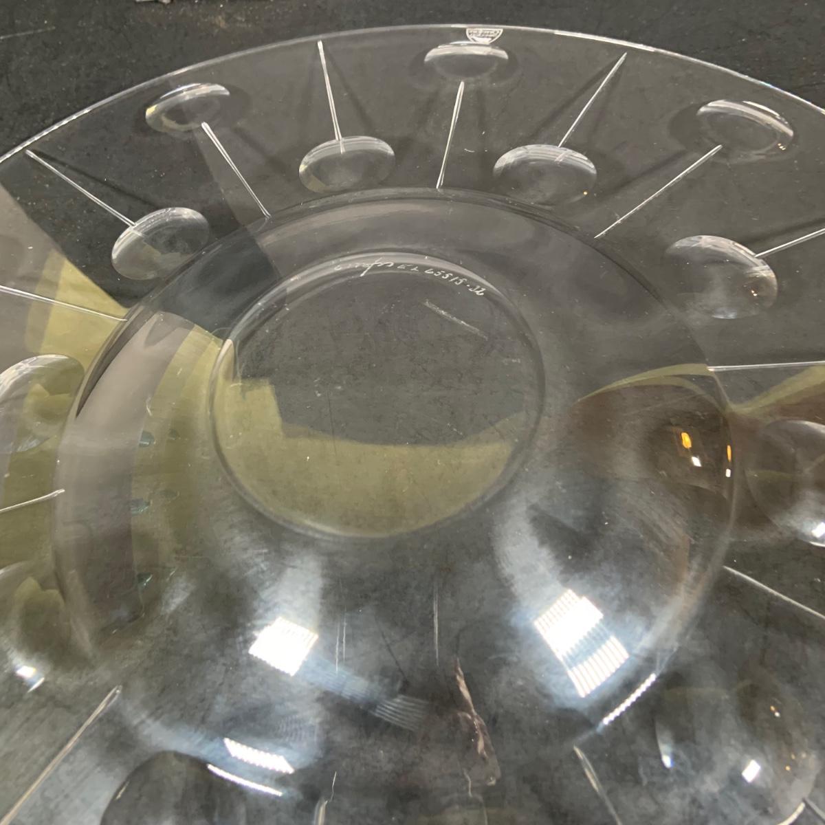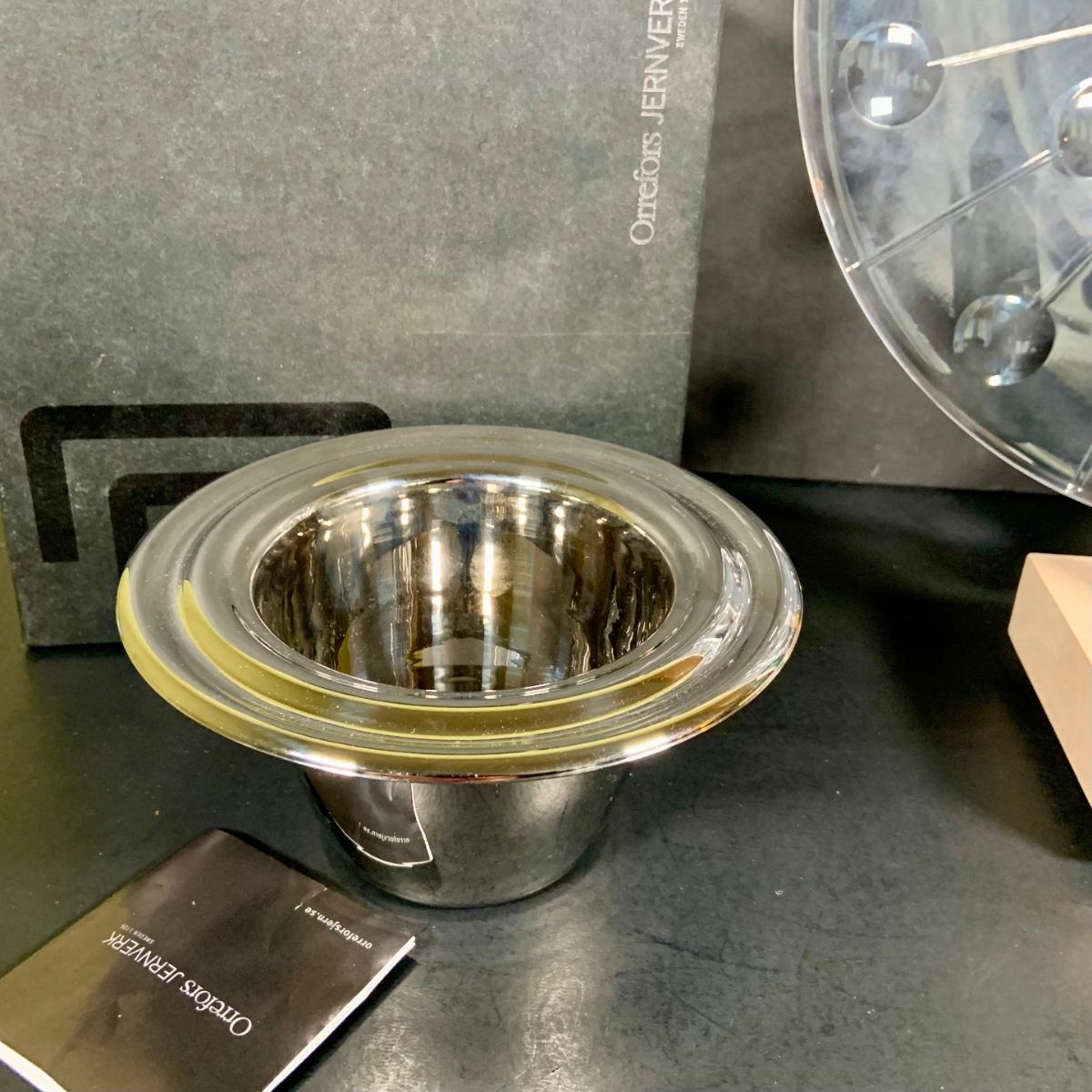 LOT:97: Orrefors Jernverk Polished Steel Bowl Designed by Jan Johansson, Orrefors Crystal Platter Designed by Erika Lagerbielke and a Doda Nova Candle Holder