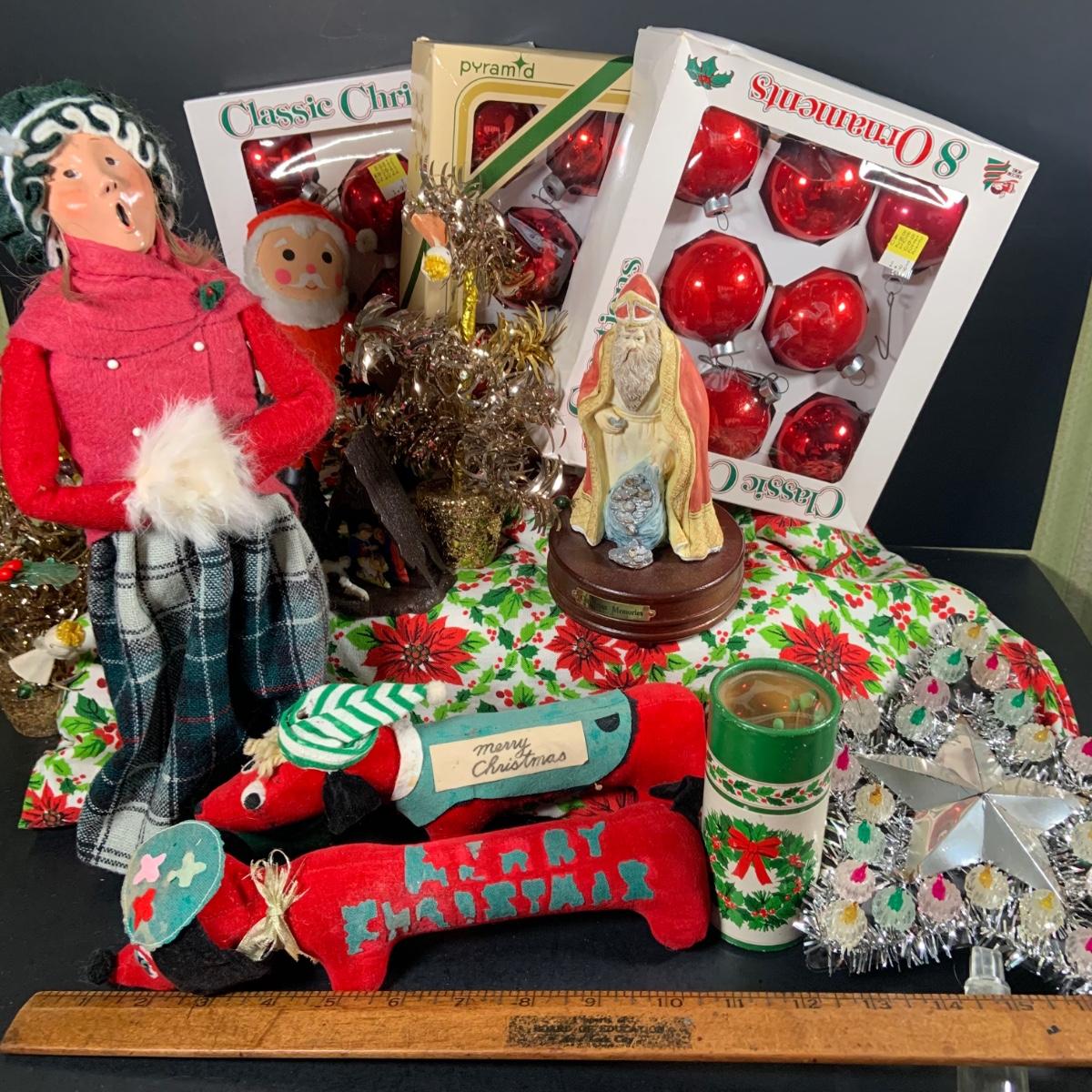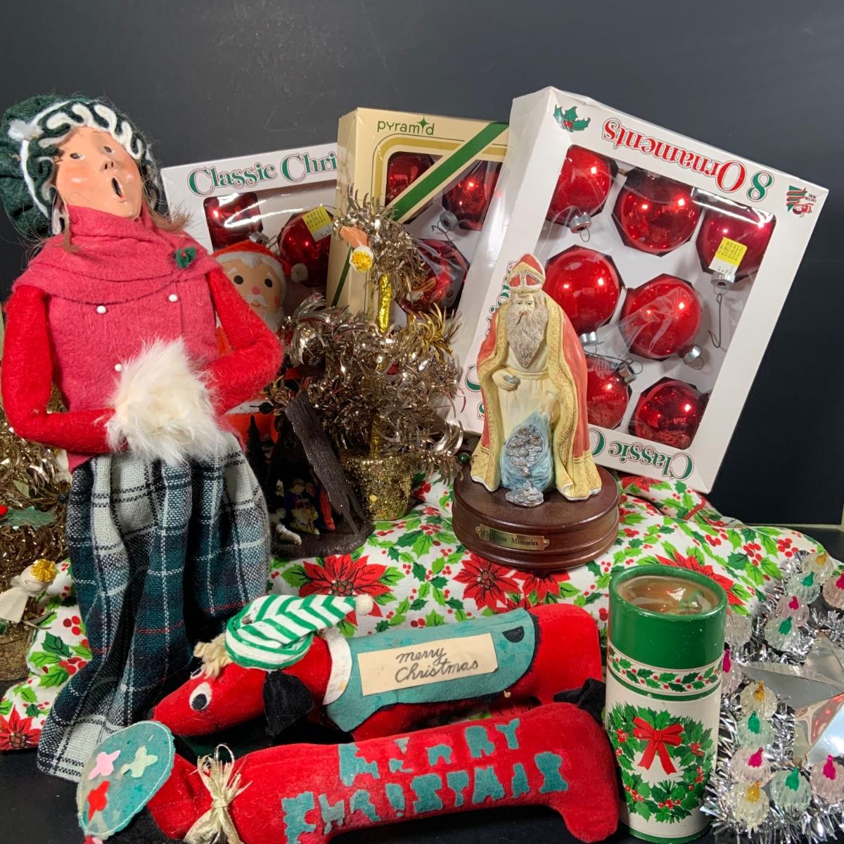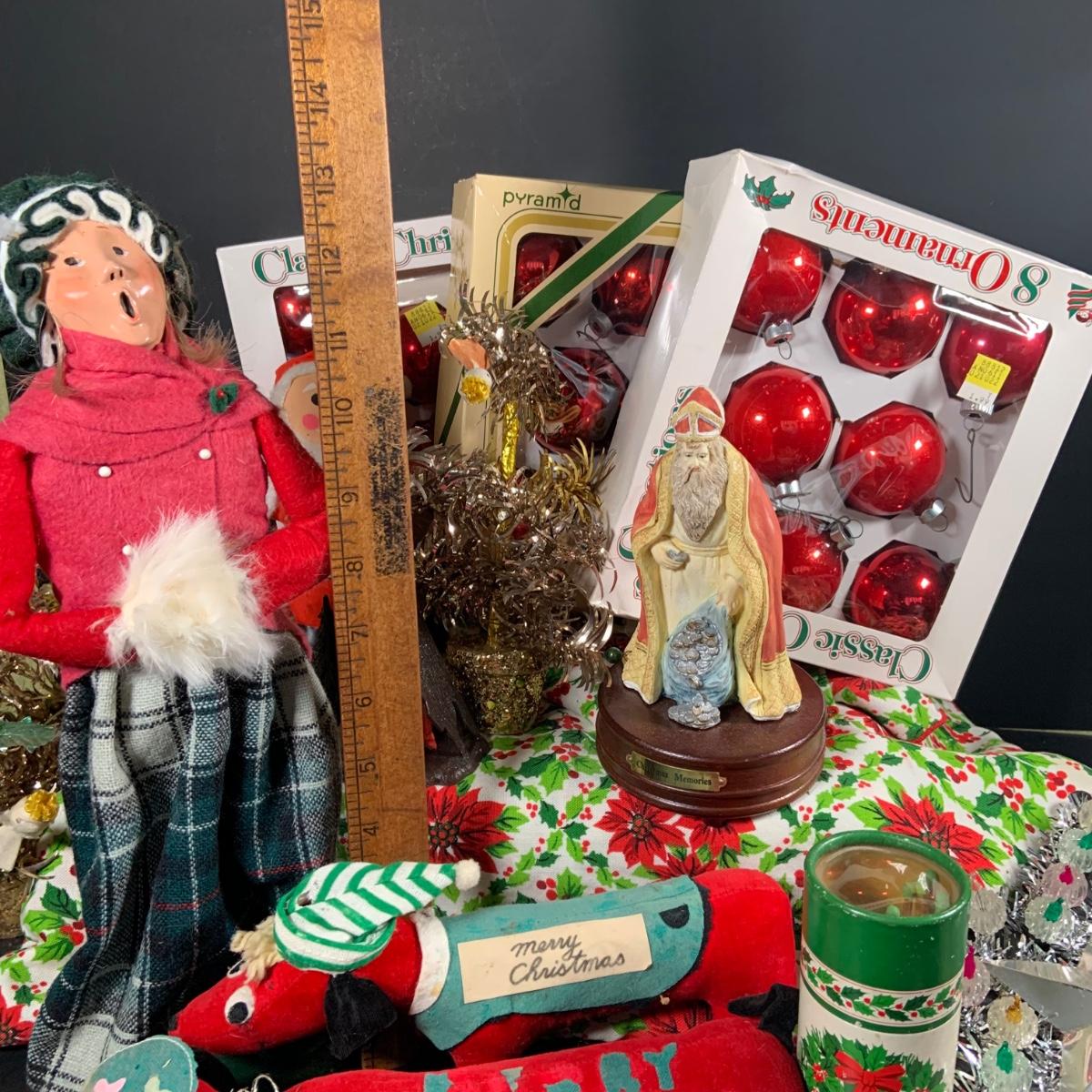 LOT:98: Vintage Christmas Decorations Including a Byers Choice Caroler and Much More