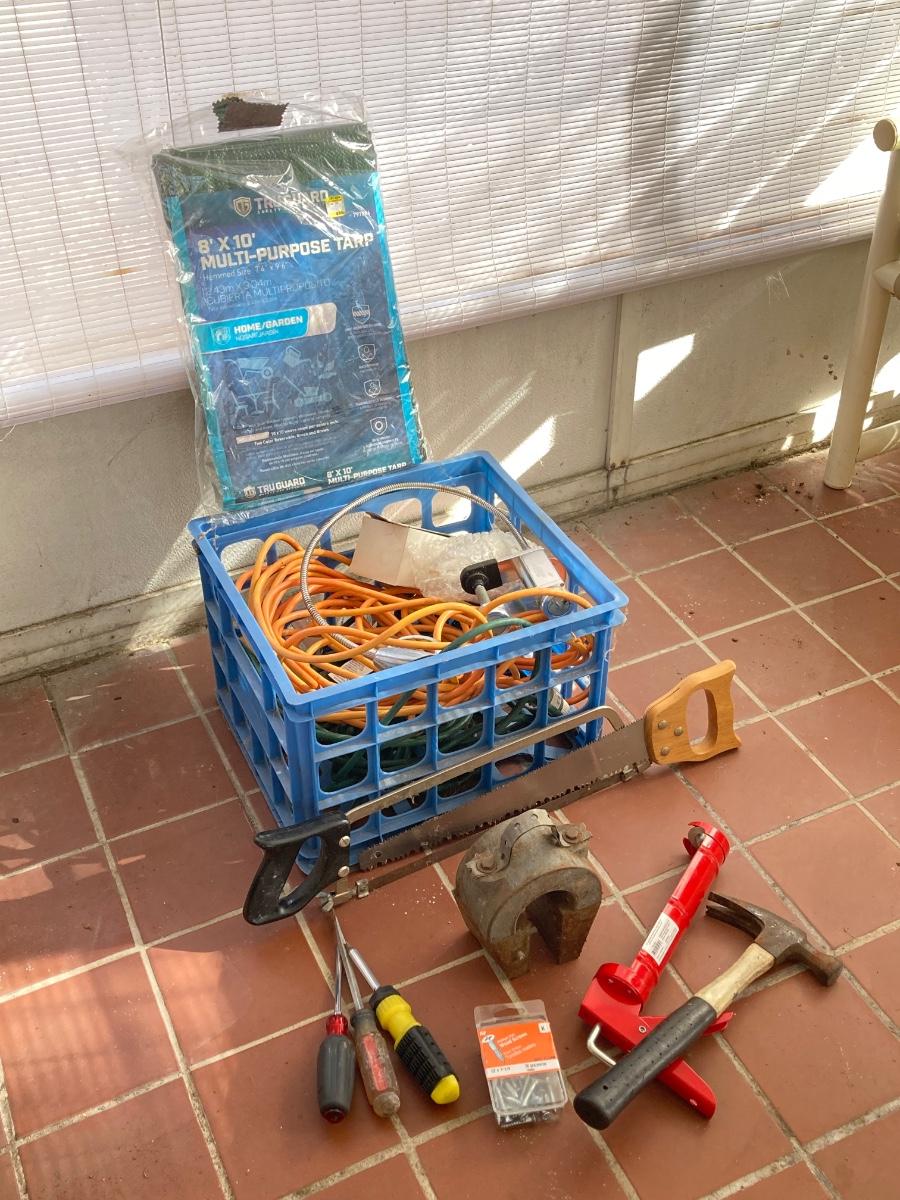LOT 118: Large Magnet, Tools, Power / Extension Cords, Tarp and More