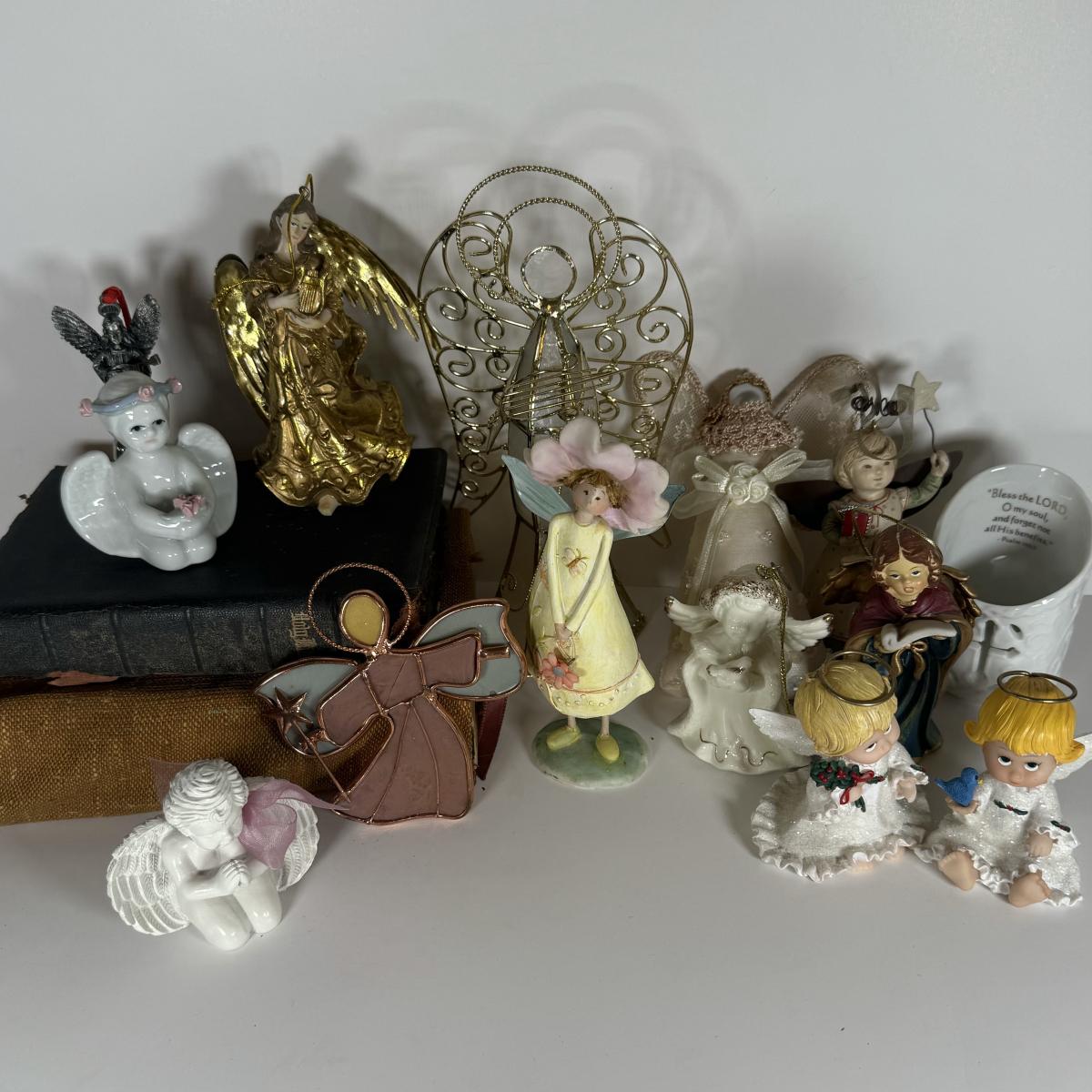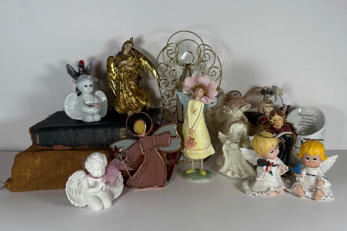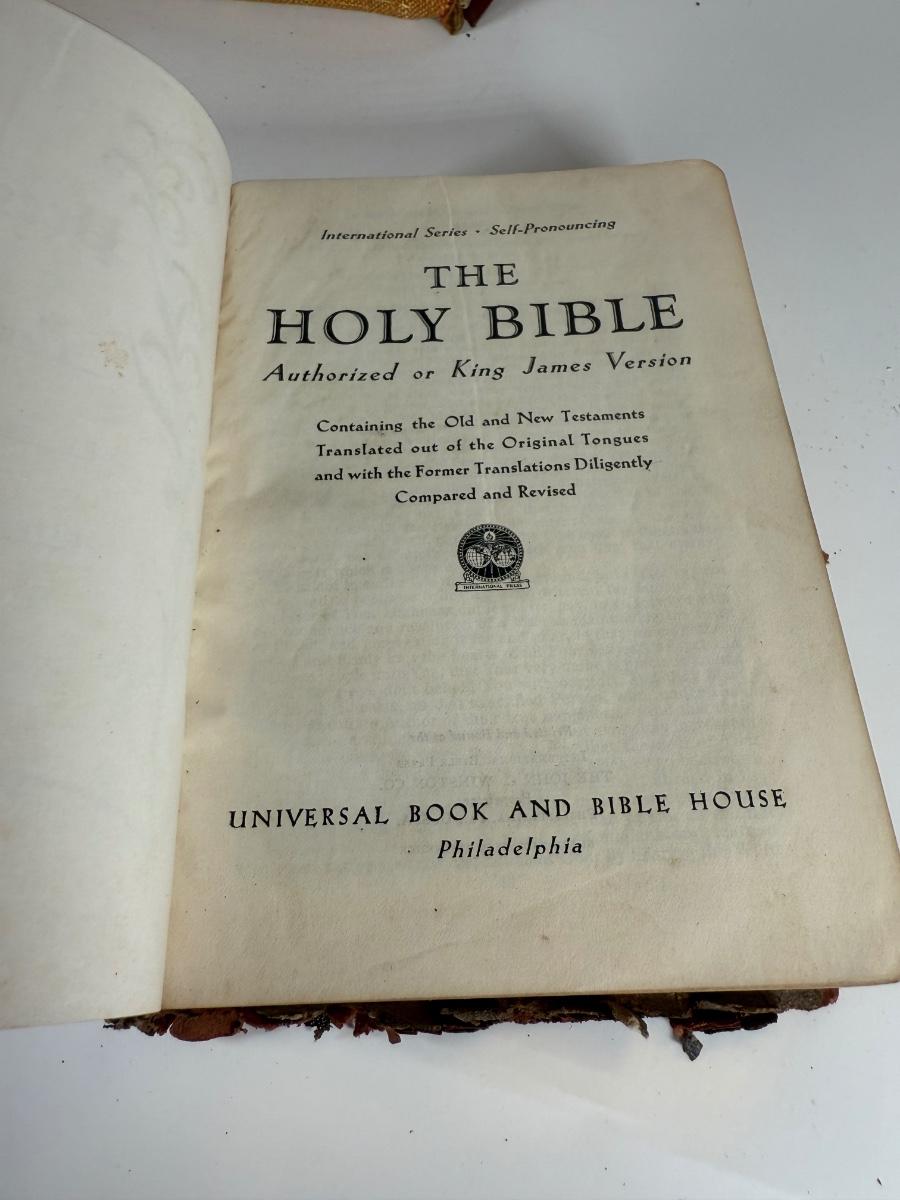 LOT 4D: Antique 1917 Bible, Religious & Angel Home Decor