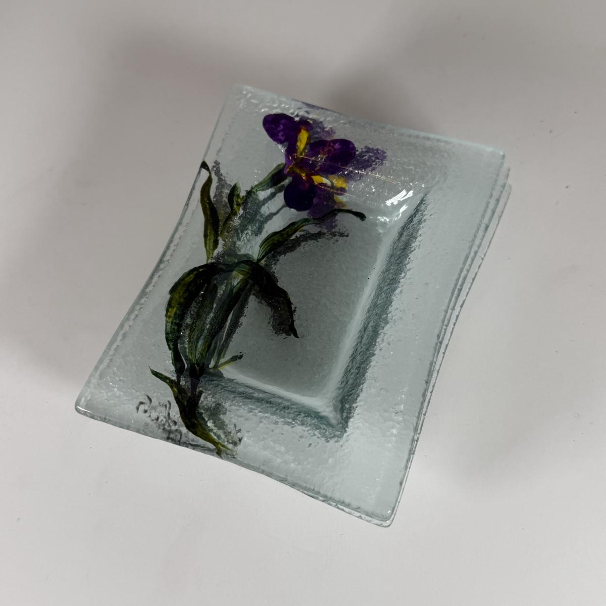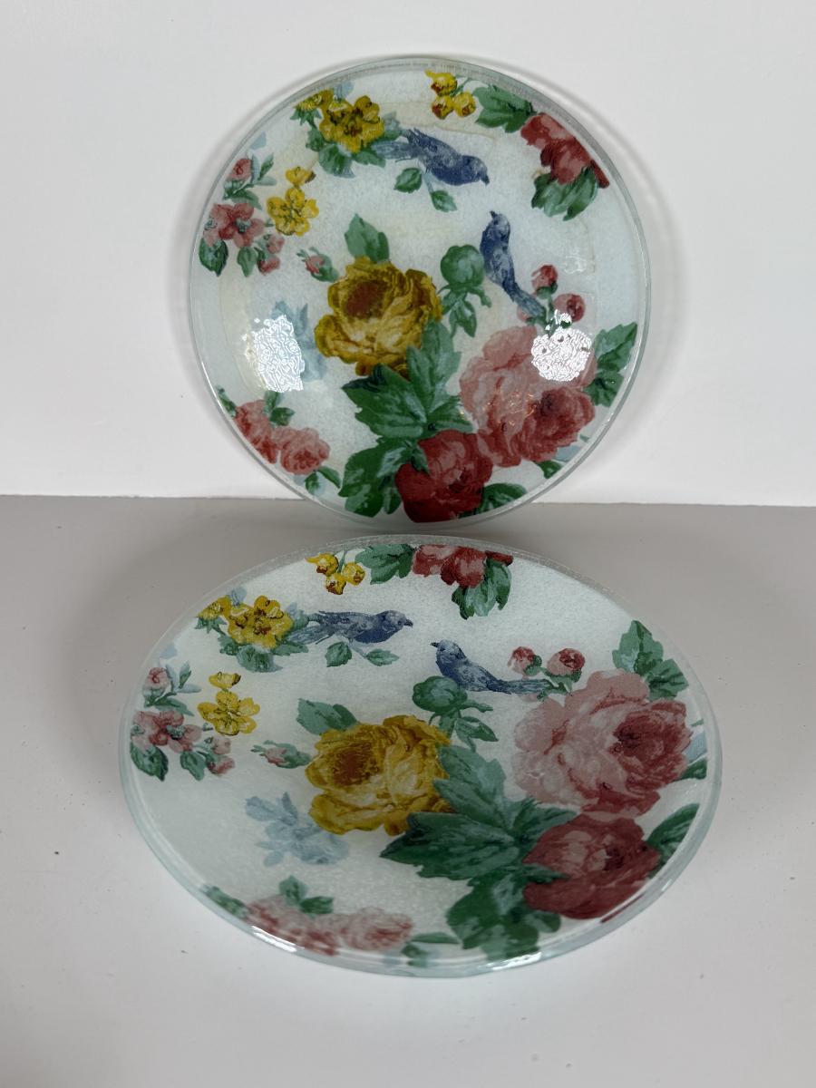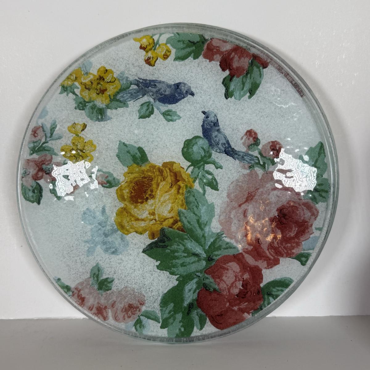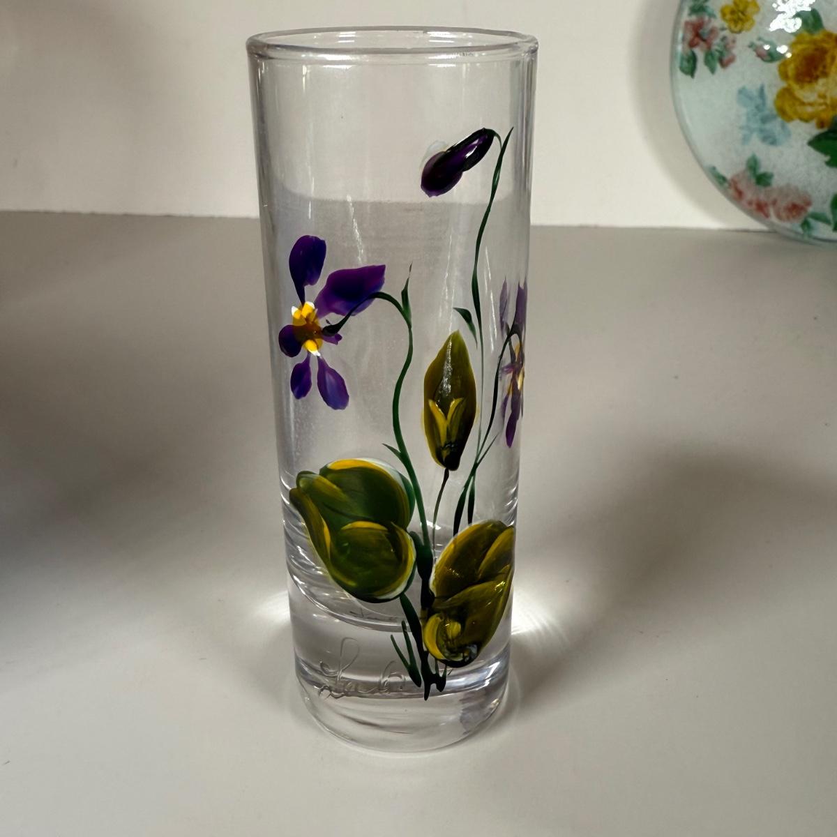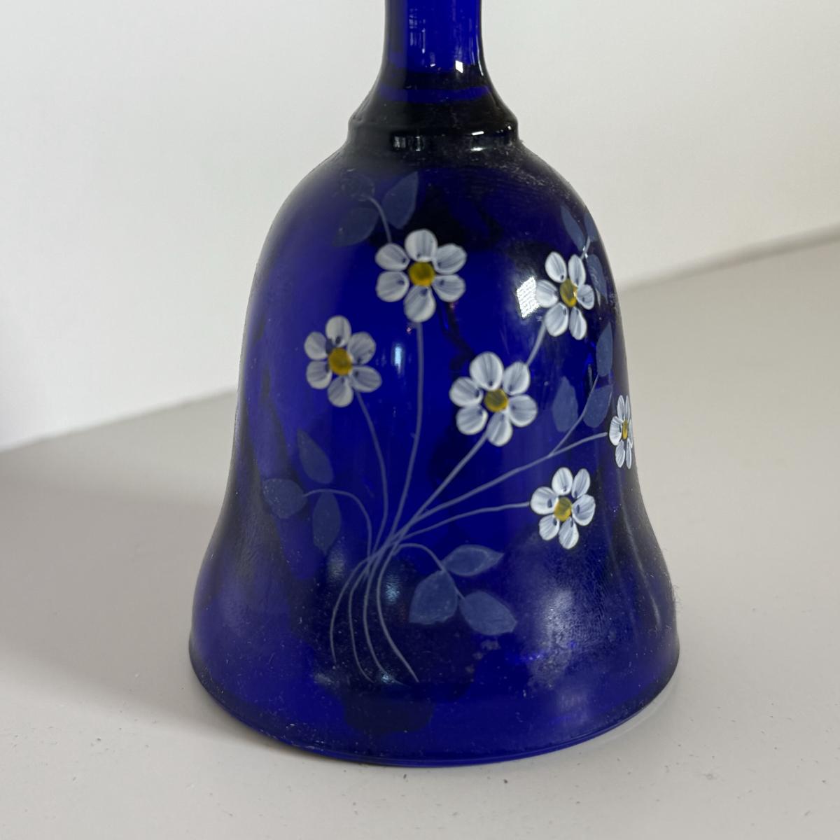 LOT 5D: Colorful Glass & More - Kosta Boda Blue Swirl Votive, Hand Painted Signed Shot Glass & Trinket Trays, Signed N Marshall Fenton Bell, Gorham Bird Plates & More