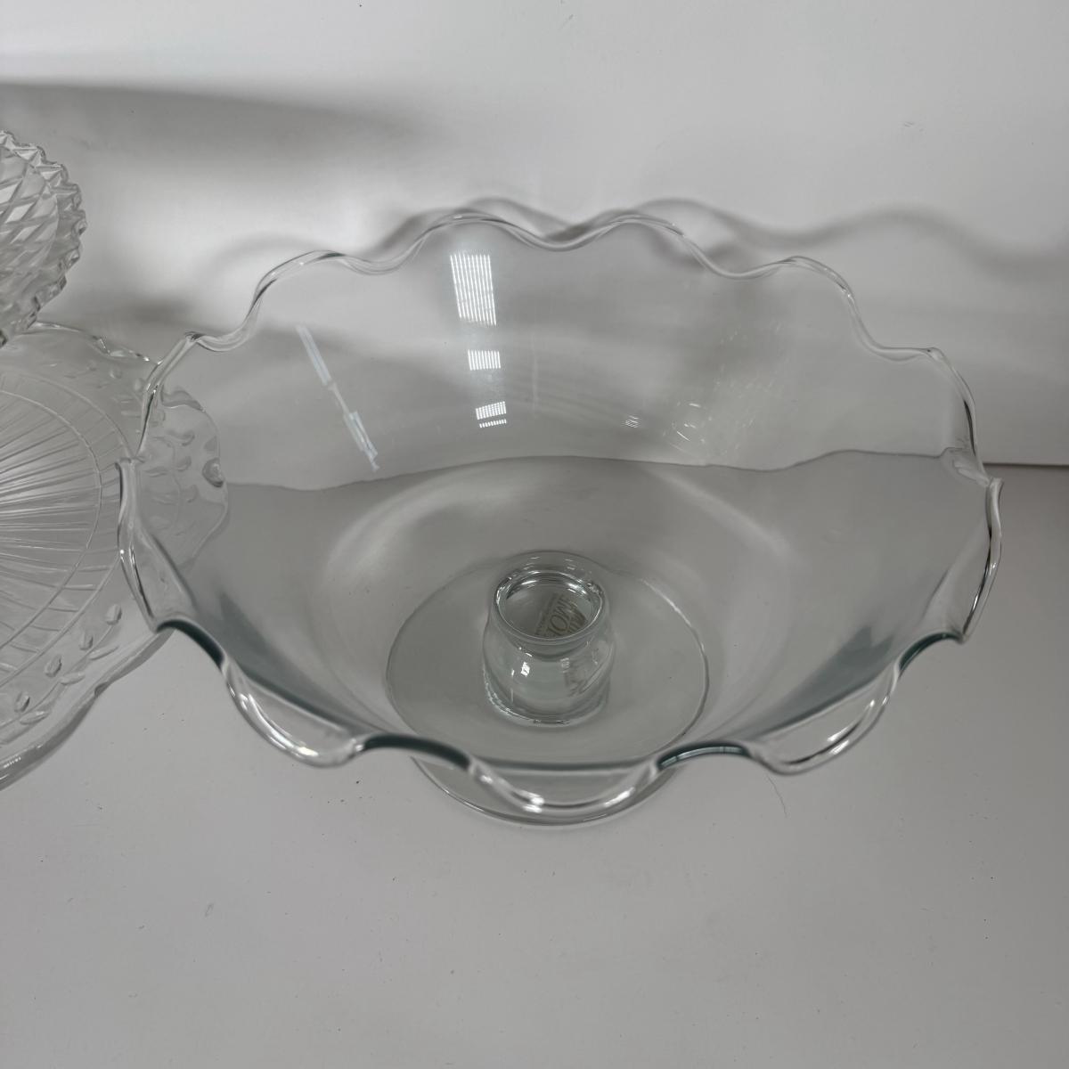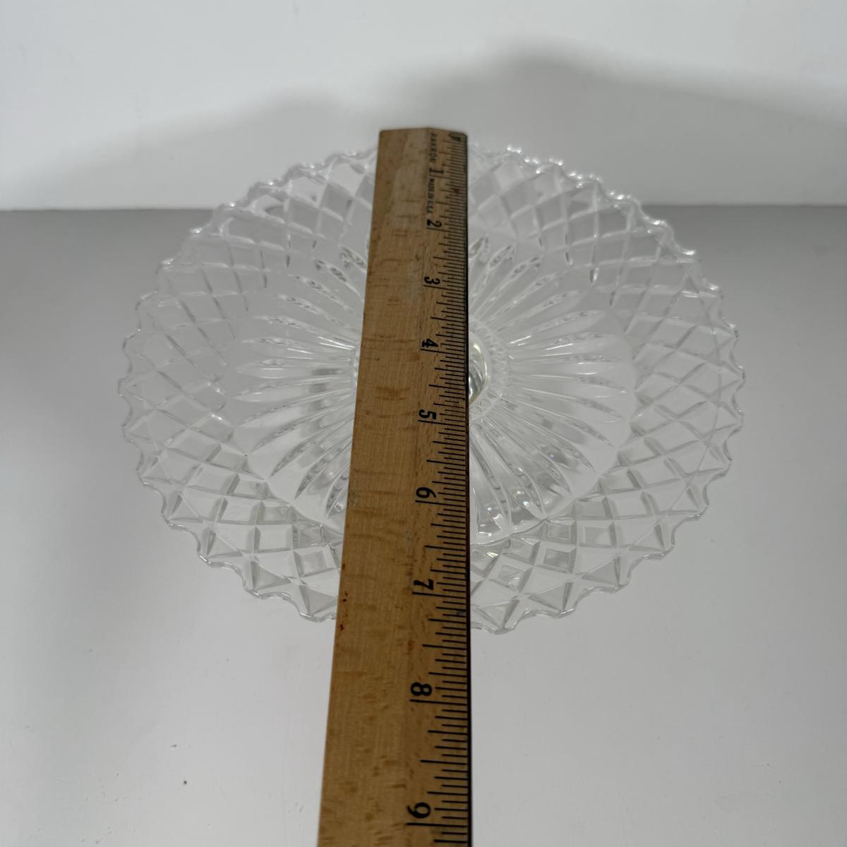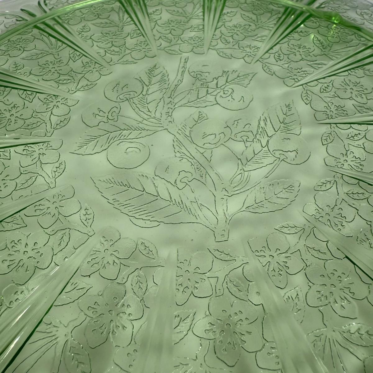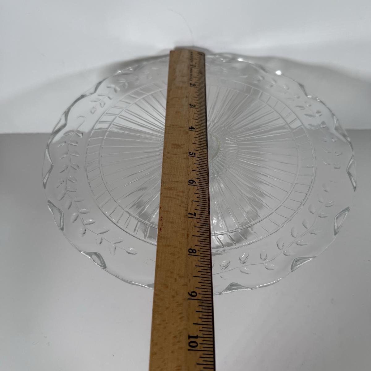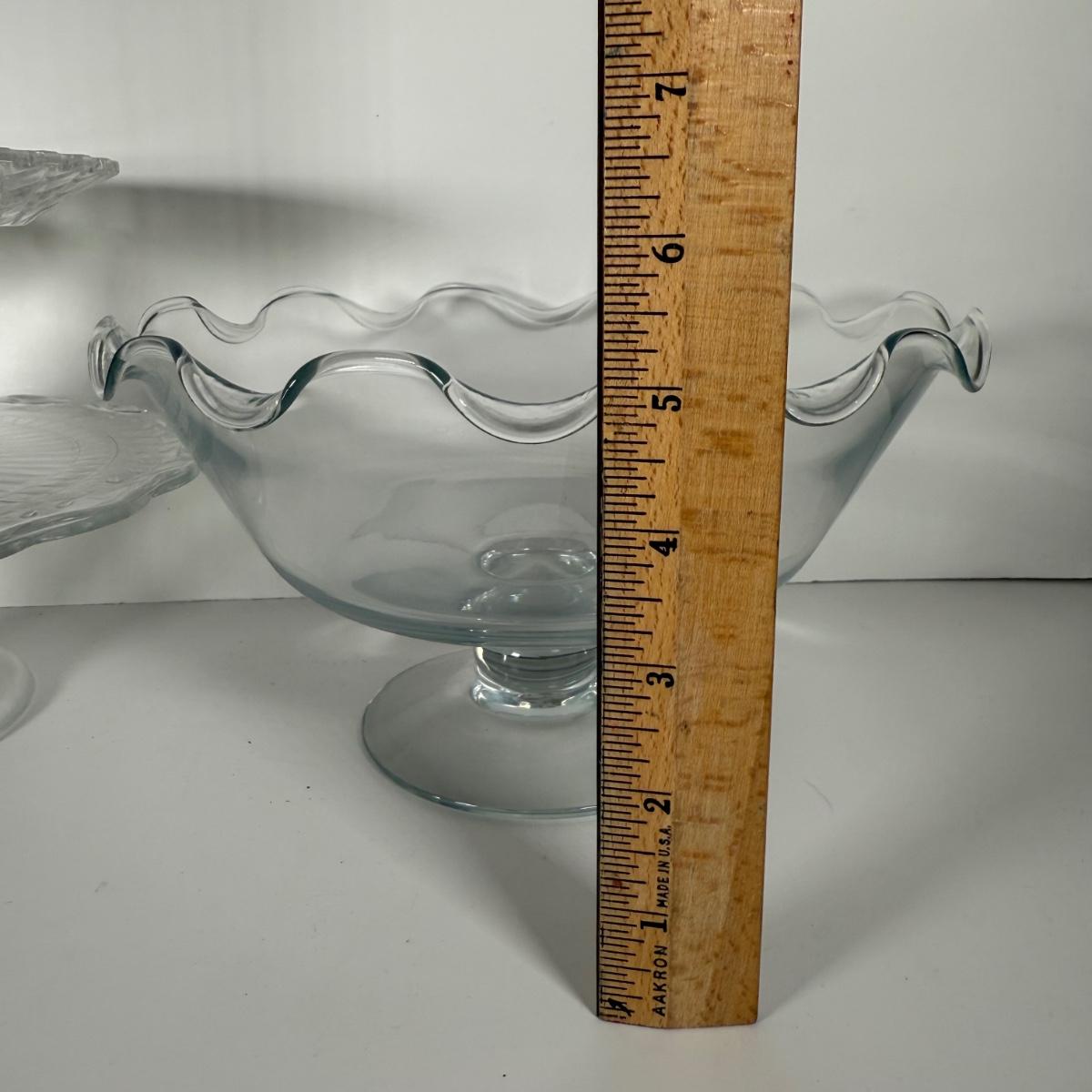 LOT 11D: Vintage Uranium Glass Footed Cake Plate, 2 Crystal Pedestal Cake Stands & More