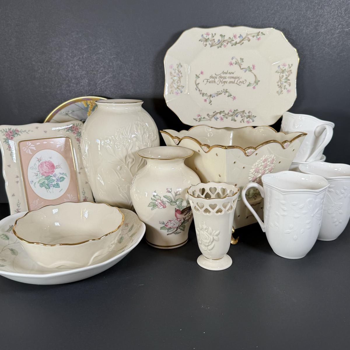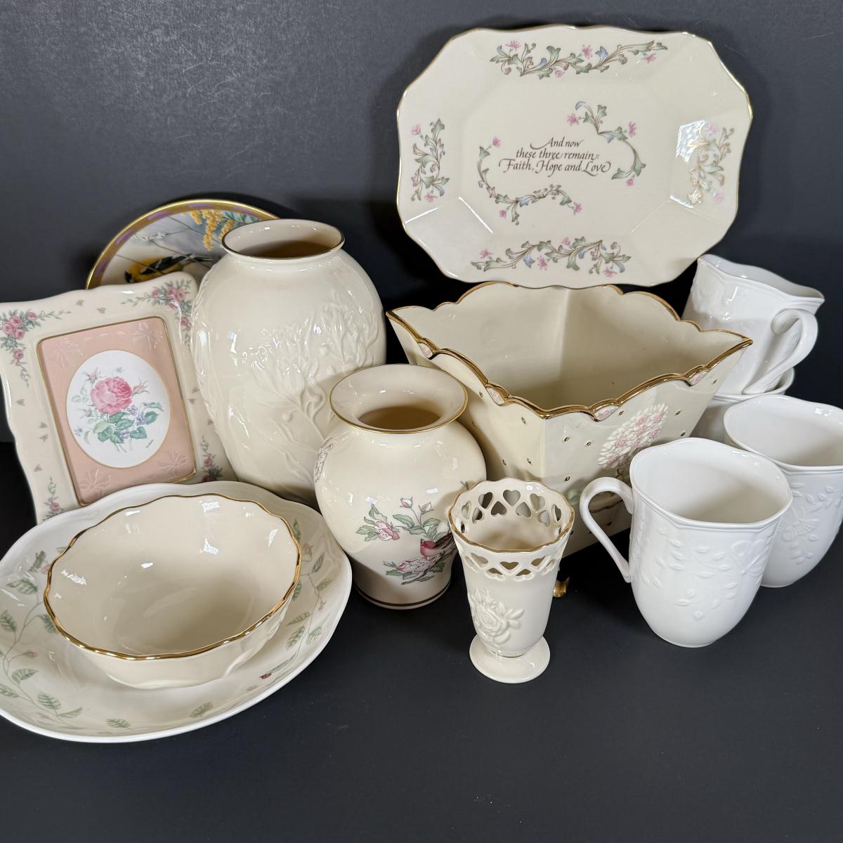 LOT 15D: Collection of Lenox China - Photo Frame, Vases, Bird Plate & More